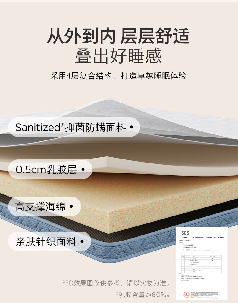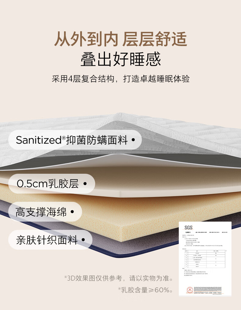 乐歌(Loctek)静音乳胶独立弹簧床垫不变形边缘加固强支撑 护脊床垫 1.5*2米