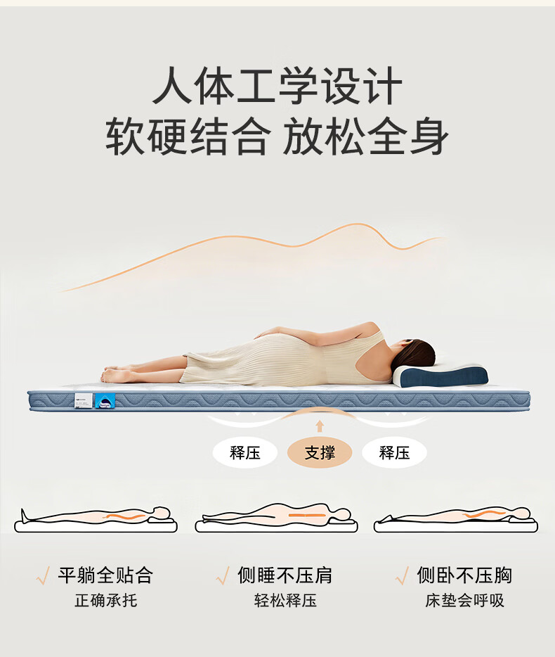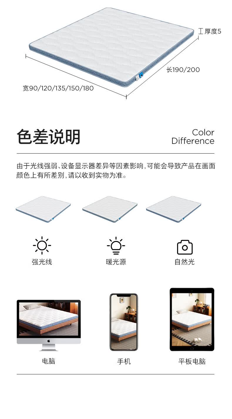 顾家家居乳胶床垫家用宿舍0胶 卧室榻榻米单人 学生宿舍薄款软床垫子5051 自在垫H5【0胶】 软硬适中0.9mX1.9m