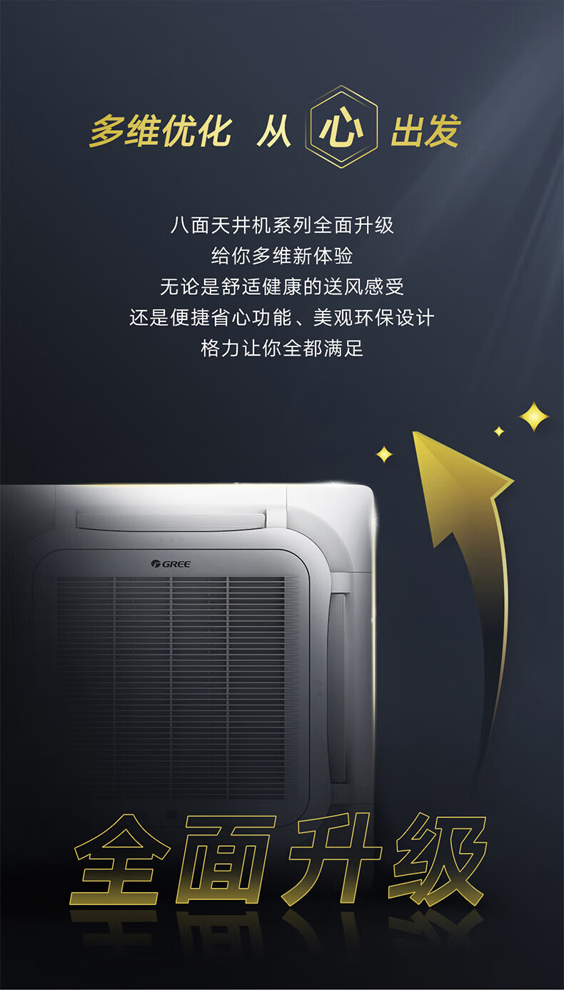 格力全铜 5匹天花机 餐厅食堂空调天井机吊顶机 三级能效 变频 单冷 380V 中央空调 政采机型 正规发票 5匹 天花机三级能效380V变频单冷