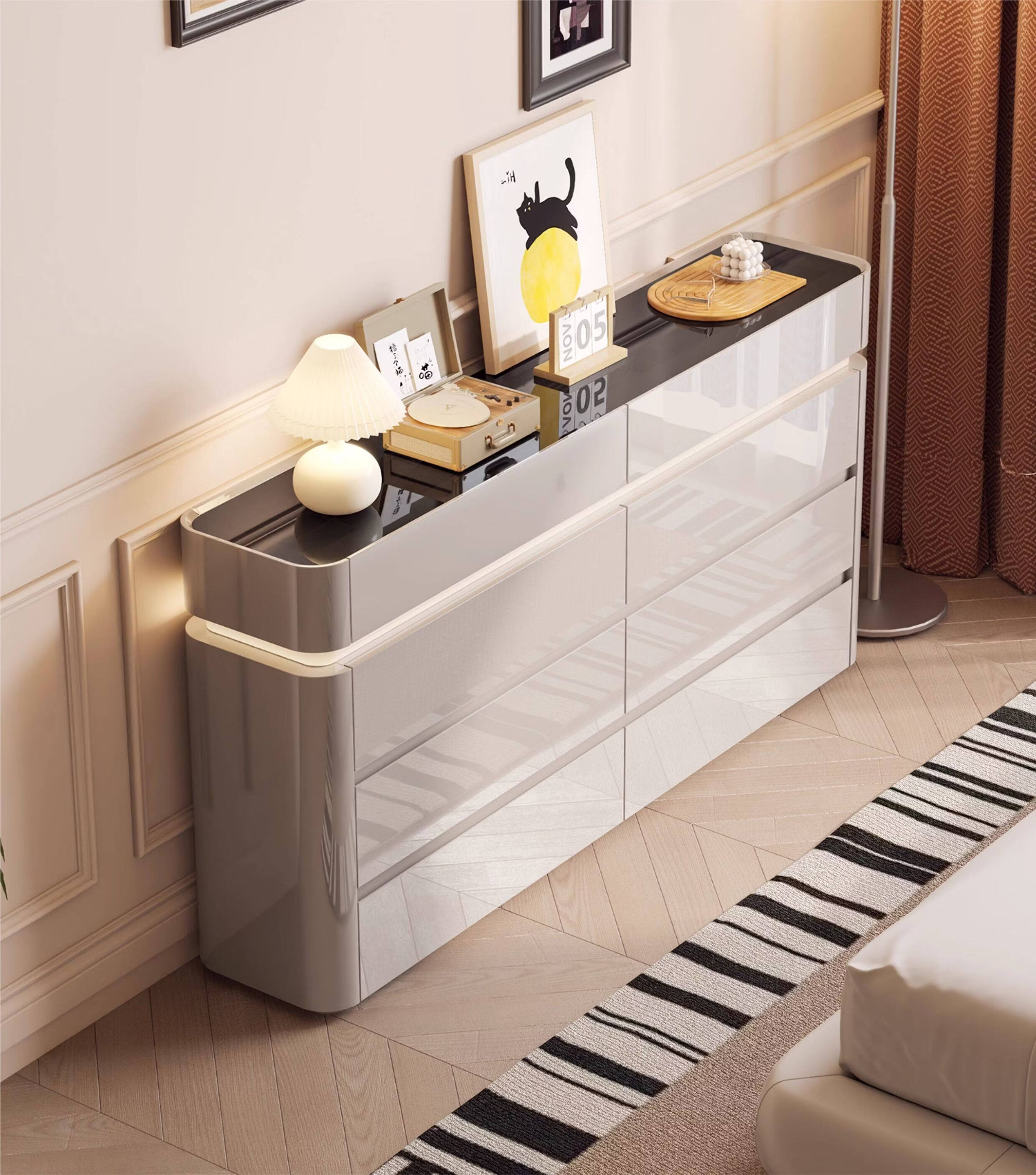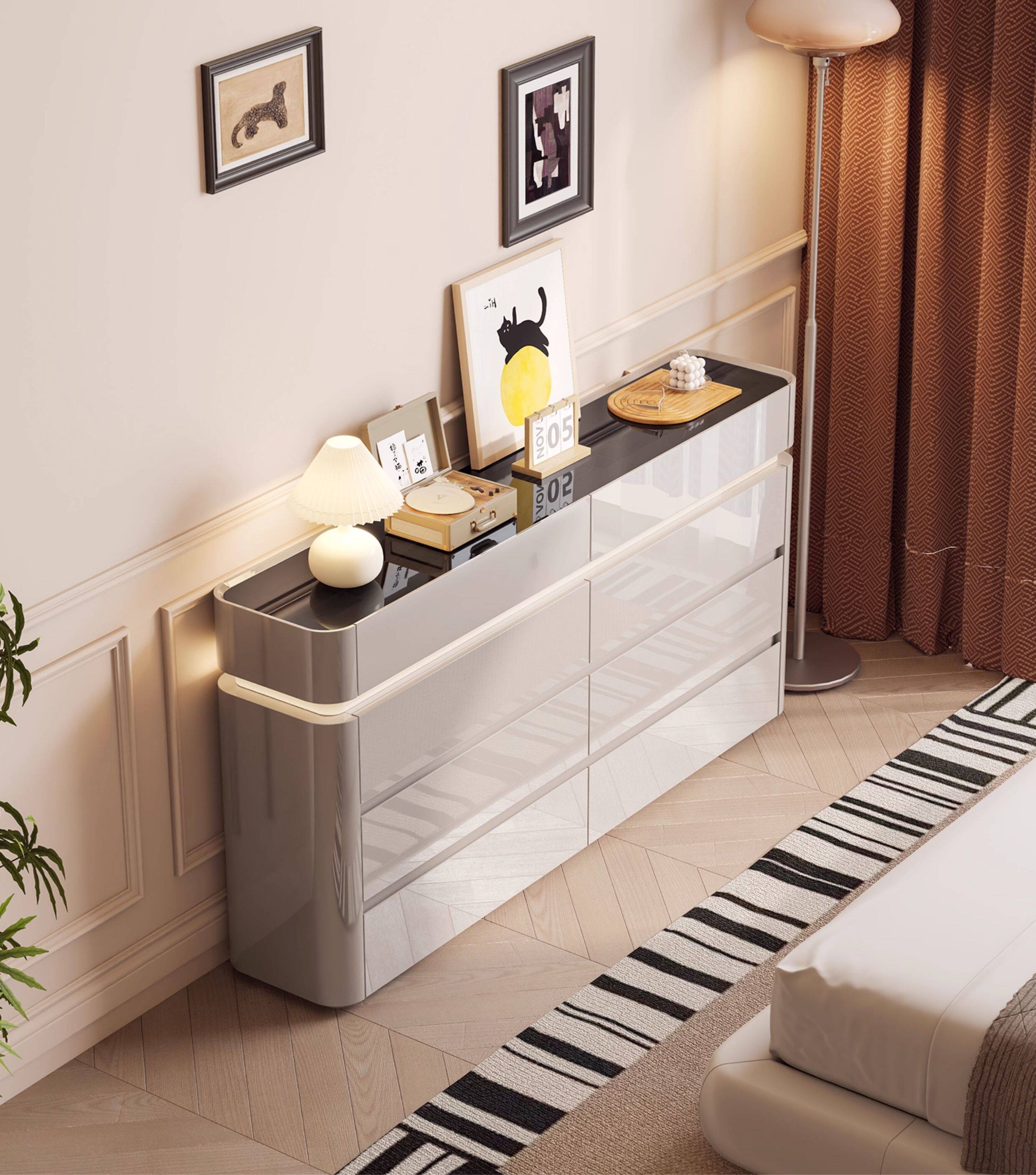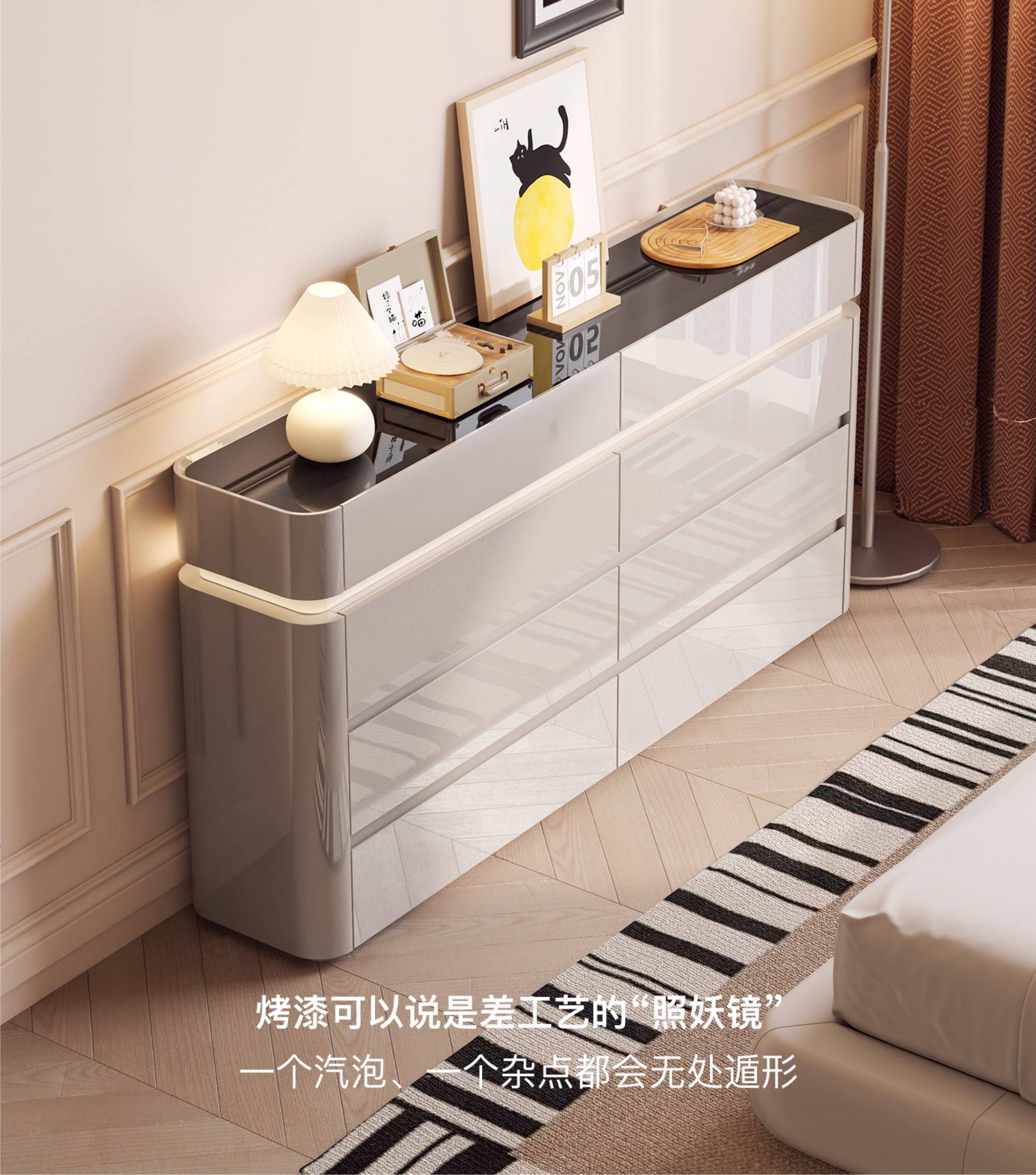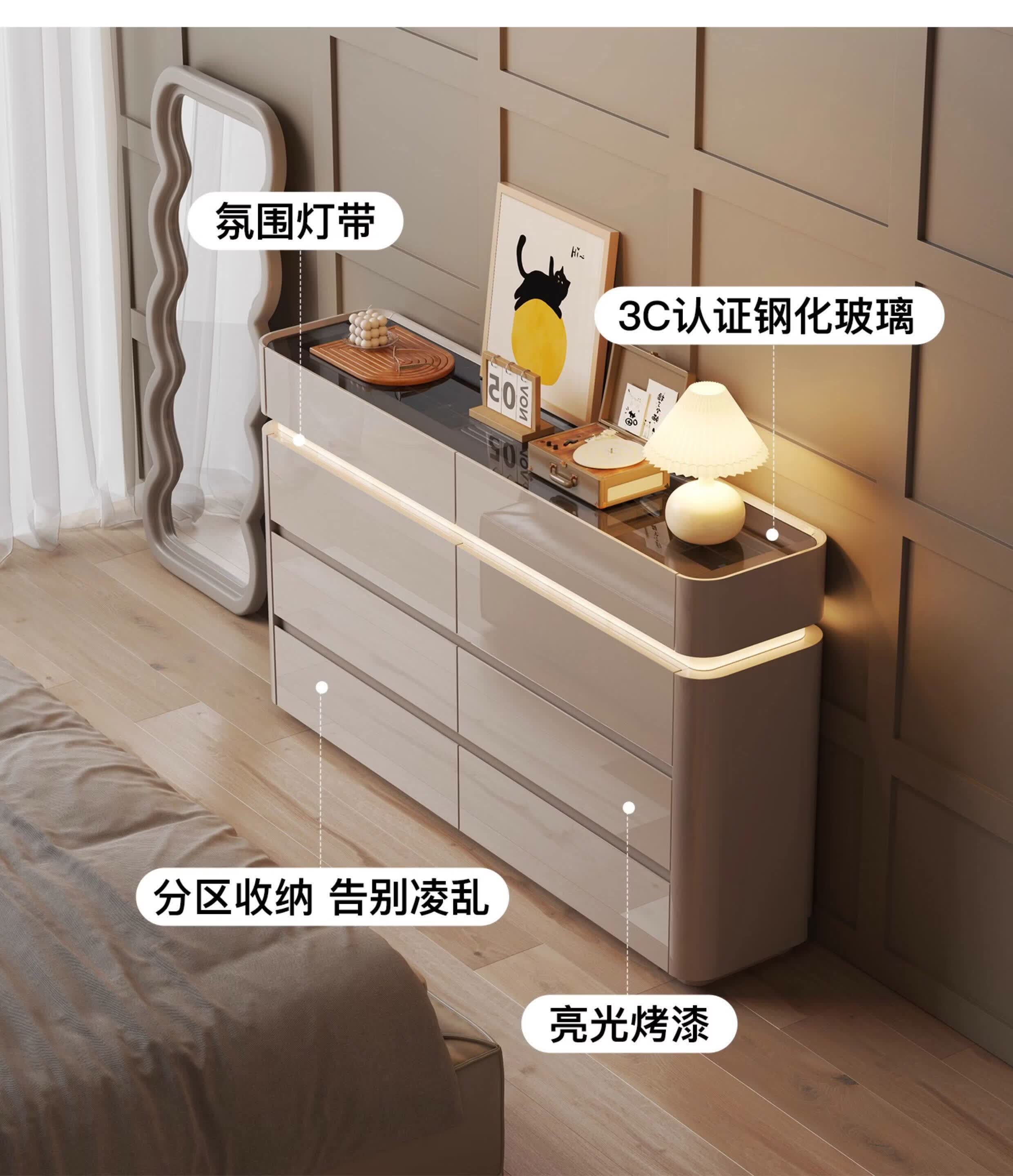 CUERO DESIGN斗柜卧室收纳柜意式轻奢床尾柜客厅边柜抽屉式储物柜靠墙储物柜 香槟灰八斗柜(140x29x81.5cm)