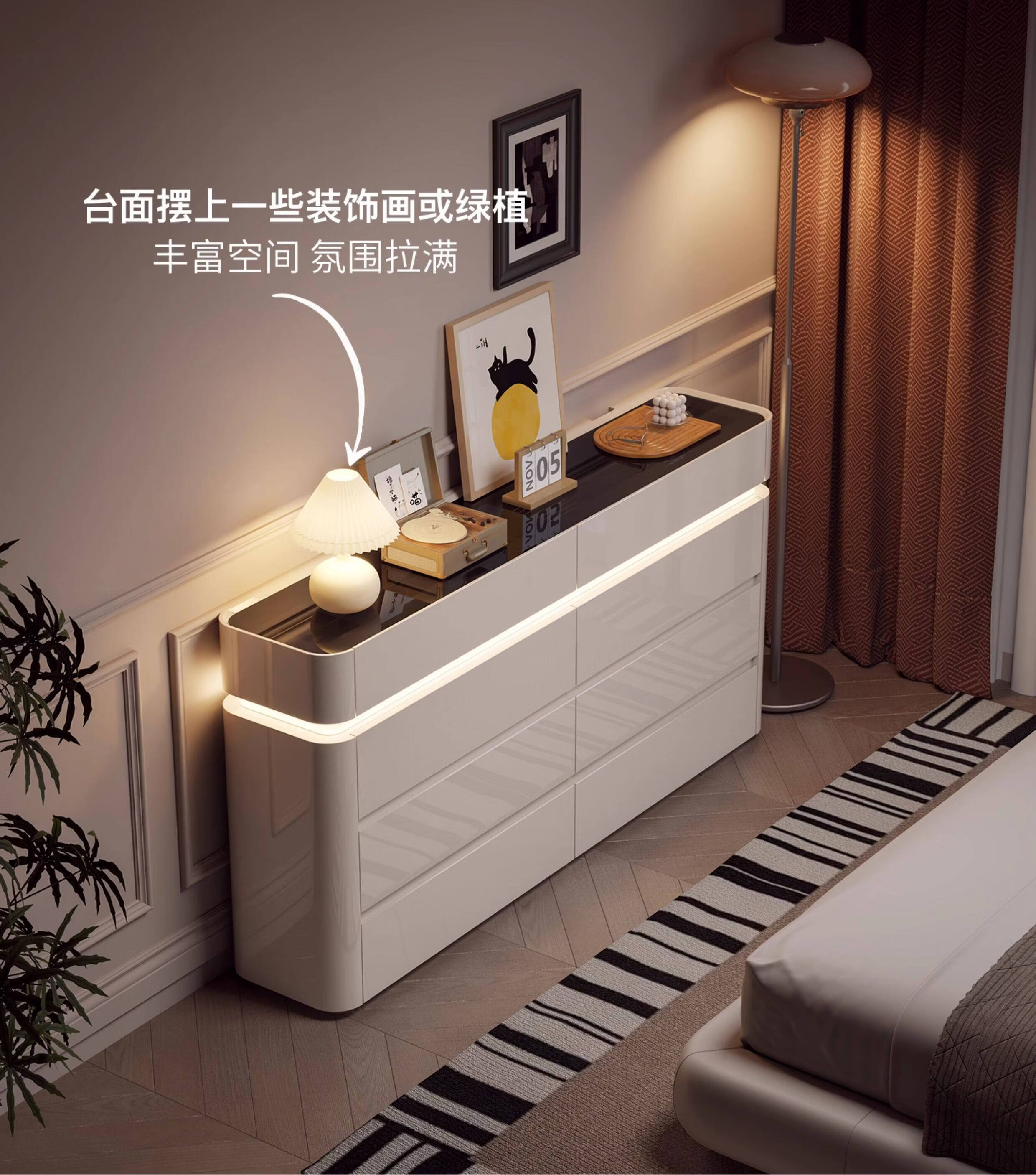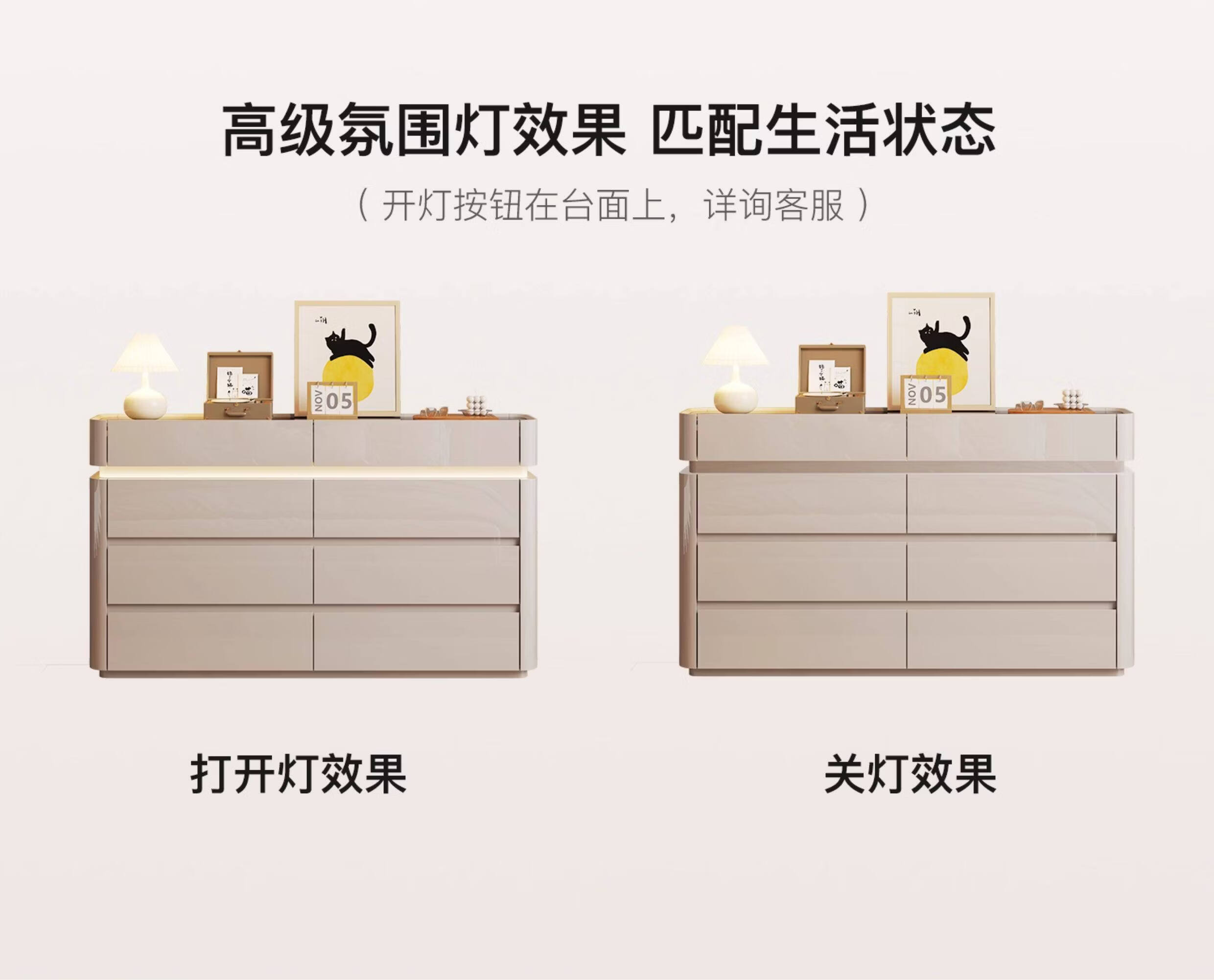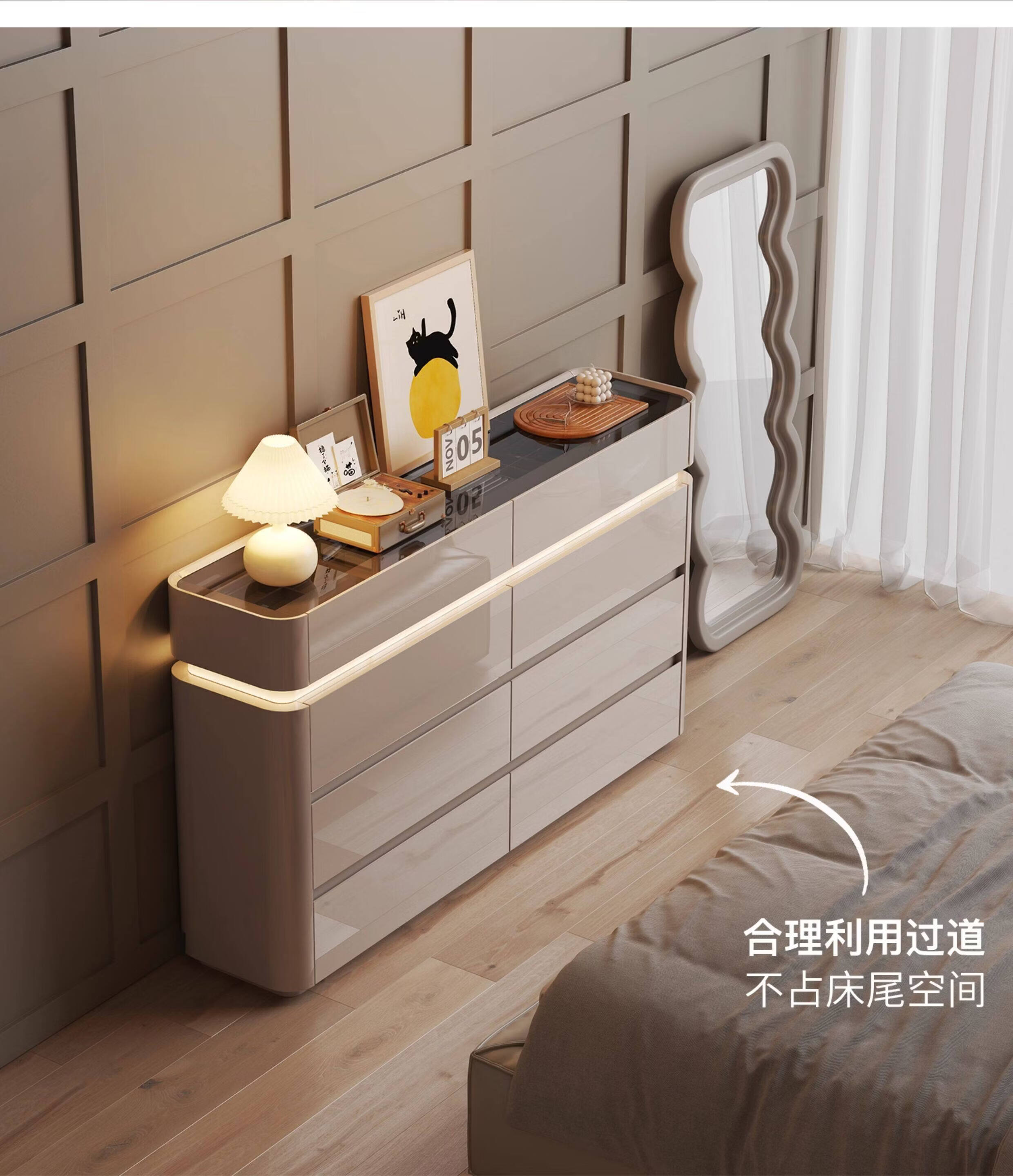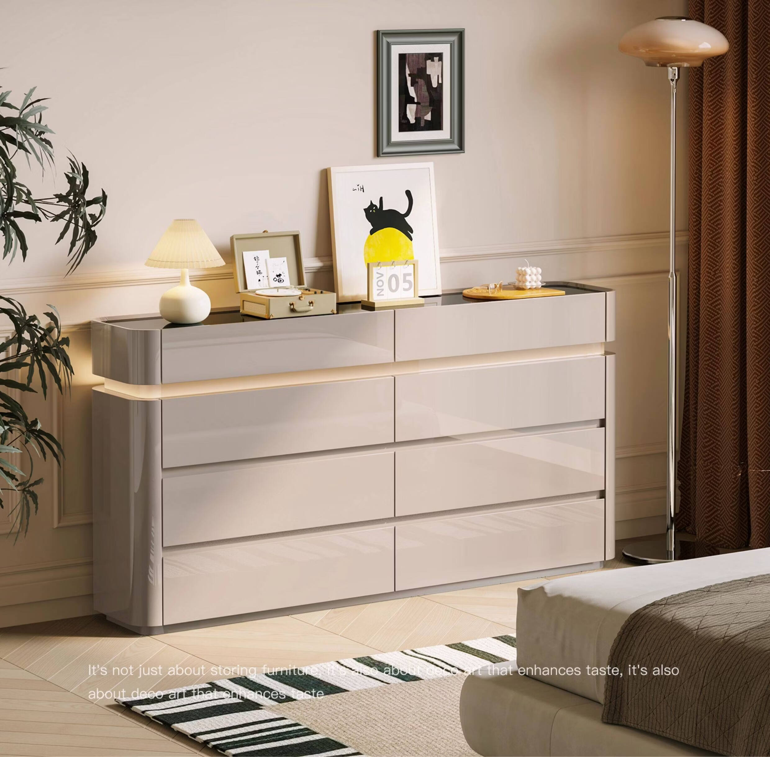CUERO DESIGN斗柜卧室收纳柜意式轻奢床尾柜客厅边柜抽屉式储物柜靠墙储物柜 香槟灰八斗柜(140x29x81.5cm)