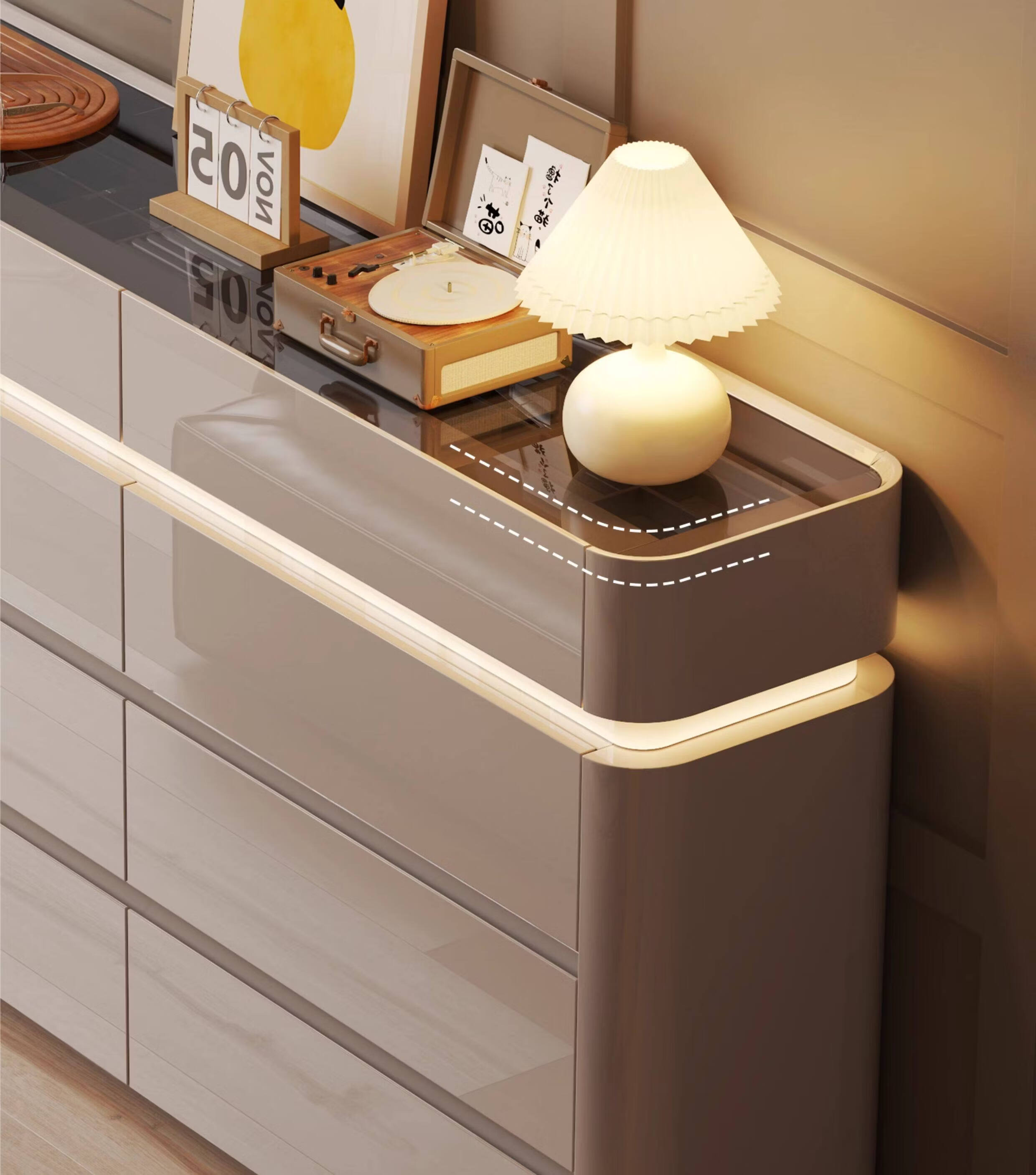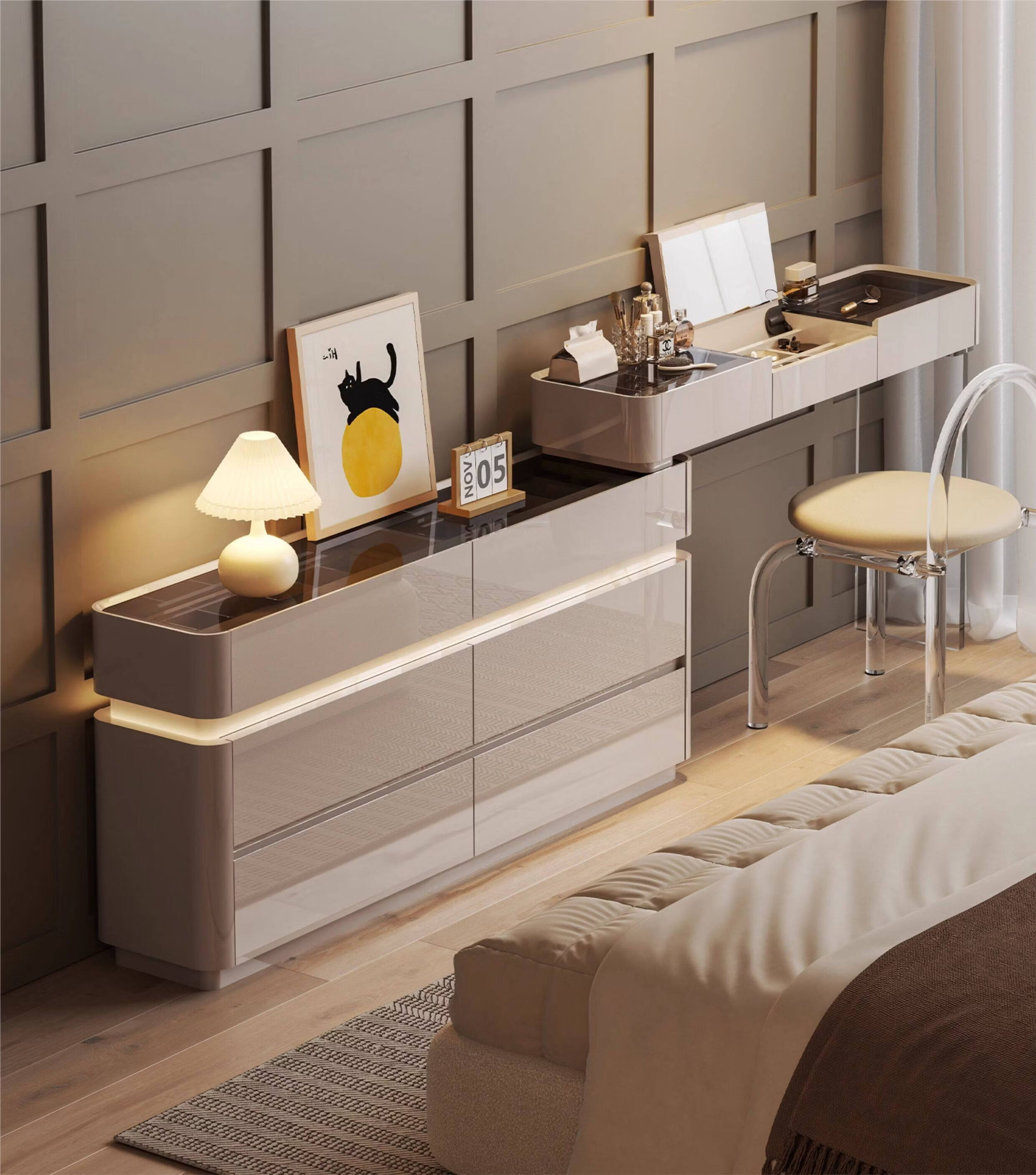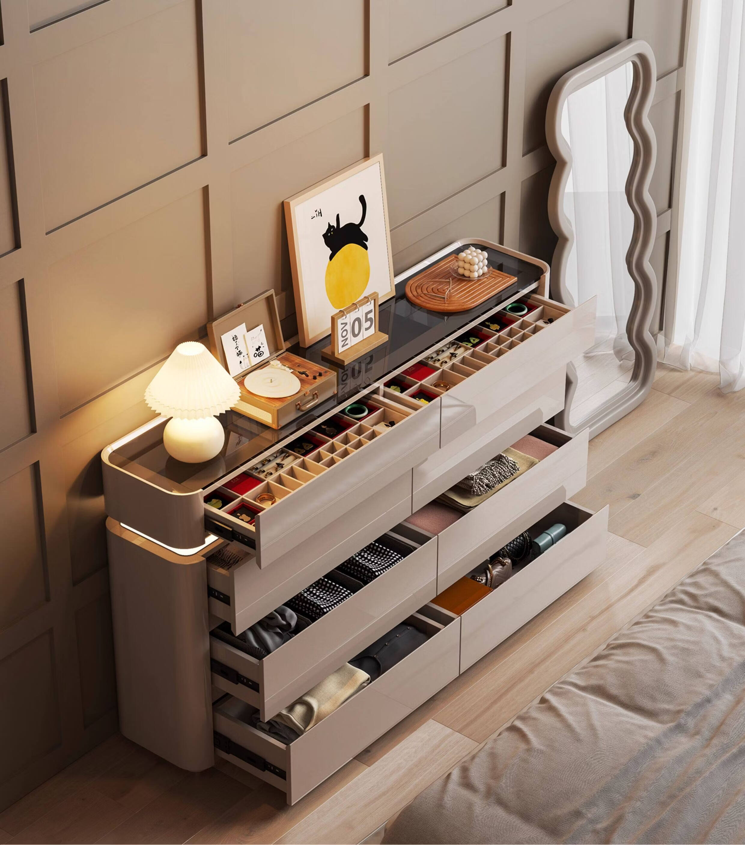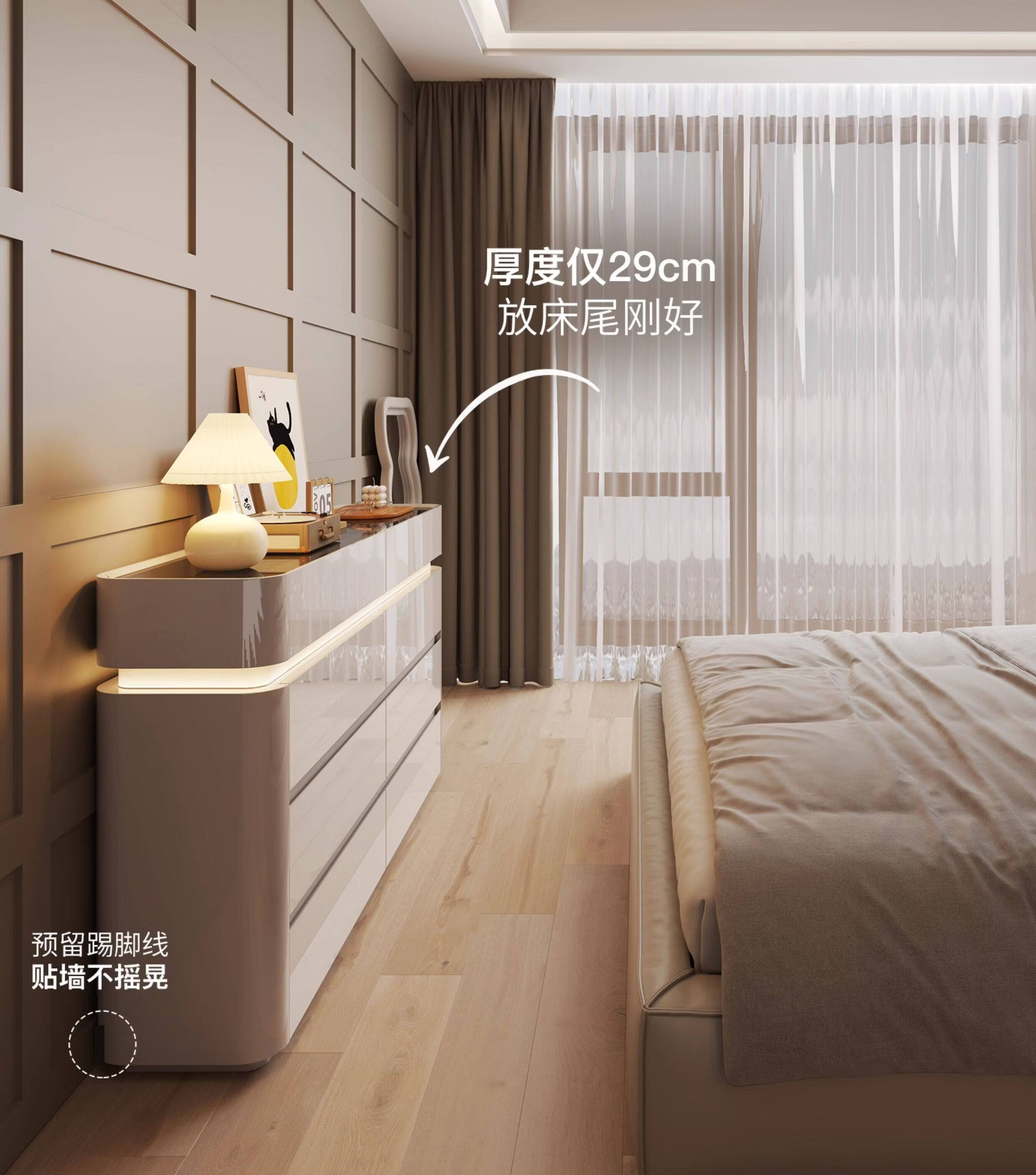 CUERO DESIGN斗柜卧室收纳柜意式轻奢床尾柜客厅边柜抽屉式储物柜靠墙储物柜 香槟灰八斗柜(140x29x81.5cm)
