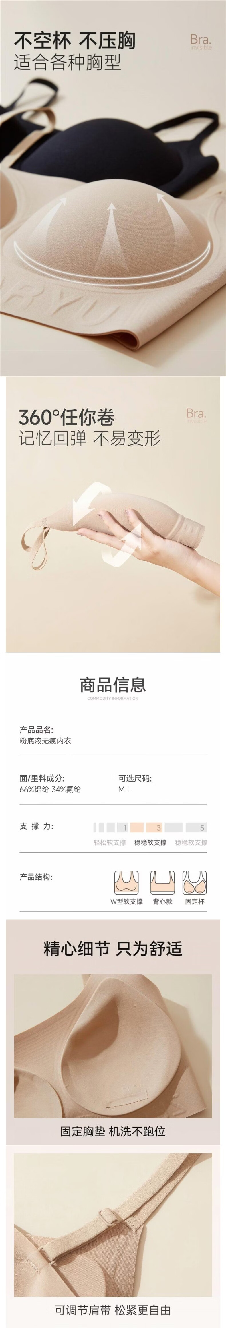 DAPHNE达芙妮【MY】粉底液内衣女聚拢型文胸收副乳防下垂乳胶胸垫亲肤柔软 黑色【固定杯】 L(建议100-120斤)