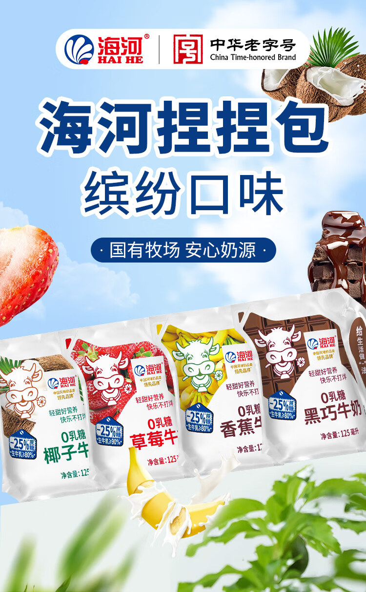 海河牛奶天津网红风味奶爱克林装 捏捏包草莓3巧克力3椰子3香蕉3