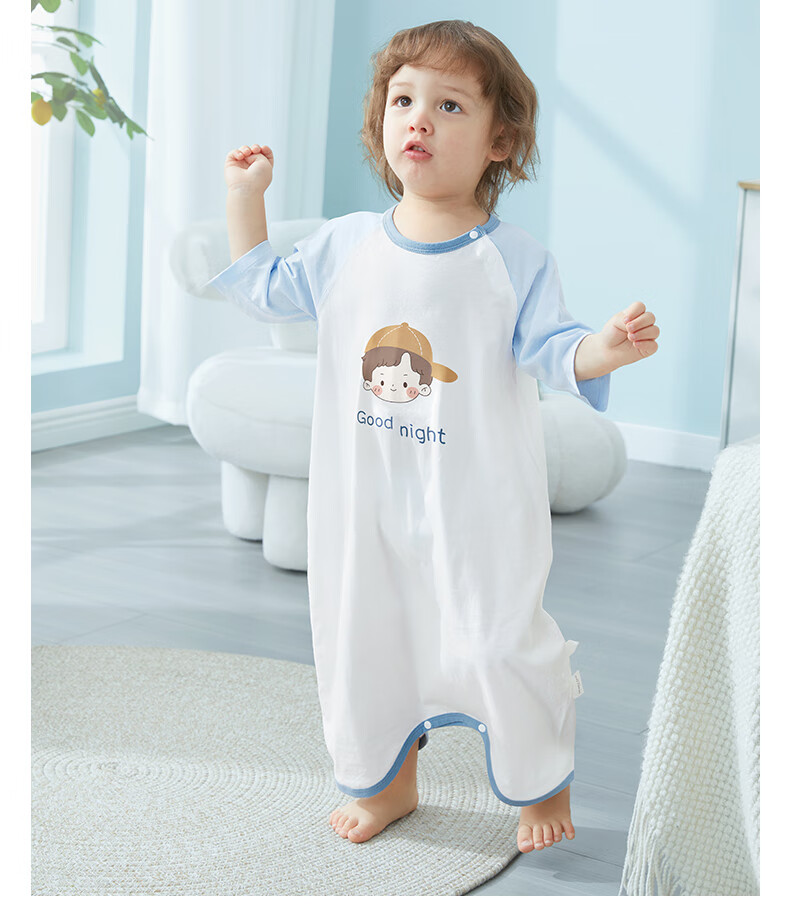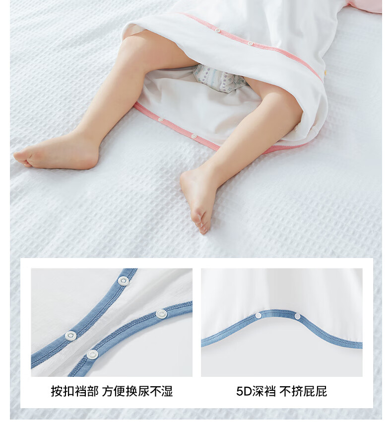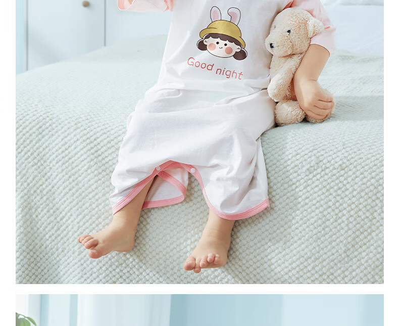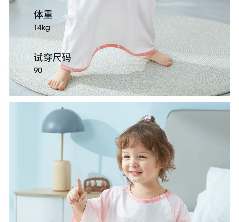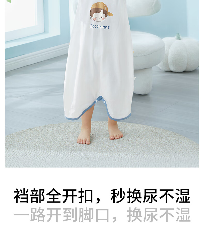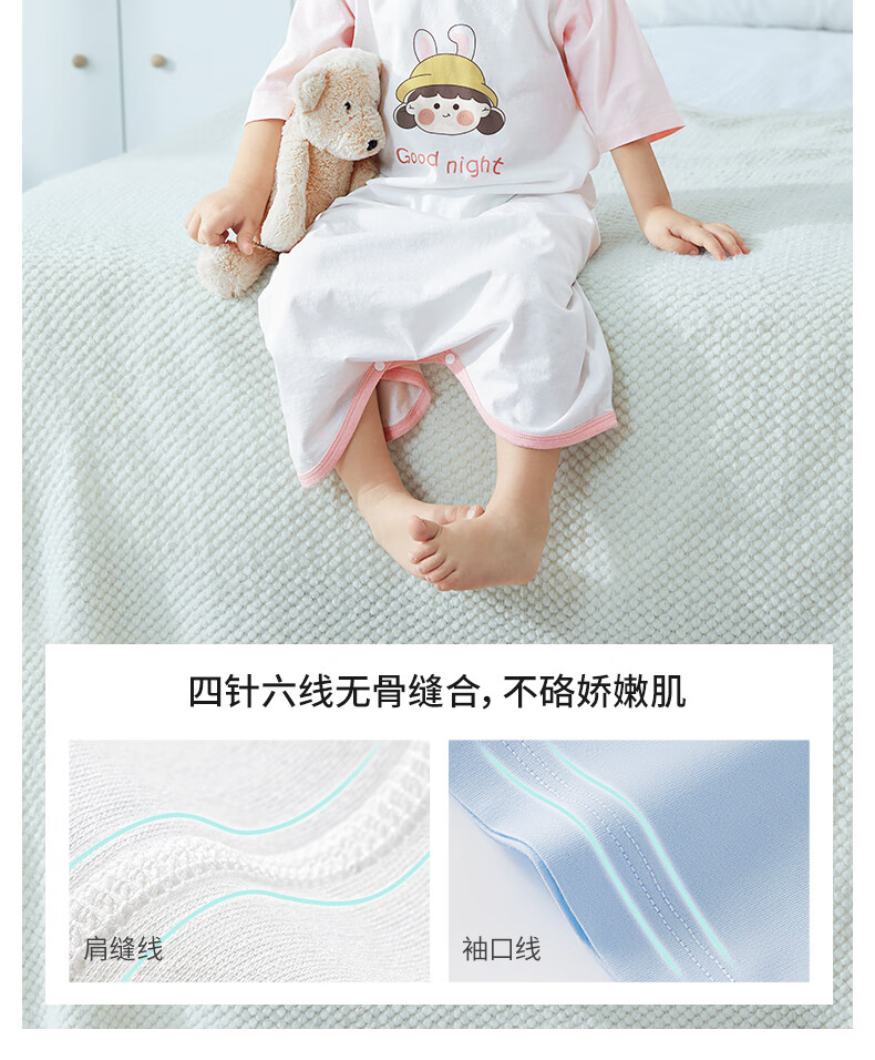 贝肽斯婴儿睡袋夏季薄款儿童睡裙纯棉家居空调防踢被一体睡衣贝拉 90码