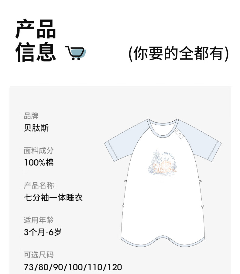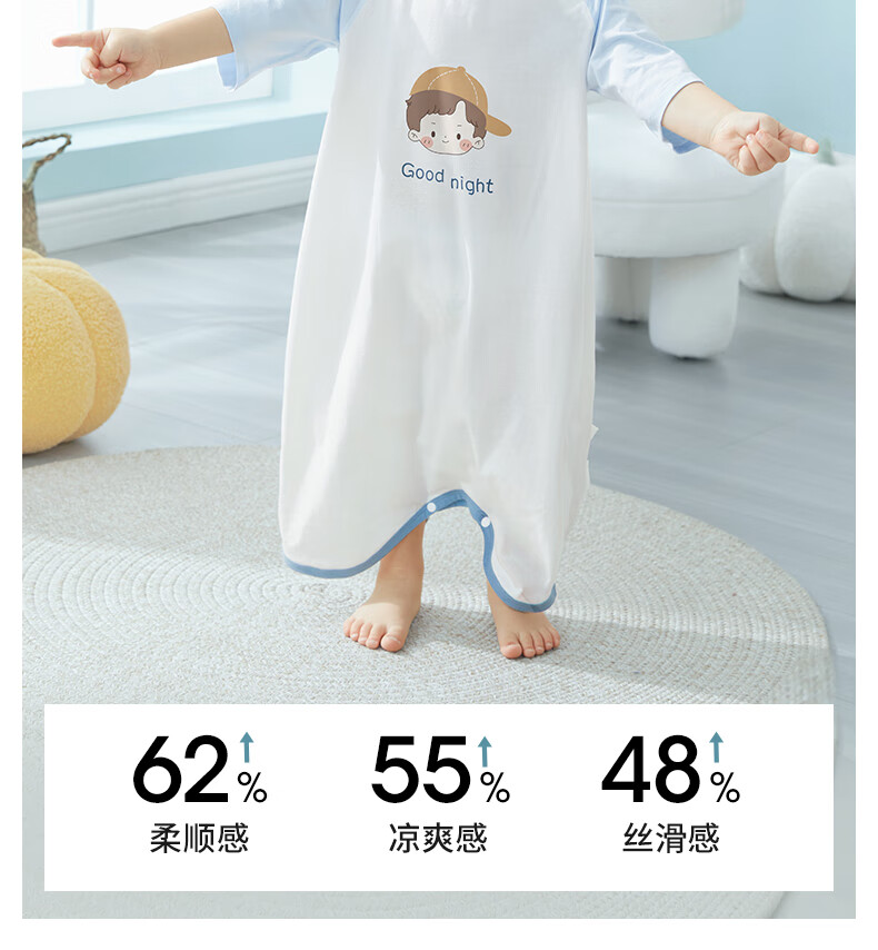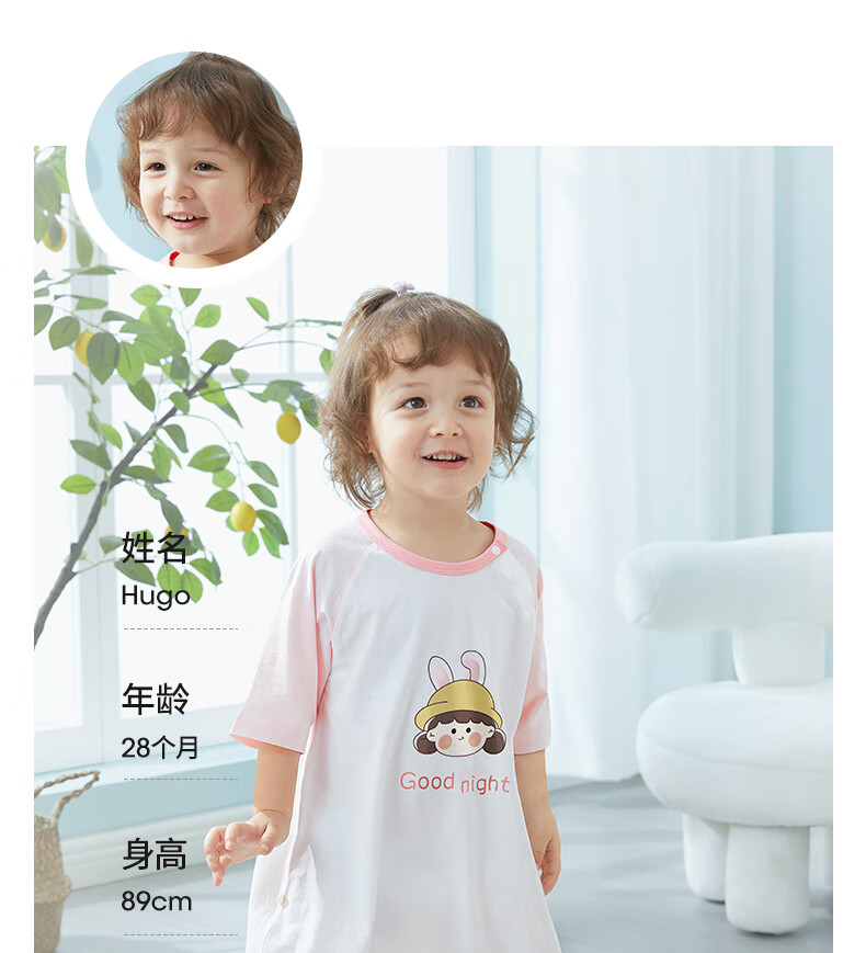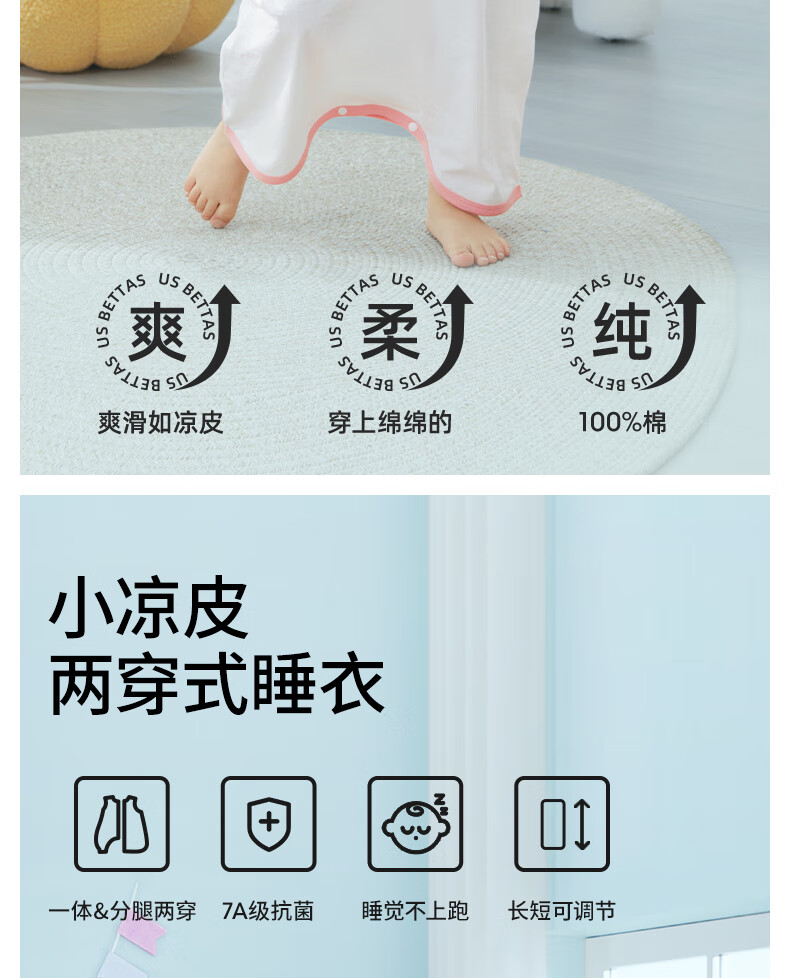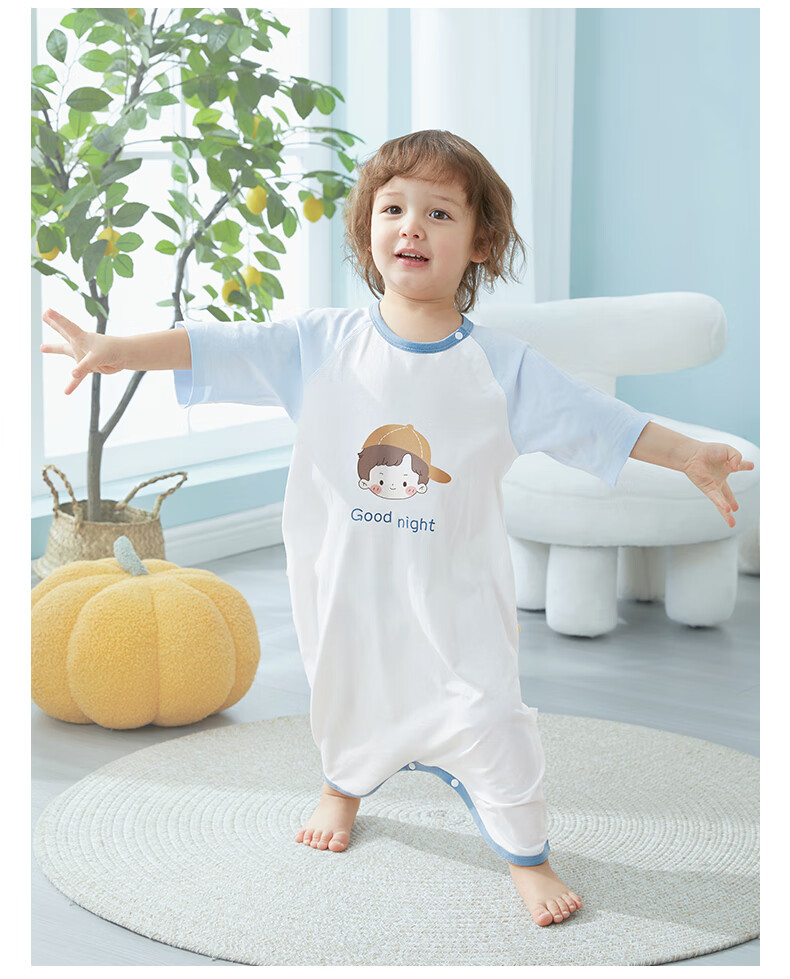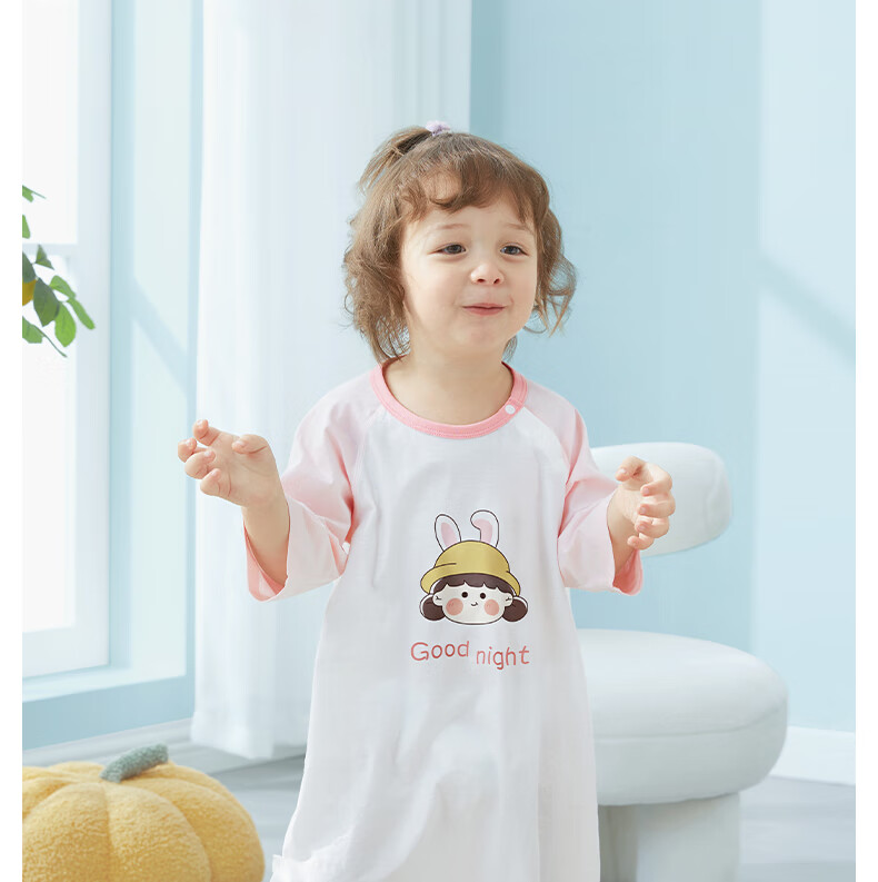 贝肽斯婴儿睡袋夏季薄款儿童睡裙纯棉家居空调防踢被一体睡衣贝拉 90码