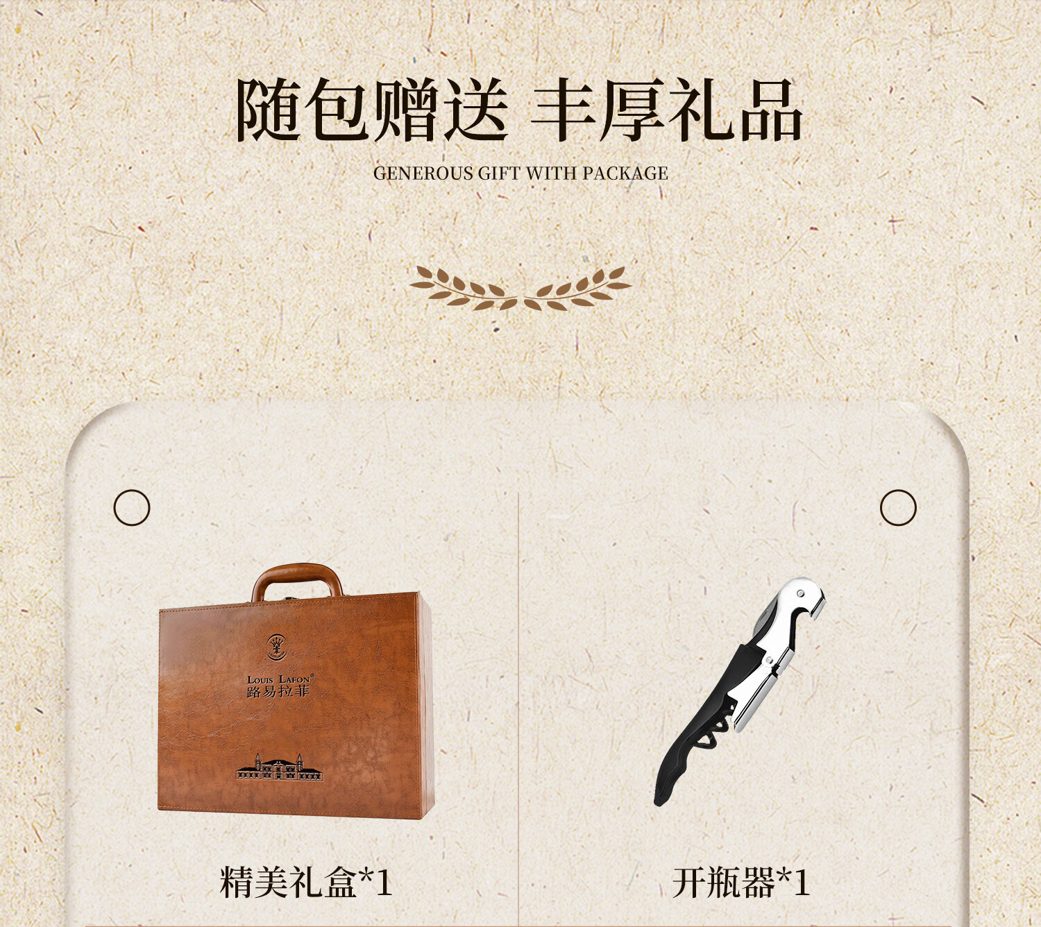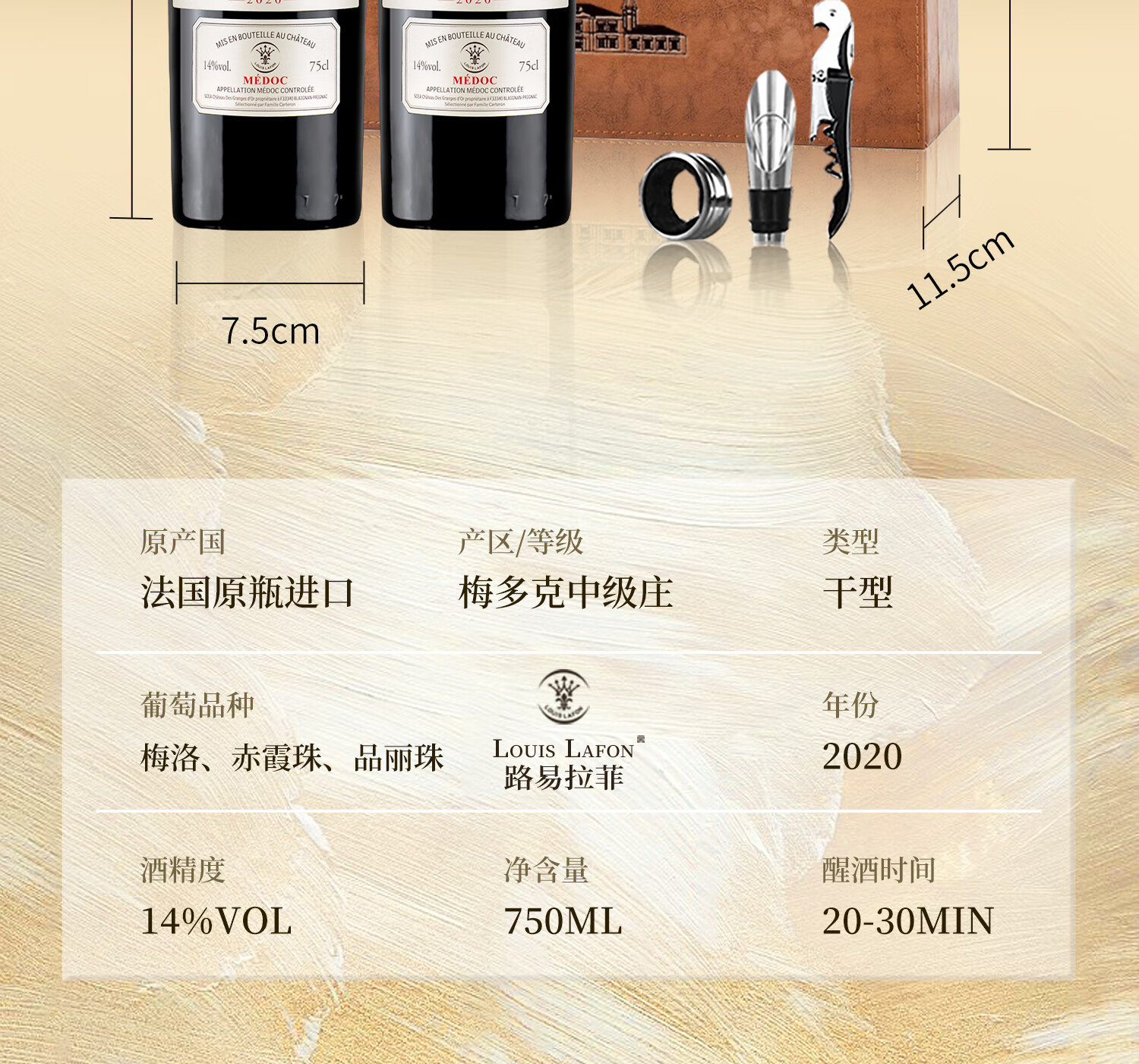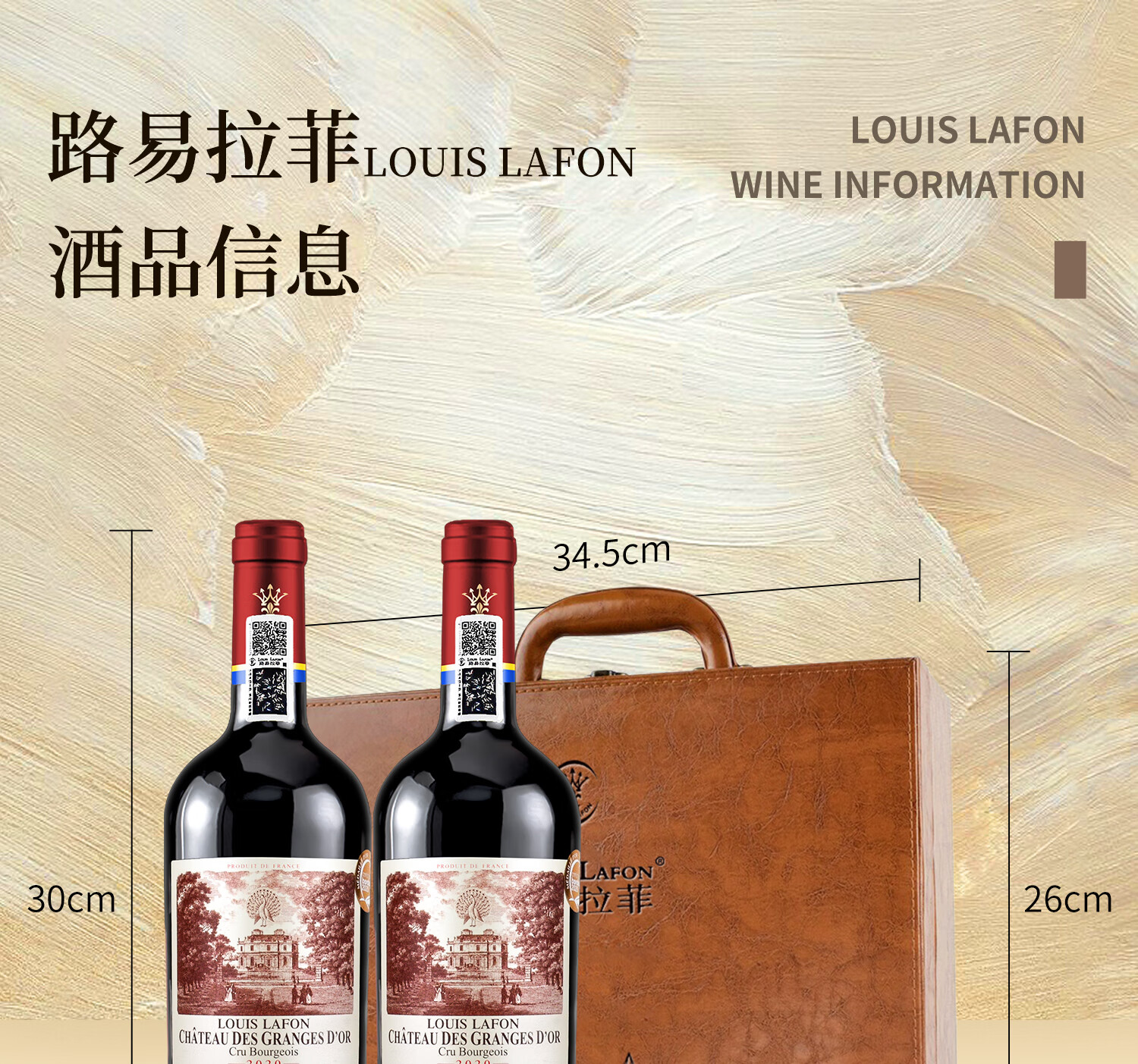 路易拉菲(LOUIS LAFON)法国原瓶进口红酒14度中级庄干红葡萄酒 750ml*2礼盒送礼