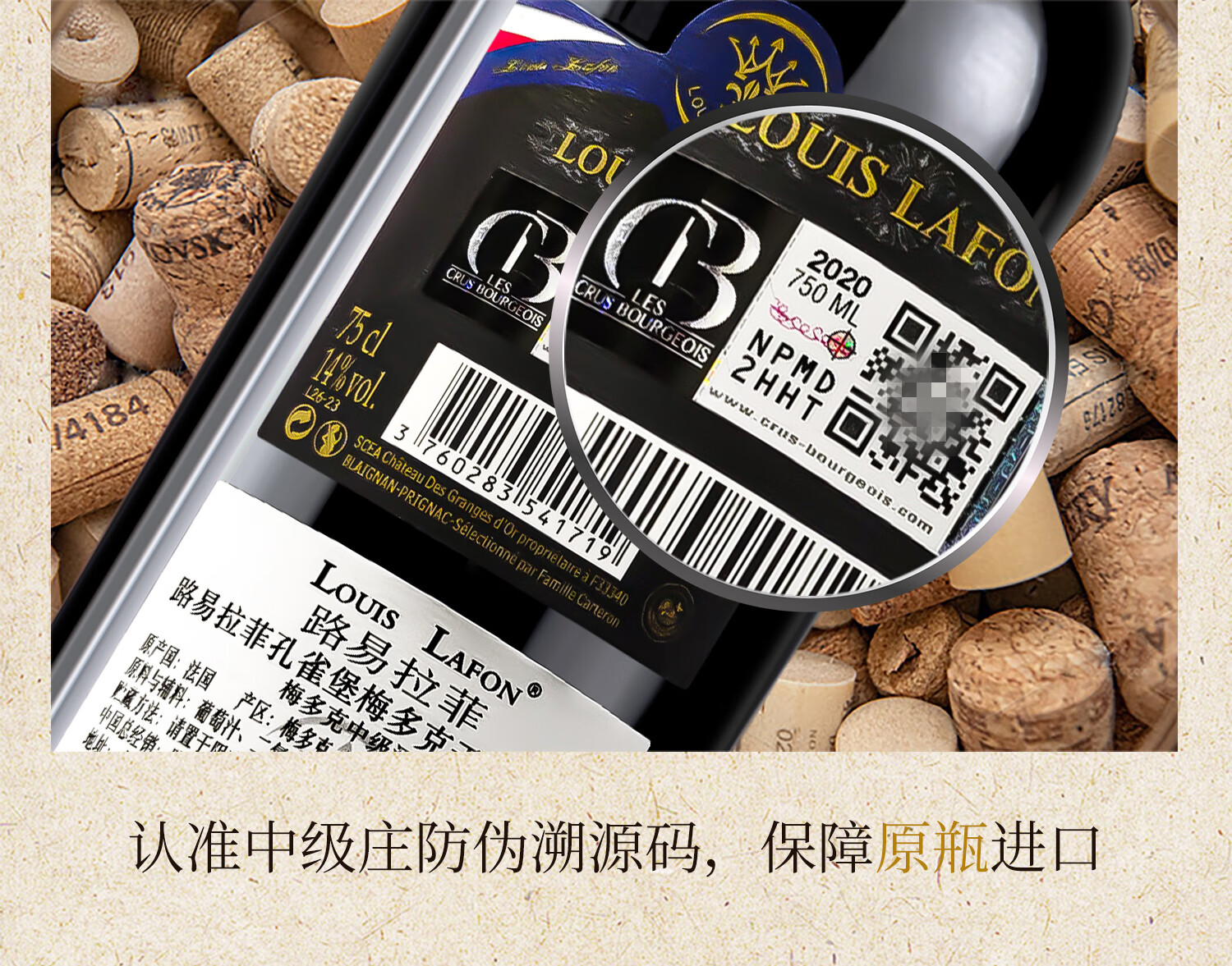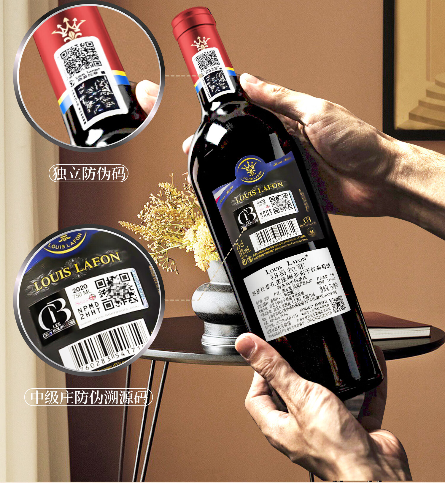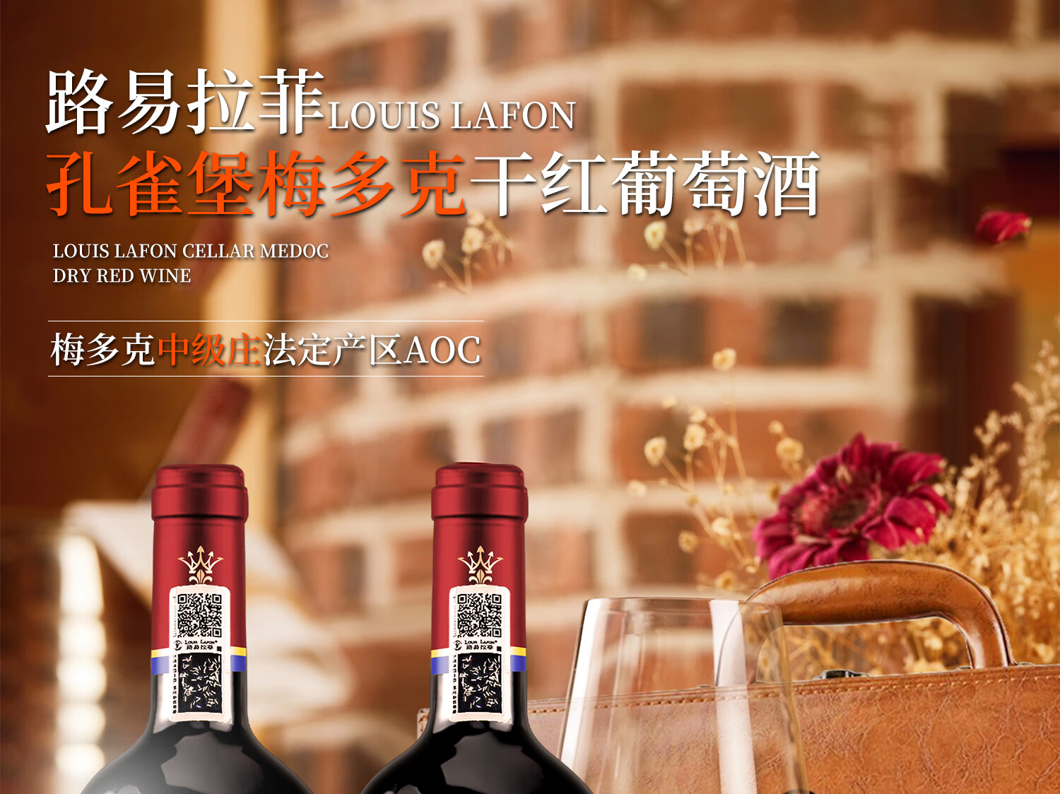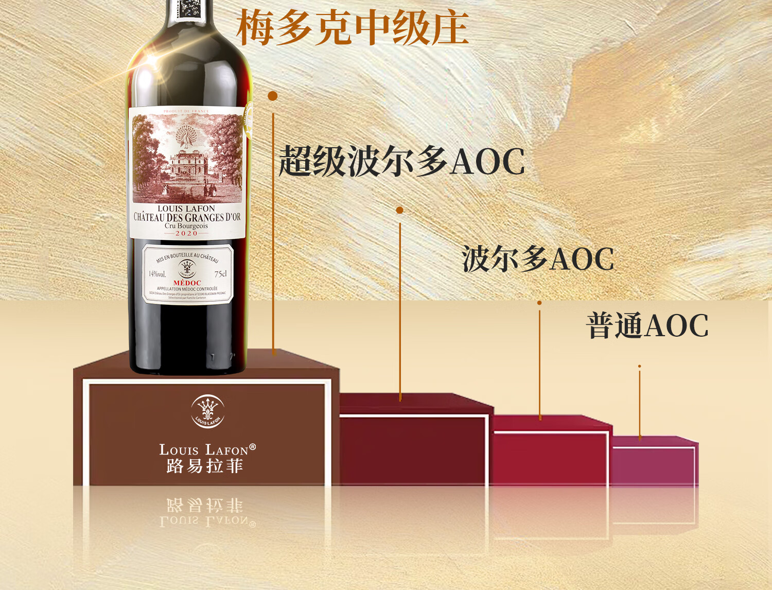 路易拉菲(LOUIS LAFON)法国原瓶进口红酒14度中级庄干红葡萄酒 750ml*2礼盒送礼