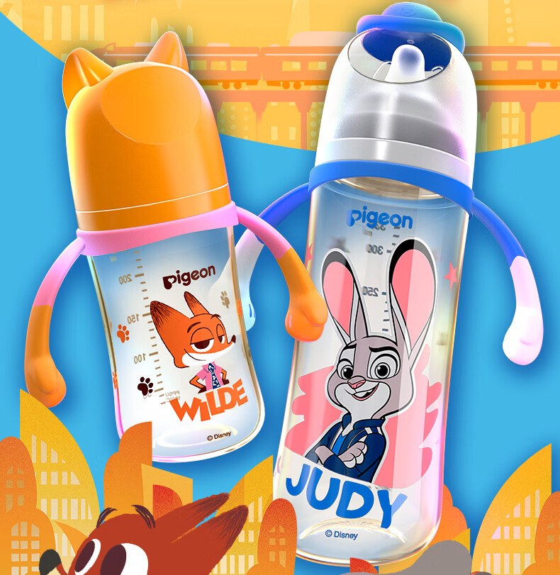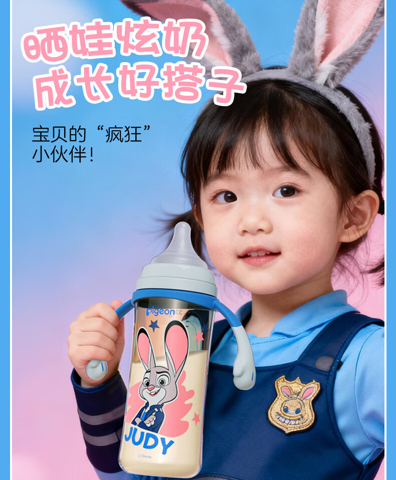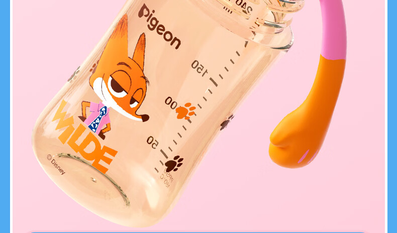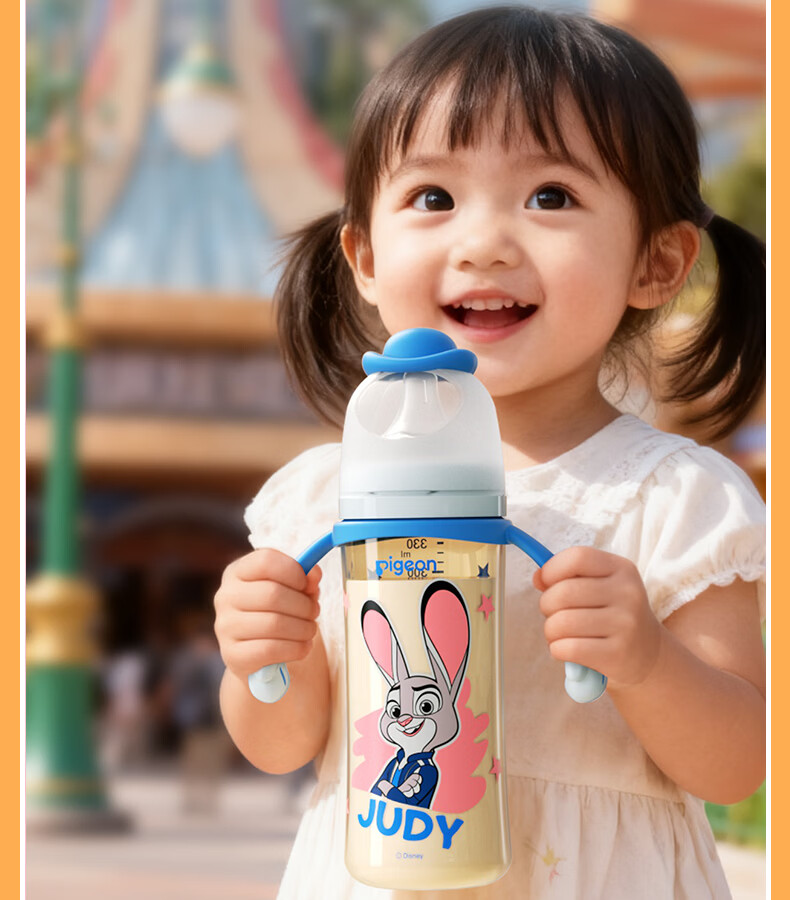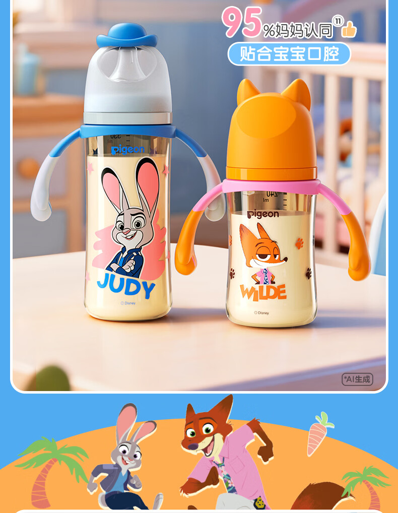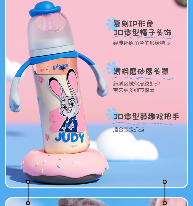 贝亲奶瓶PPSU 婴儿奶瓶彩绘双把手宽口径奶瓶 迪士尼疯狂动物城系列 330ml配L号6个月以上-探案朱迪