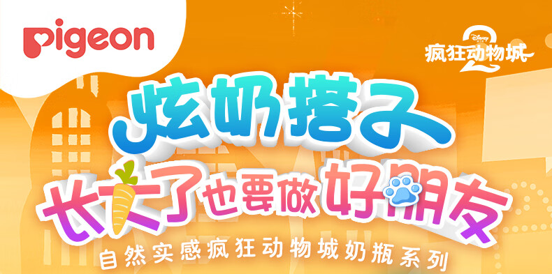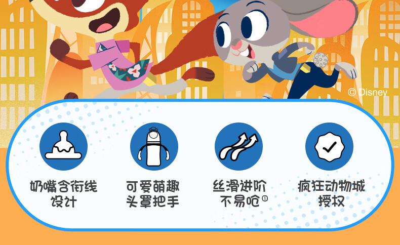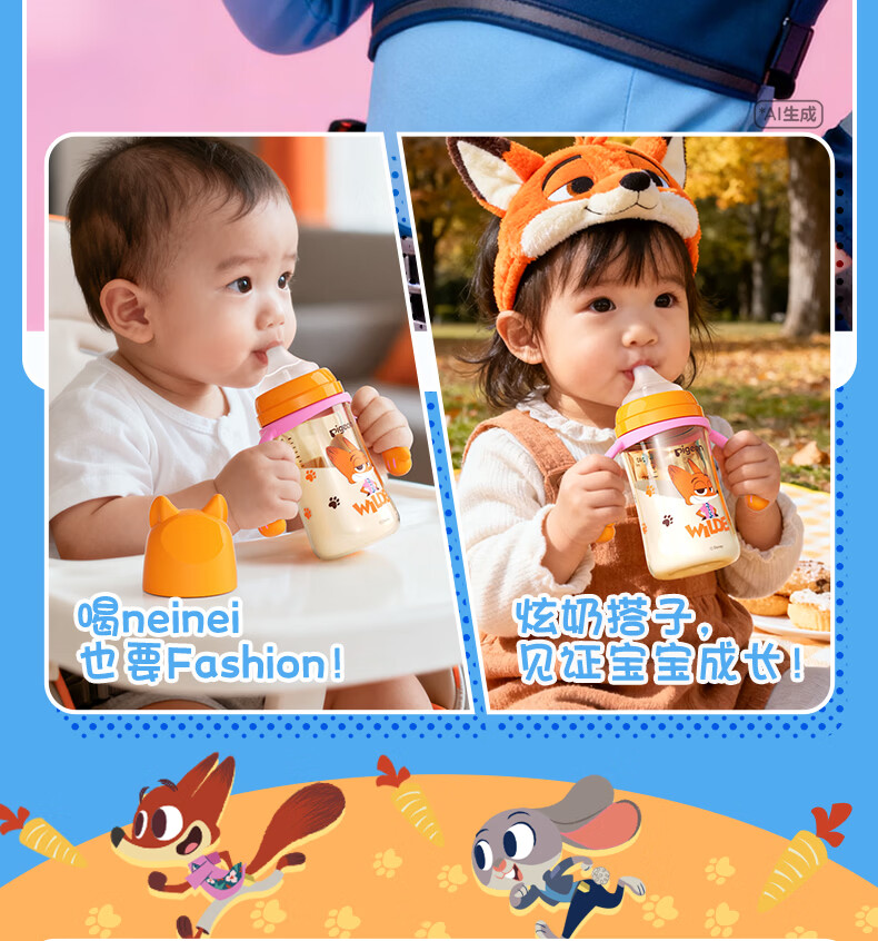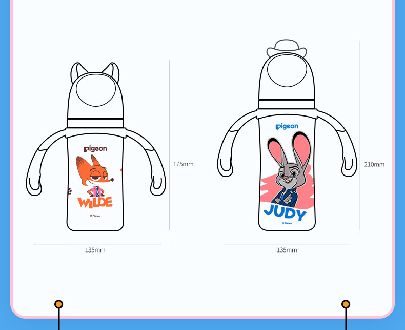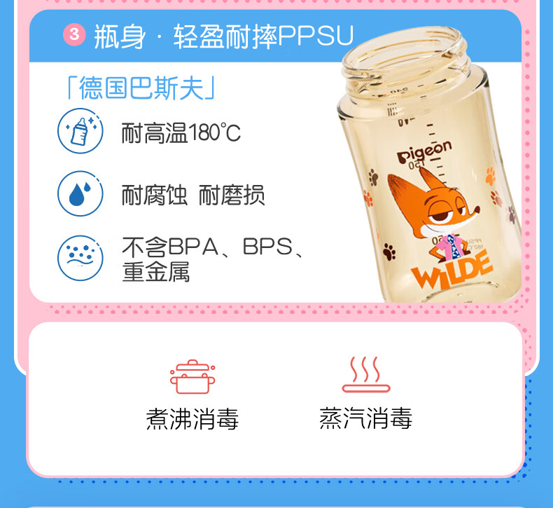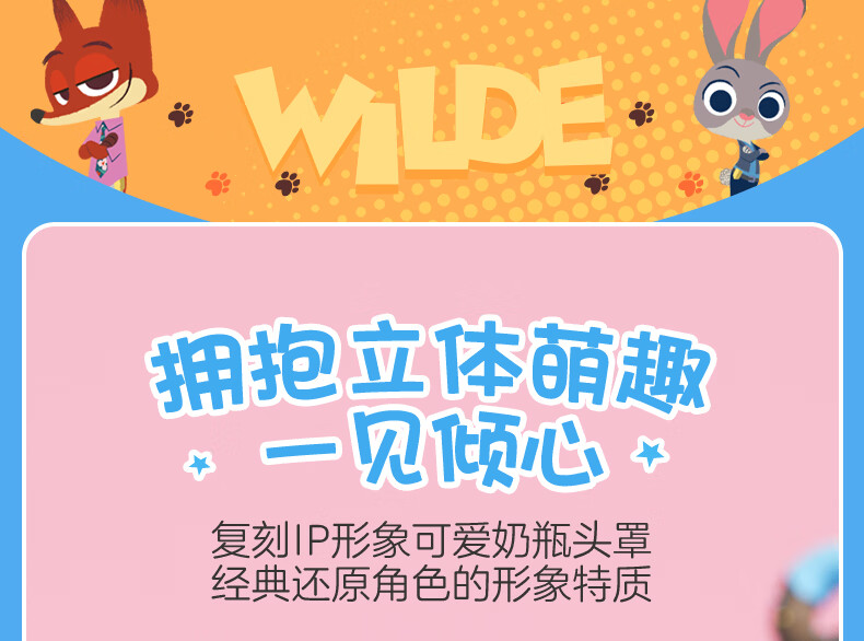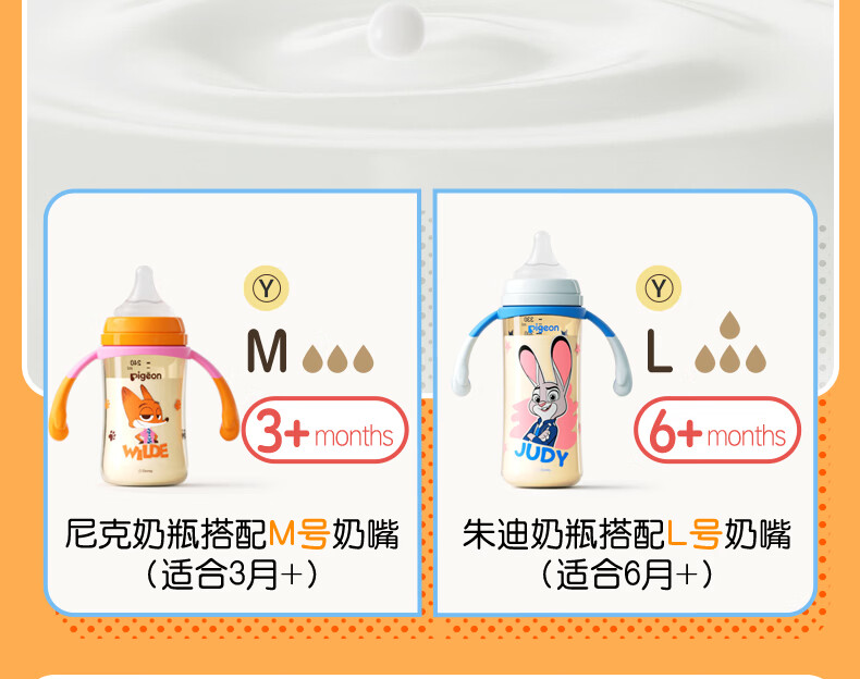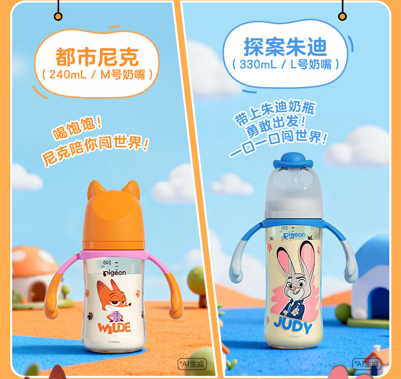 贝亲奶瓶PPSU 婴儿奶瓶彩绘双把手宽口径奶瓶 迪士尼疯狂动物城系列 330ml配L号6个月以上-探案朱迪