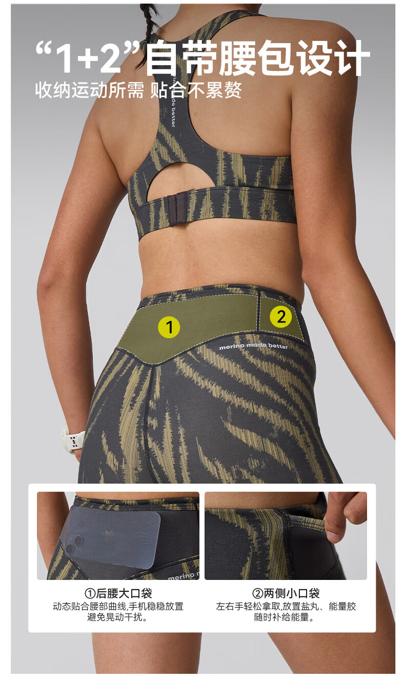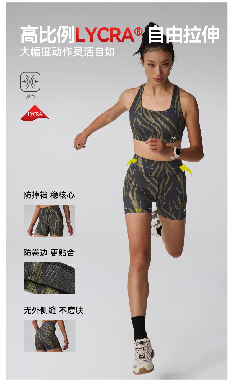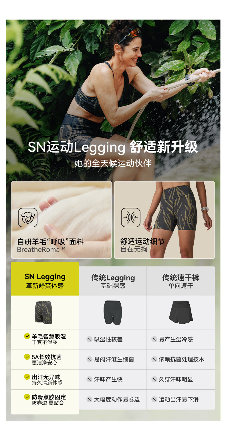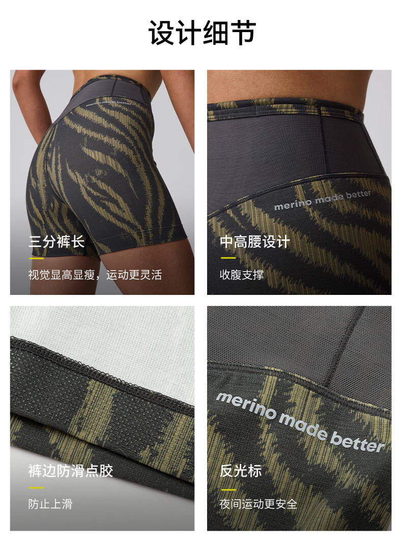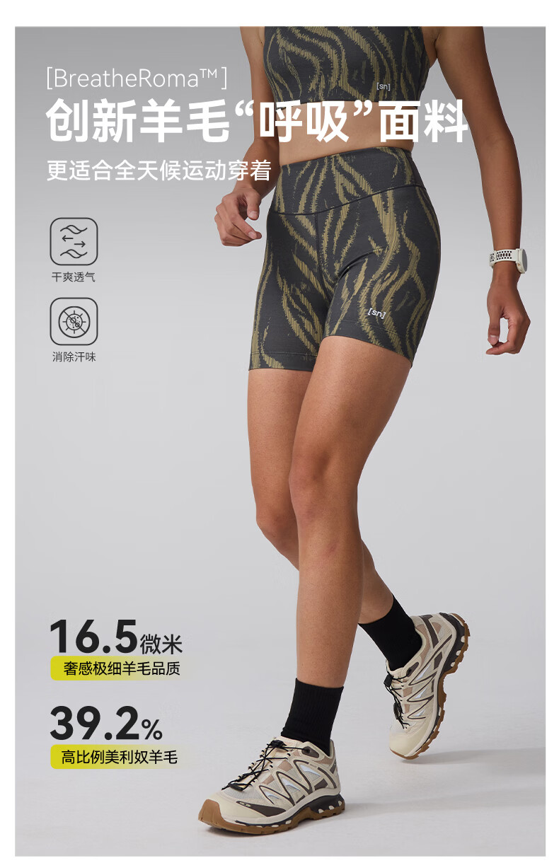 SN【春夏新品】美利奴羊毛紧身短裤女户外跑步三分裤咩咩弹力系列 黎金树影灰 S建议拍大1码