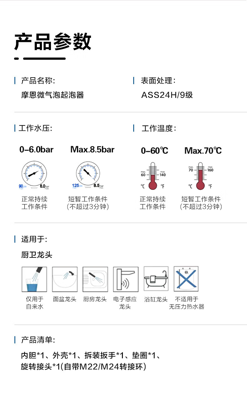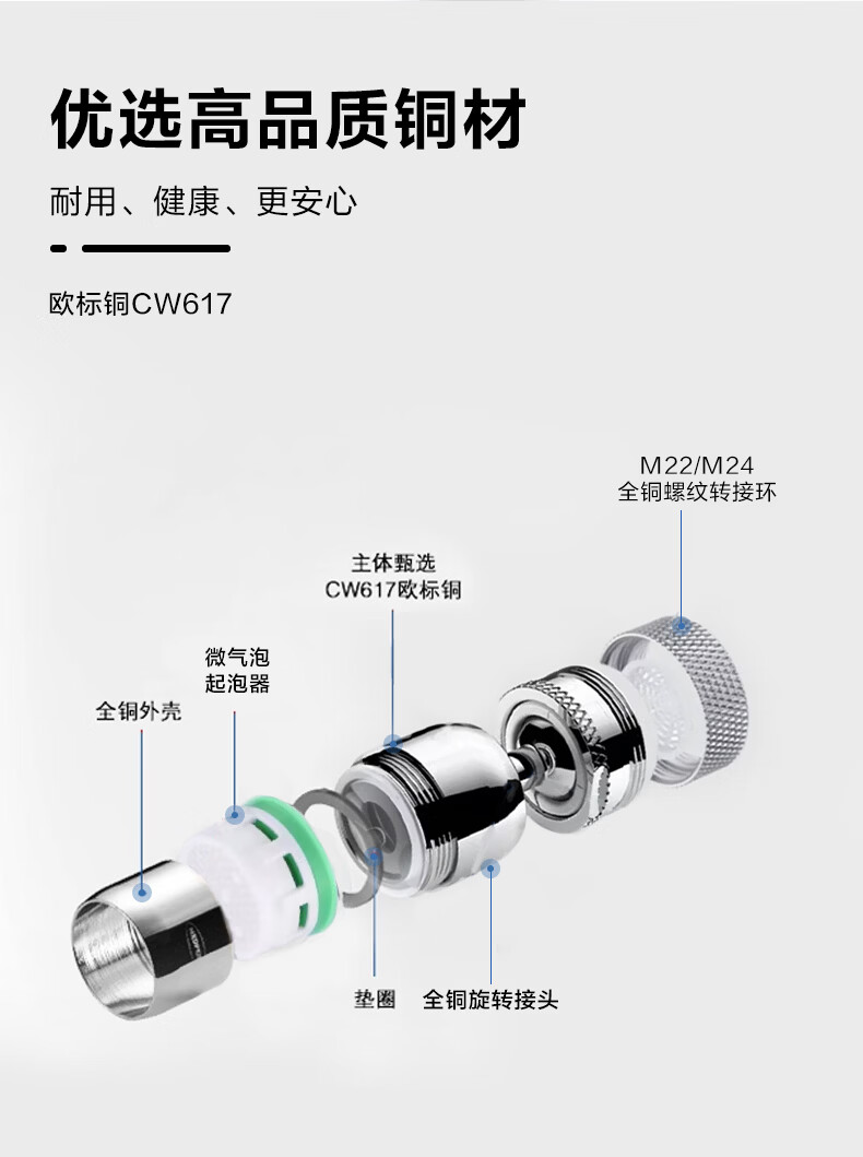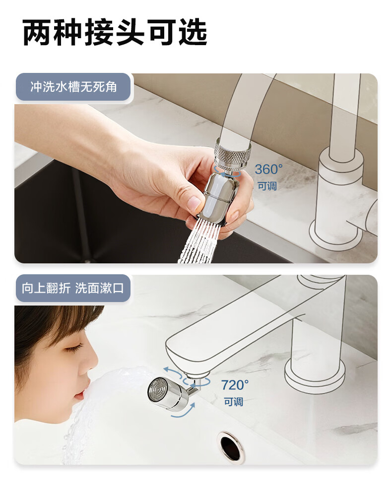 摩恩(MOEN)水龙头微气泡起泡器万向水龙头延伸器防溅水加长转接头发泡器 720°万向接头微气泡