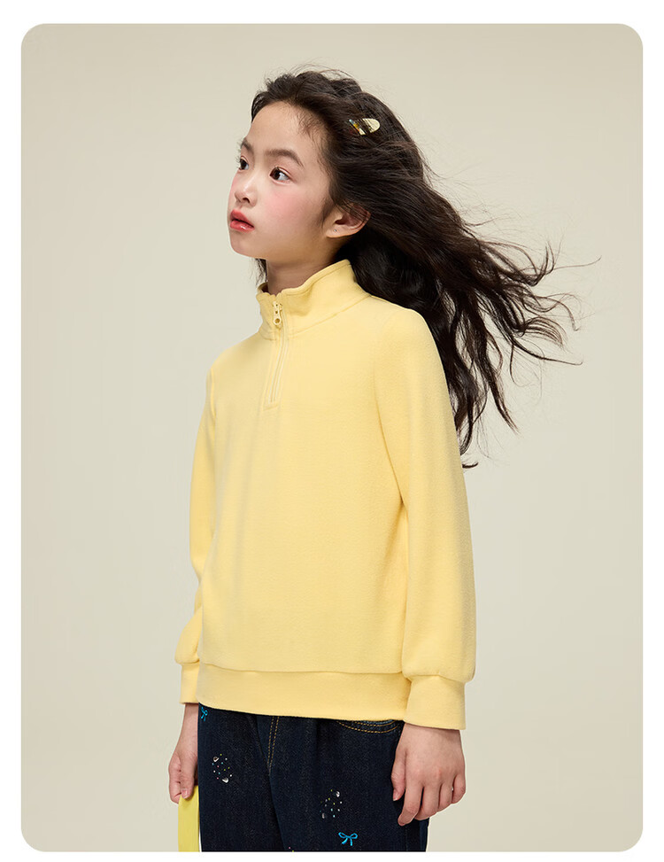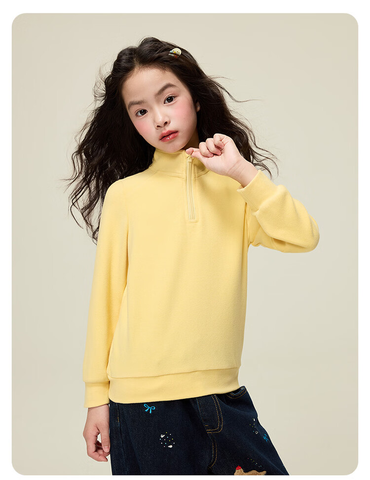 媛媛公主女童仿德绒打底衫秋冬款儿童亲肤蓄热保暖内衣中大童内搭校服神器 黄色 110
