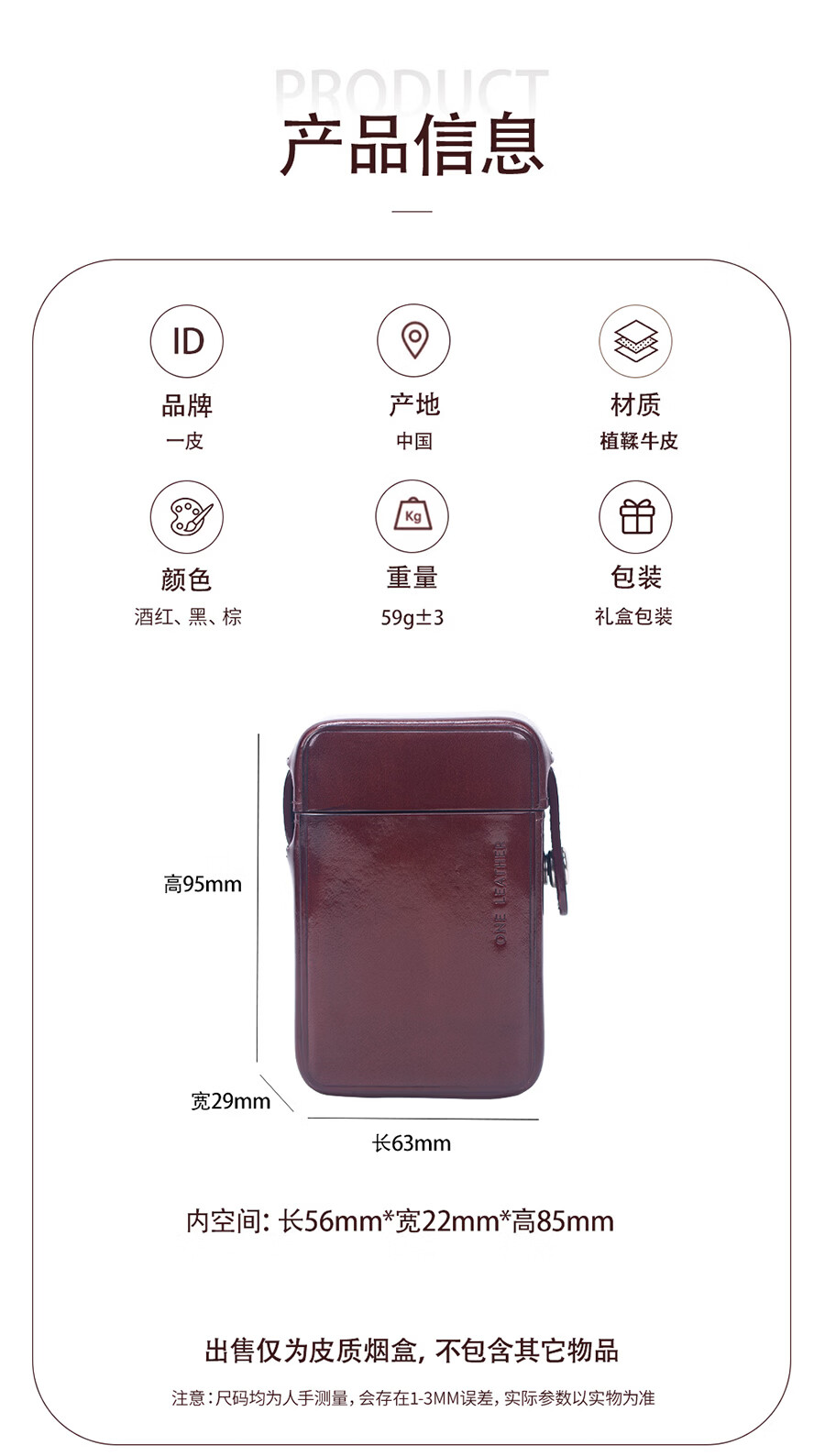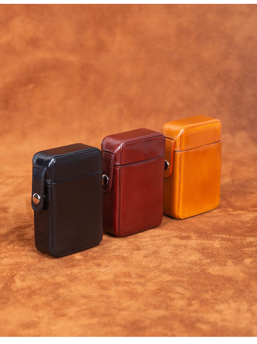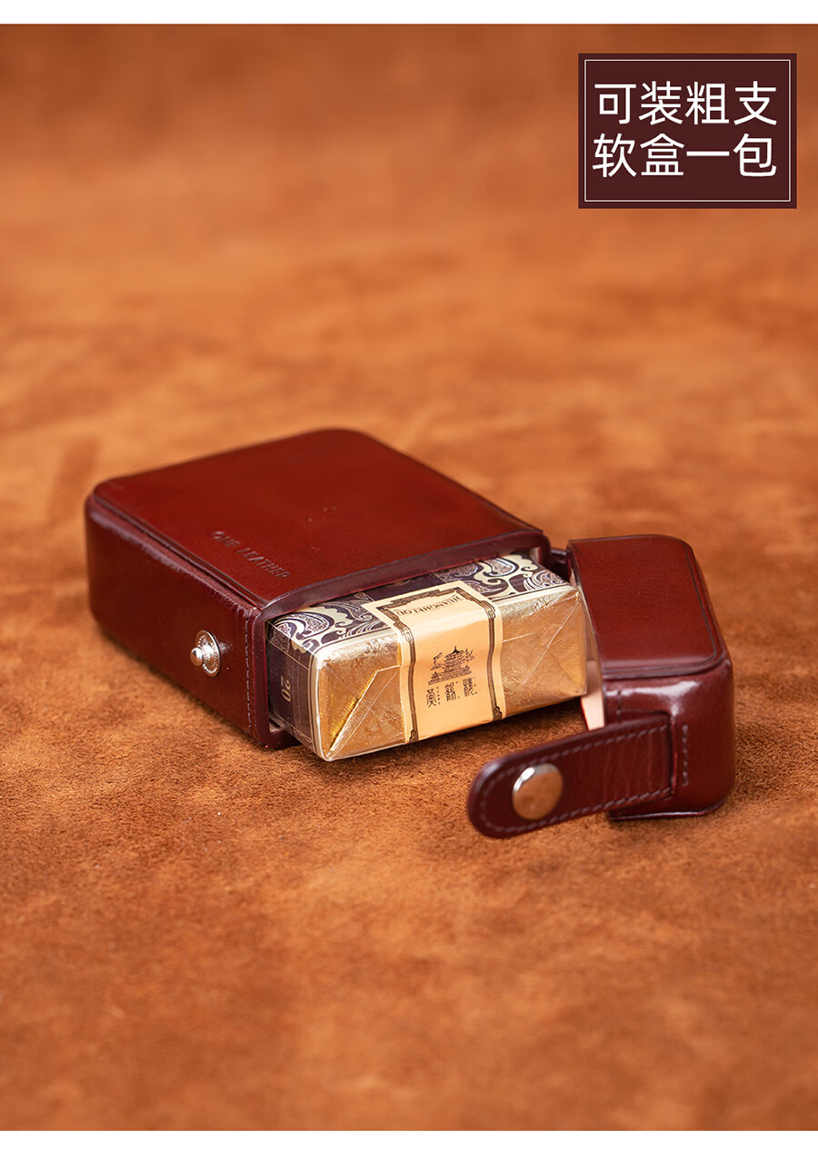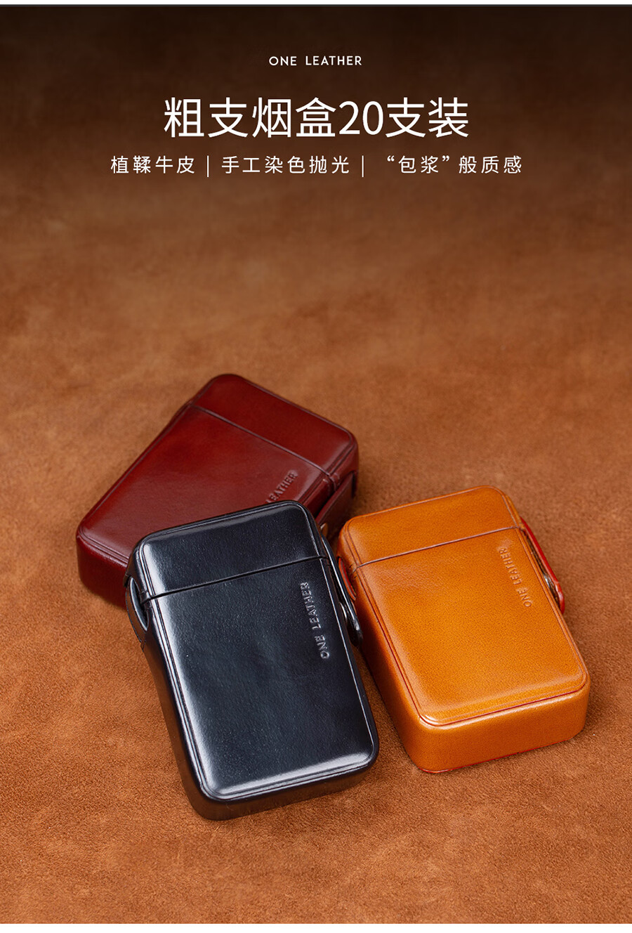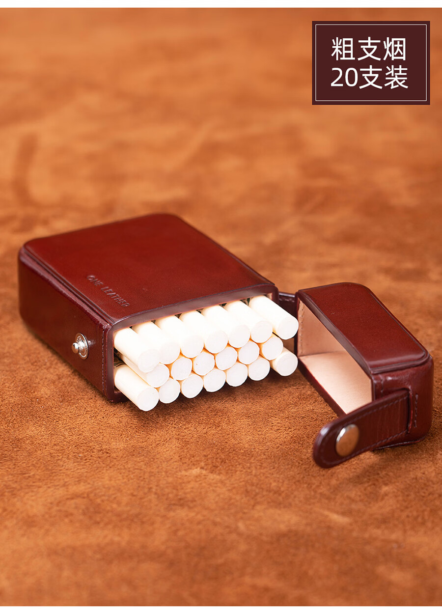 一皮(ONE LEATHER)烟盒20支植鞣牛皮2025新款粗支烟盒男女士通用手工便携高档保护套 棕色 20支