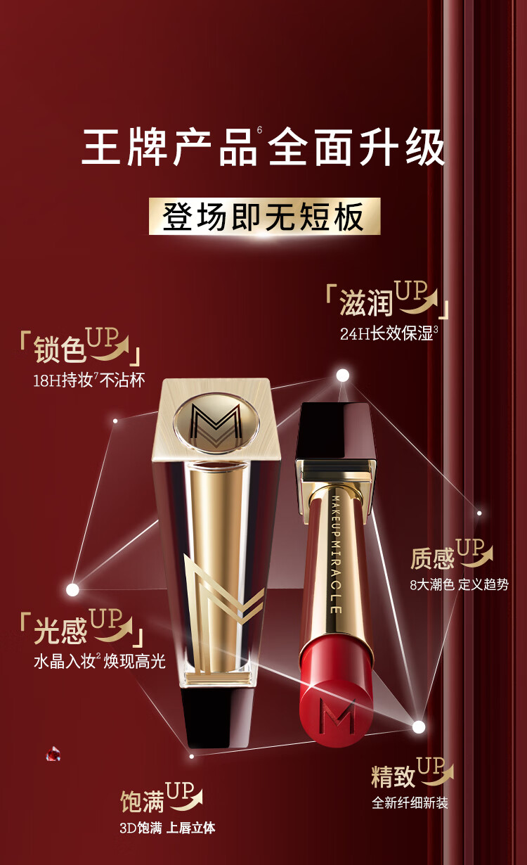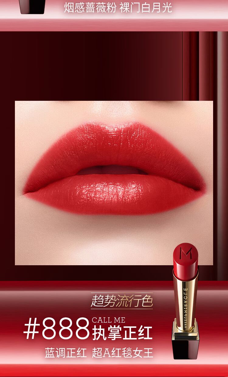 屈臣氏MAKEUPMIRACLE莹润臻色唇膏 888执掌正红 3g 支