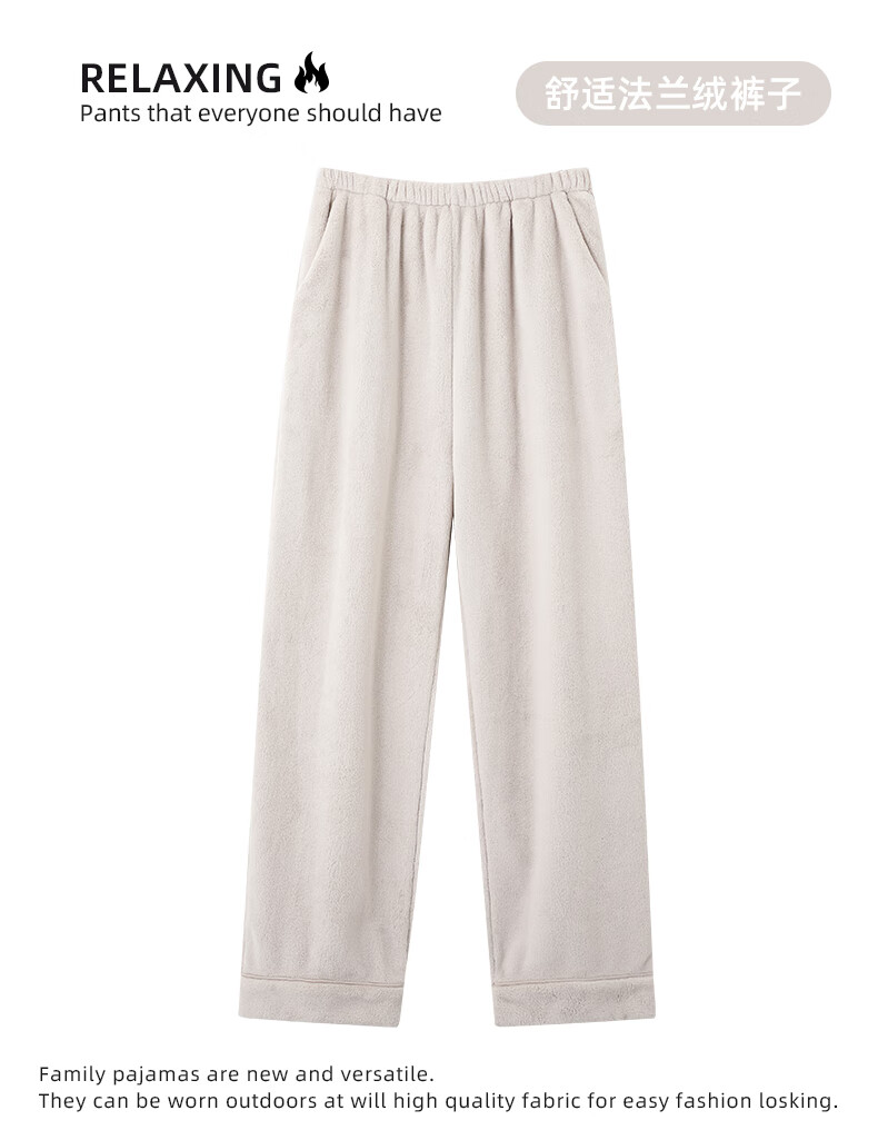 叶盼(yepan)【保暖】睡裤男秋冬季加绒加厚珊瑚绒休闲宽松大码法兰绒家居裤子 3903-灰杏 L (165) :建议110-140斤穿着