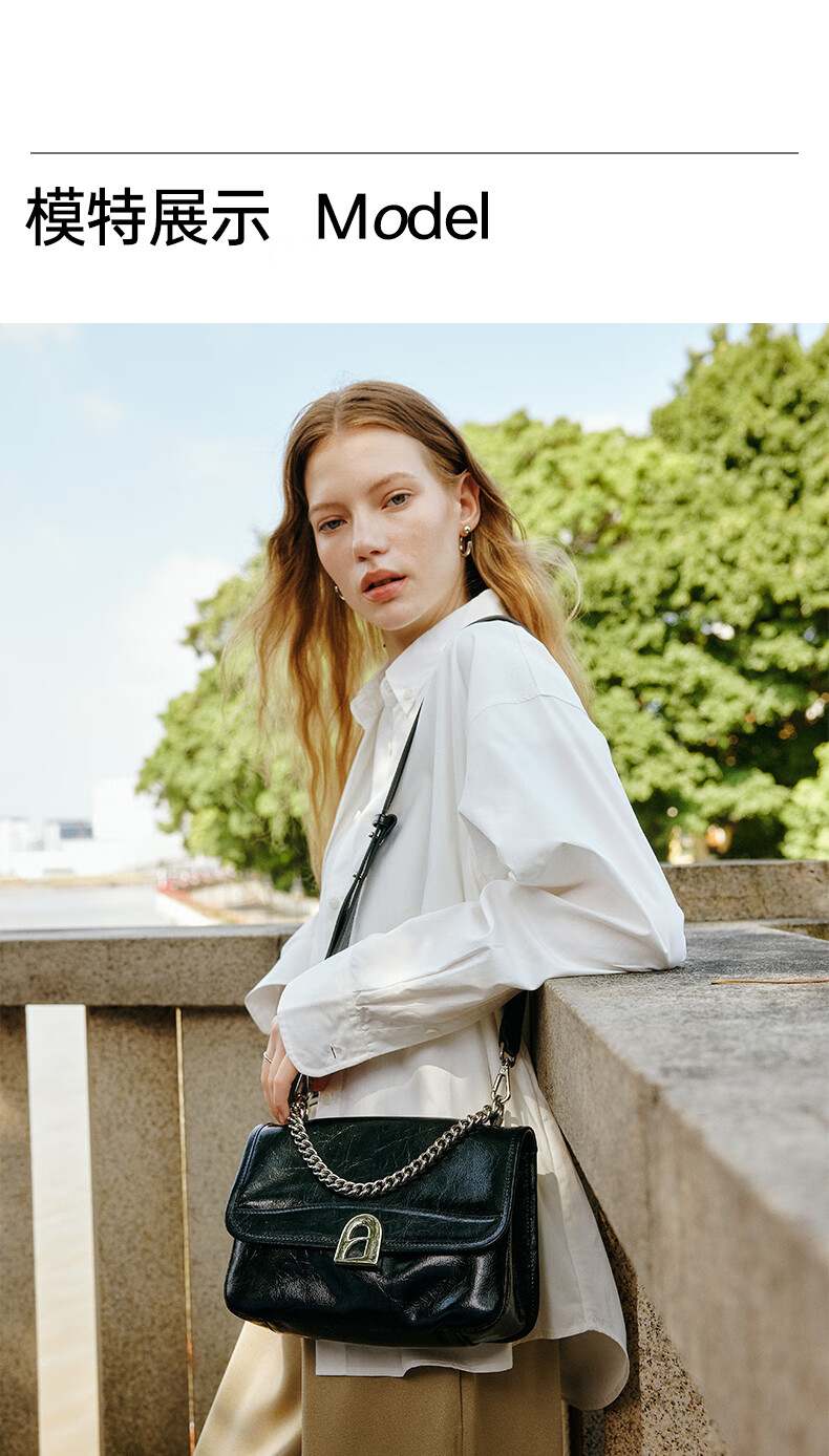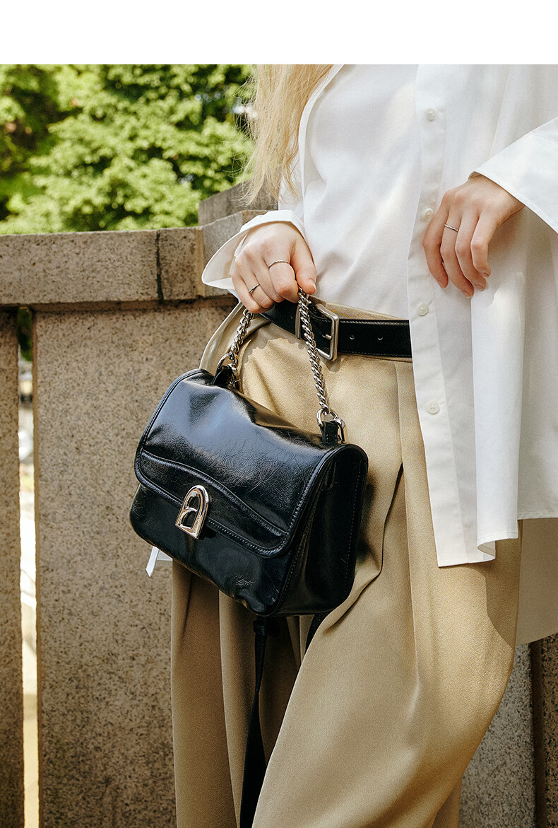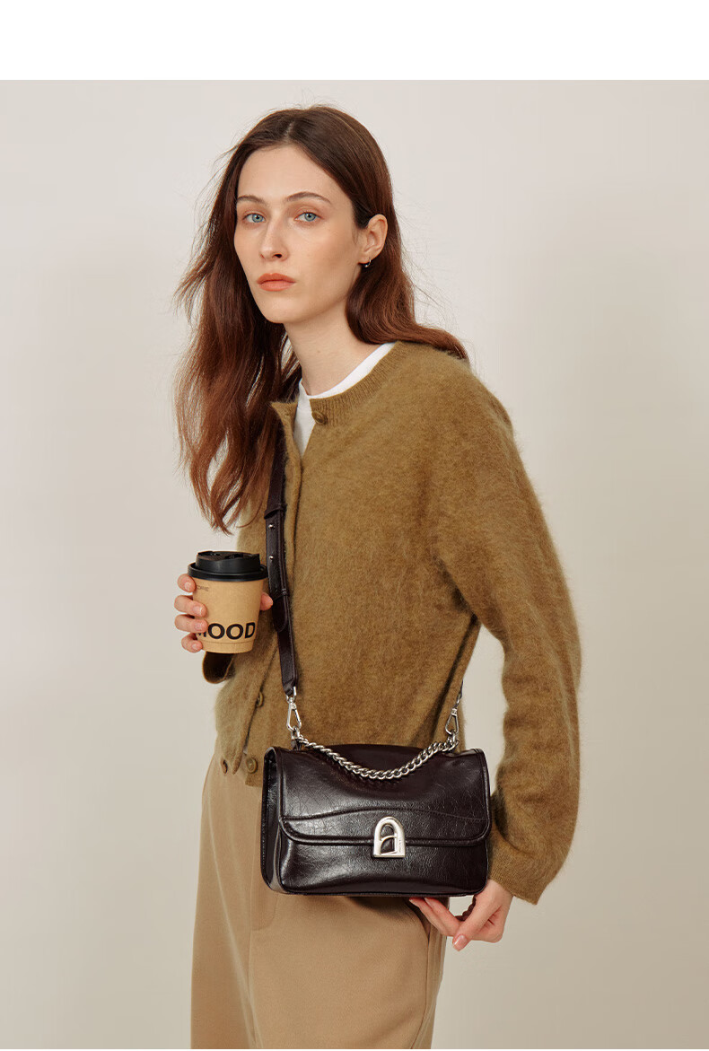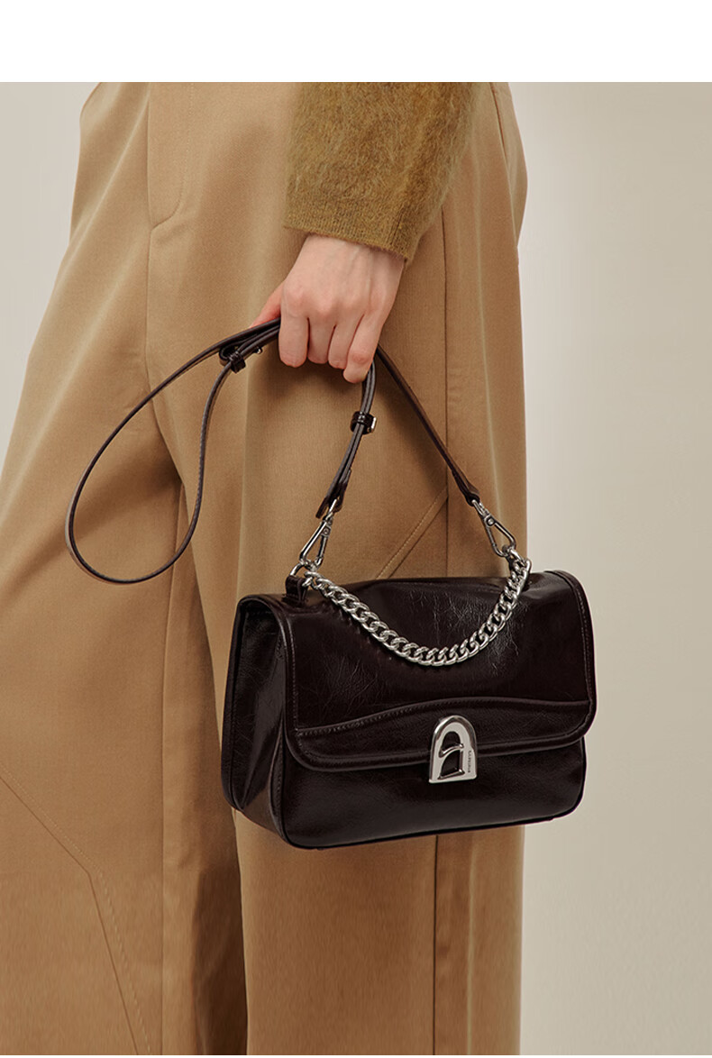 拉菲斯汀包包女包2026新款牛皮通勤单肩斜挎包品牌腋下小方包生日礼物 栗子棕【JD专供】