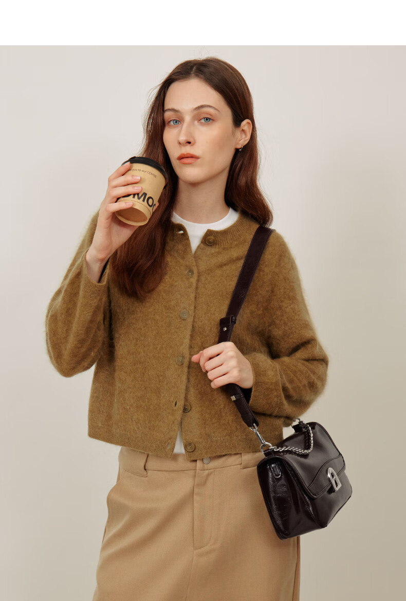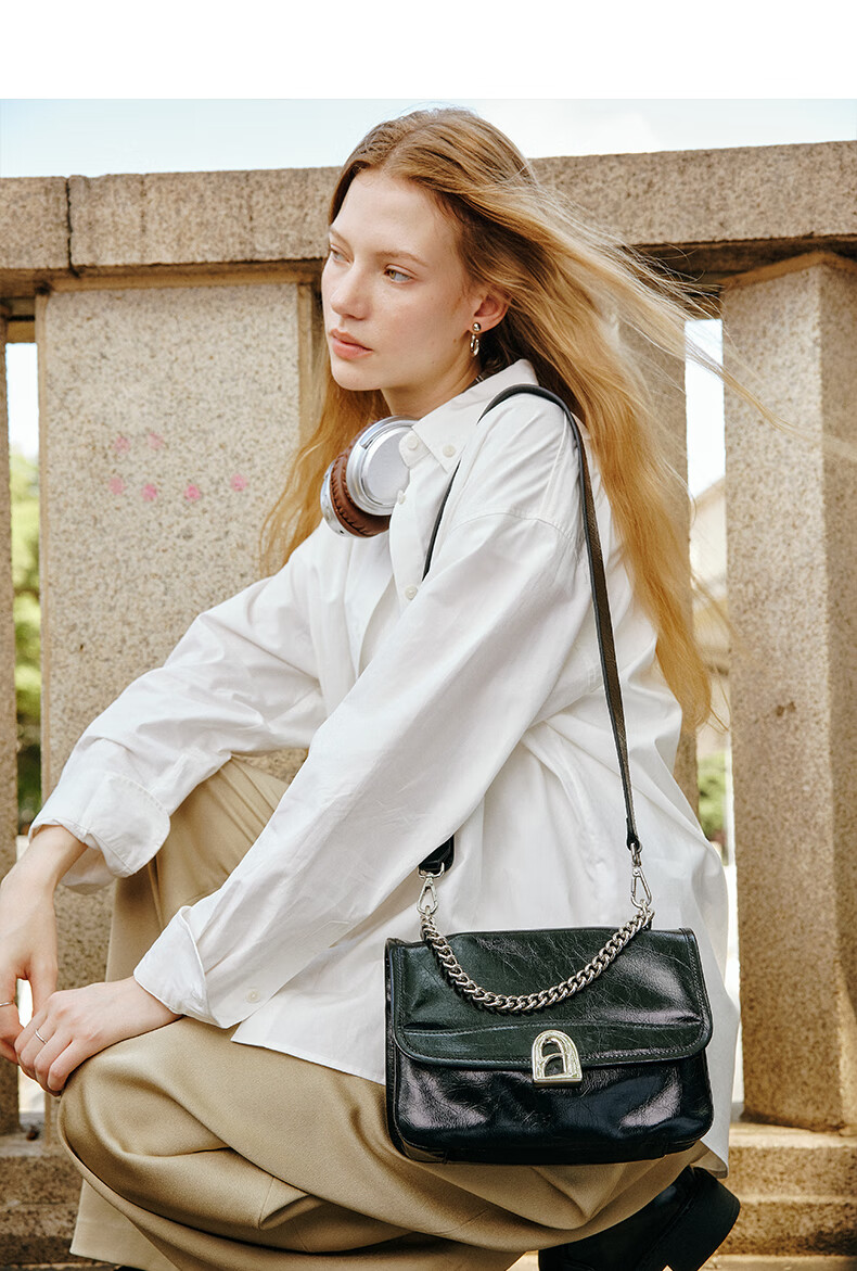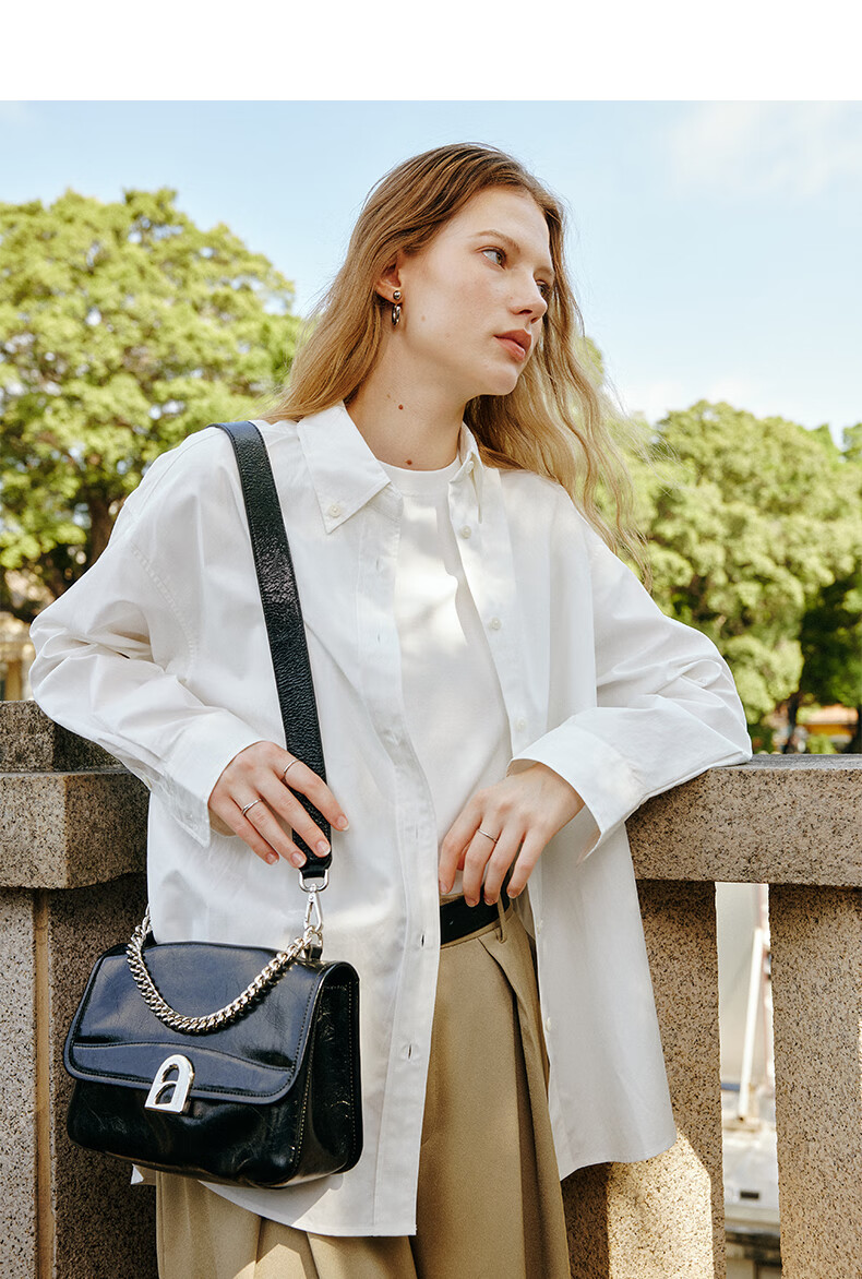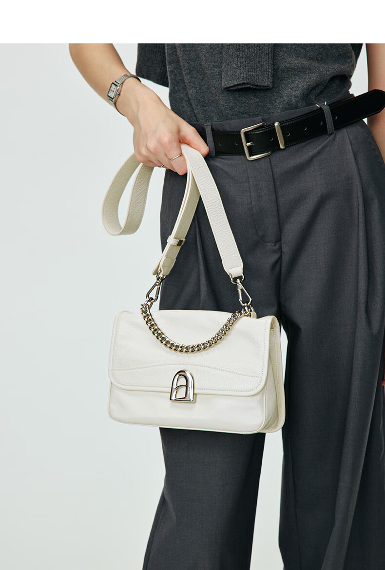 拉菲斯汀包包女包2026新款牛皮通勤单肩斜挎包品牌腋下小方包生日礼物 栗子棕【JD专供】
