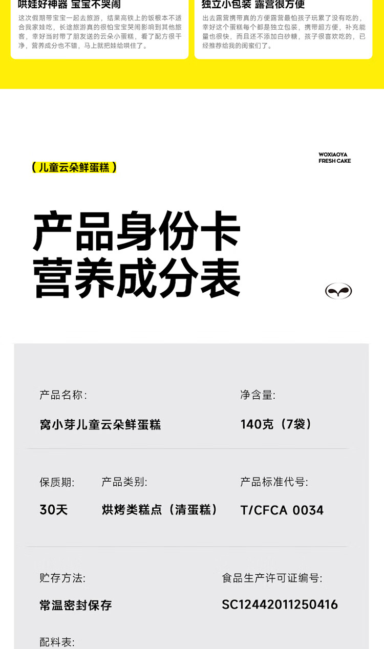 窝小芽 云朵鲜蛋糕0添加防腐剂早餐儿童面包享宝宝婴儿蛋糕辅食谱 云朵鲜蛋糕*3盒