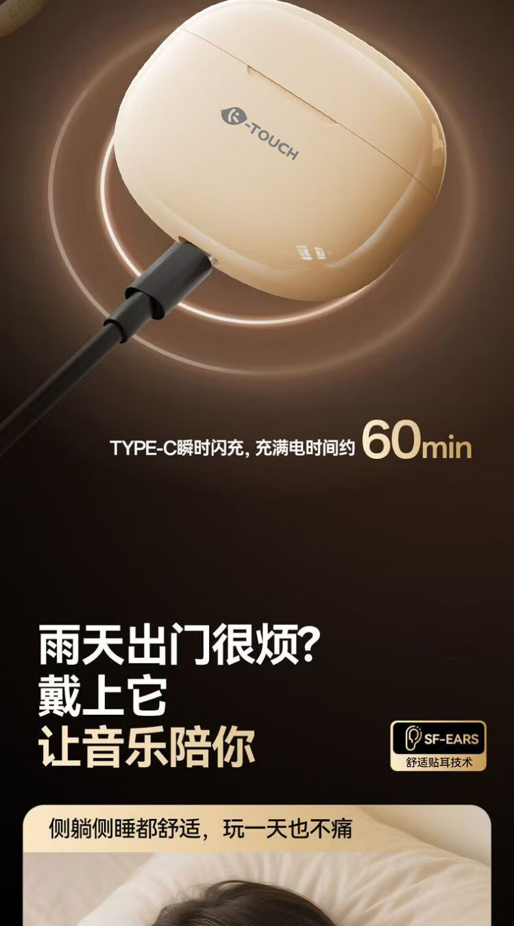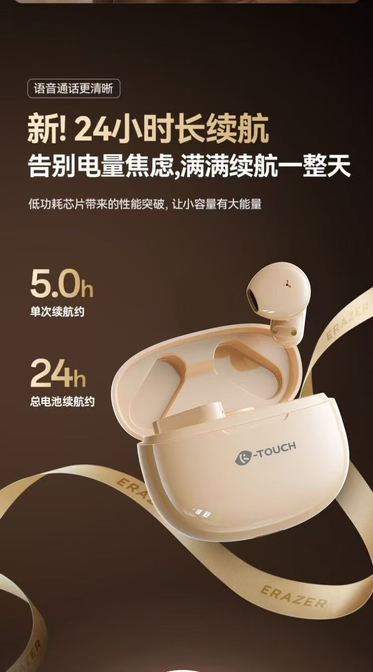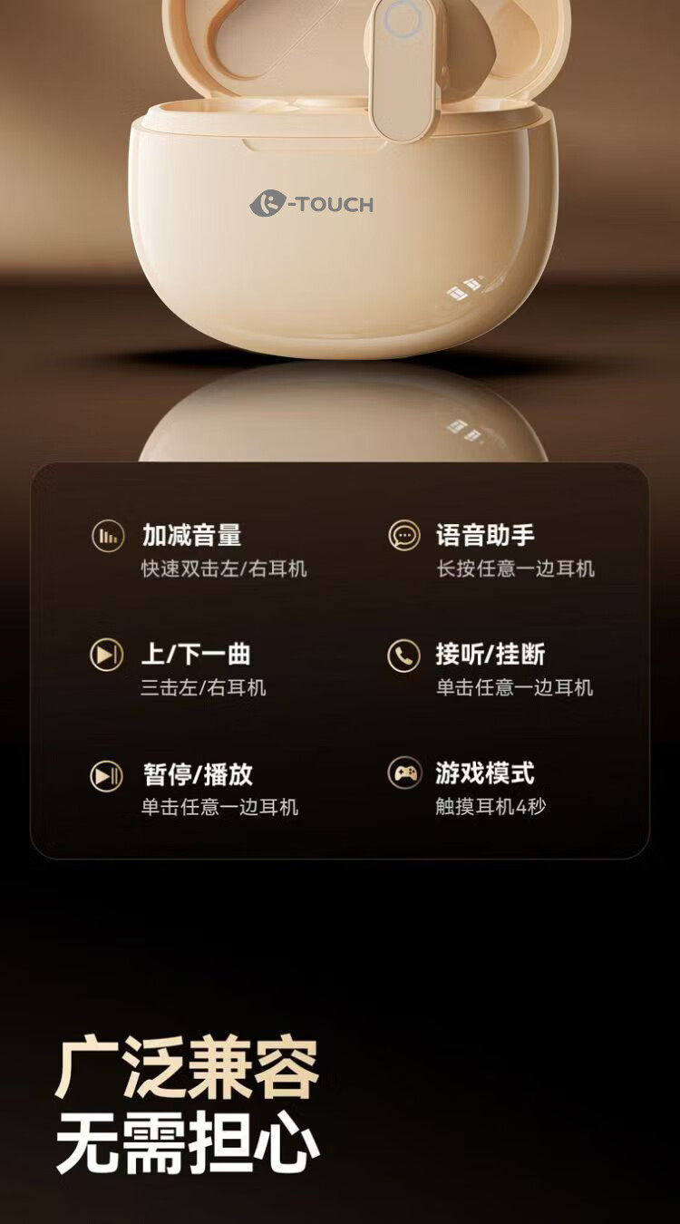 天语(TOUCH)蓝牙耳机2025新款高音质降噪超长续航运动入耳式通用TY-B20 肤色