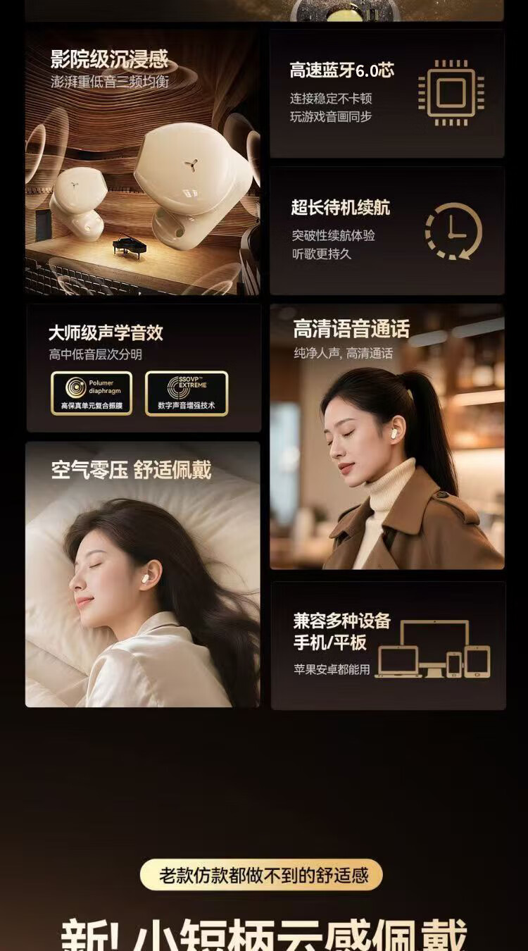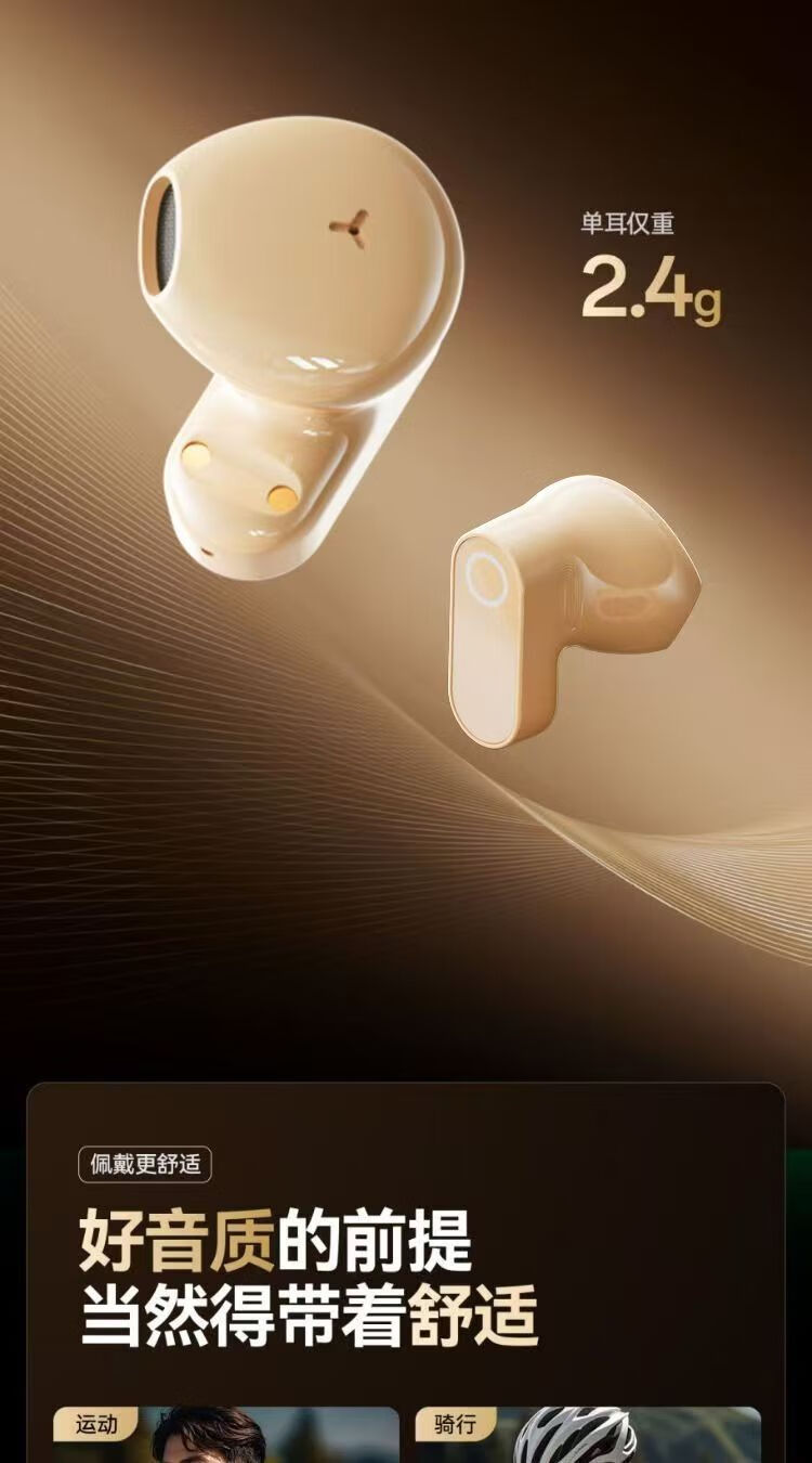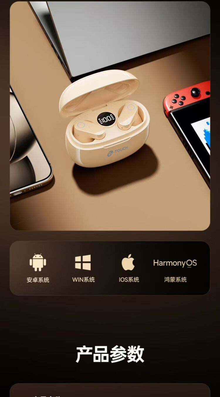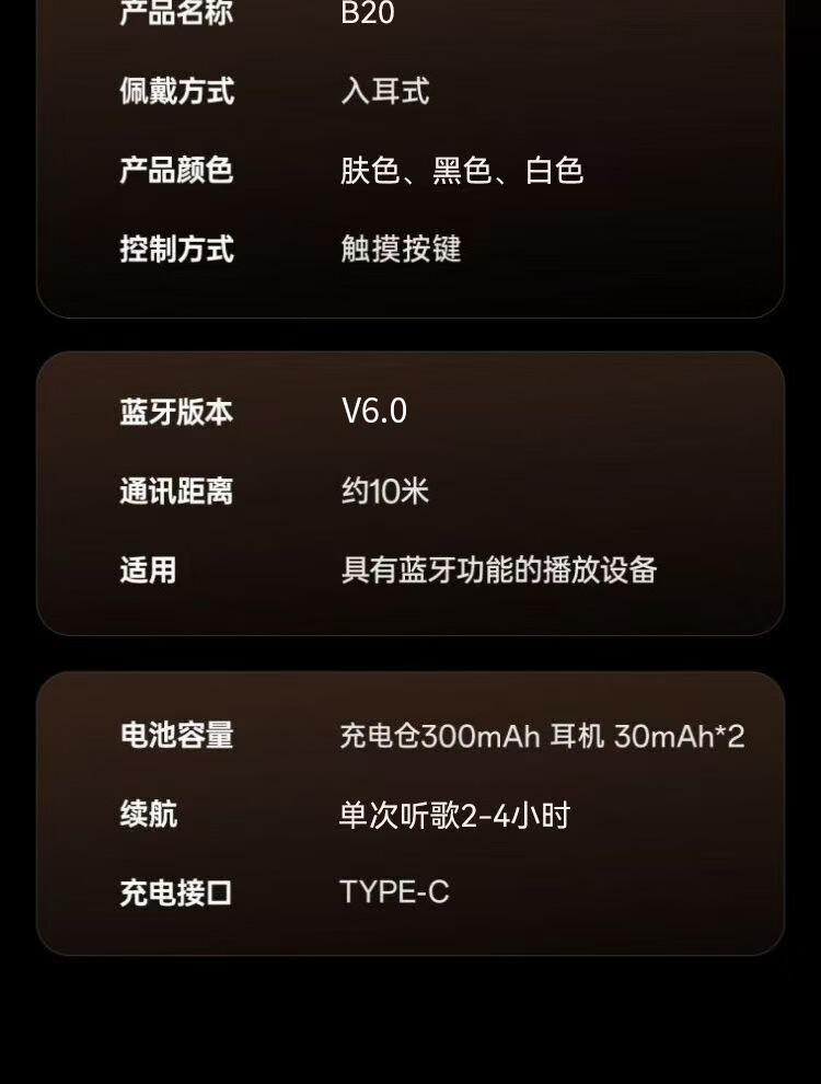 天语(TOUCH)蓝牙耳机2025新款高音质降噪超长续航运动入耳式通用TY-B20 肤色