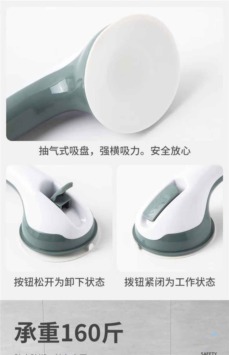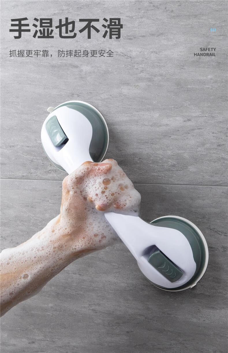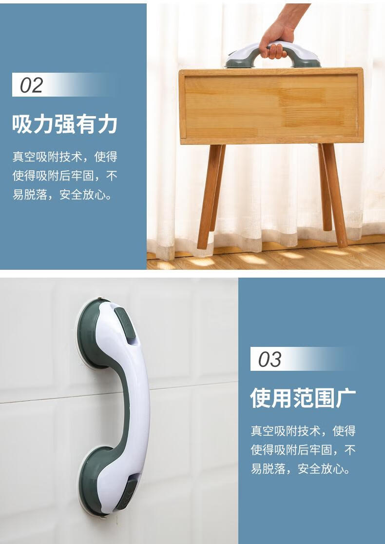家用吸盘浴室洗澡扶手免打孔卫生间玻璃门把手老人防滑门拉手方便 【青蓝色】两个装 无规格