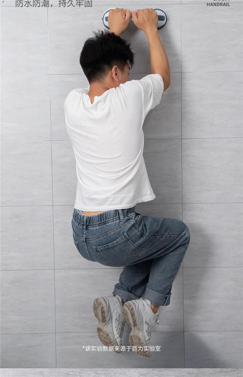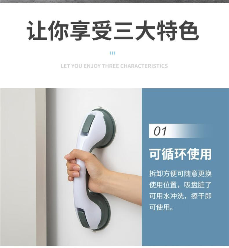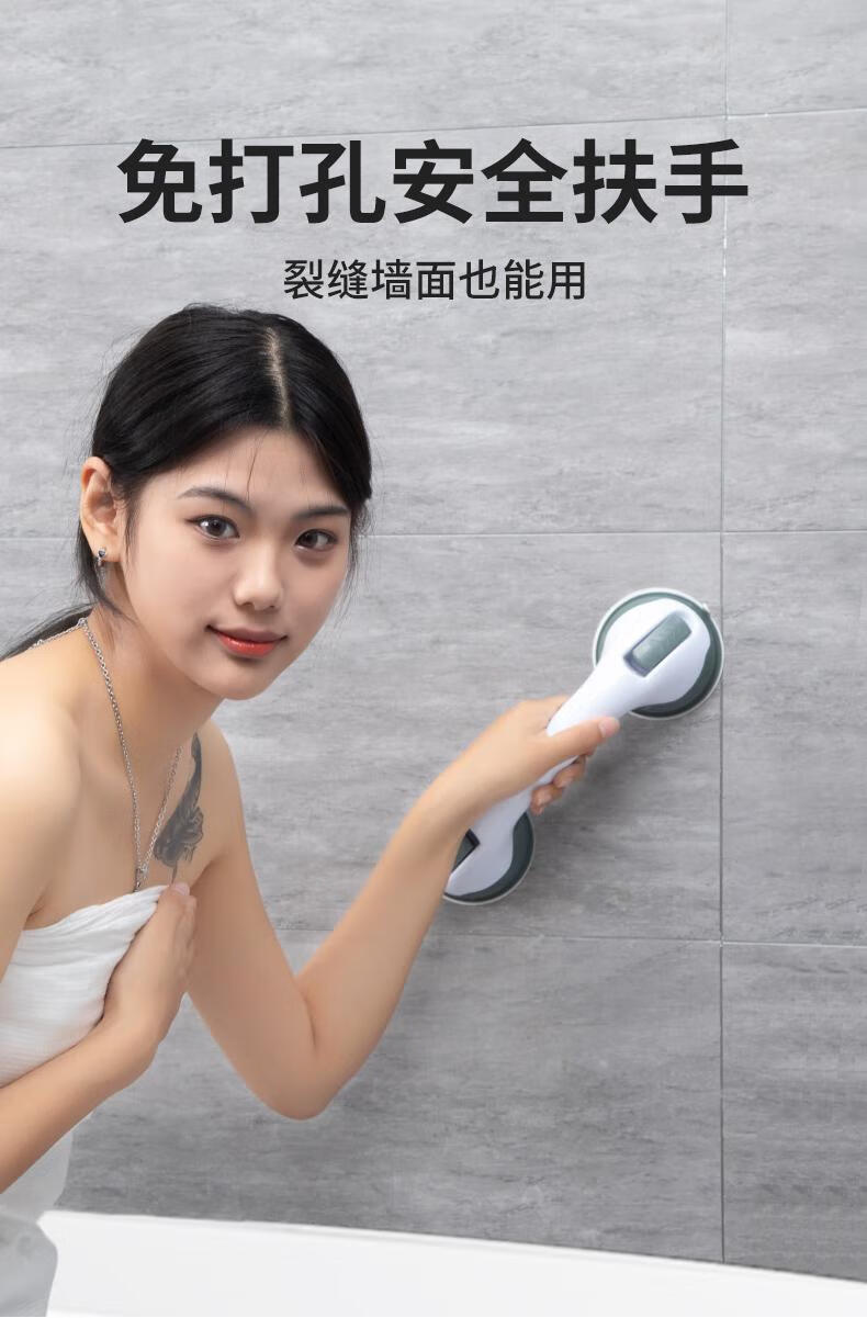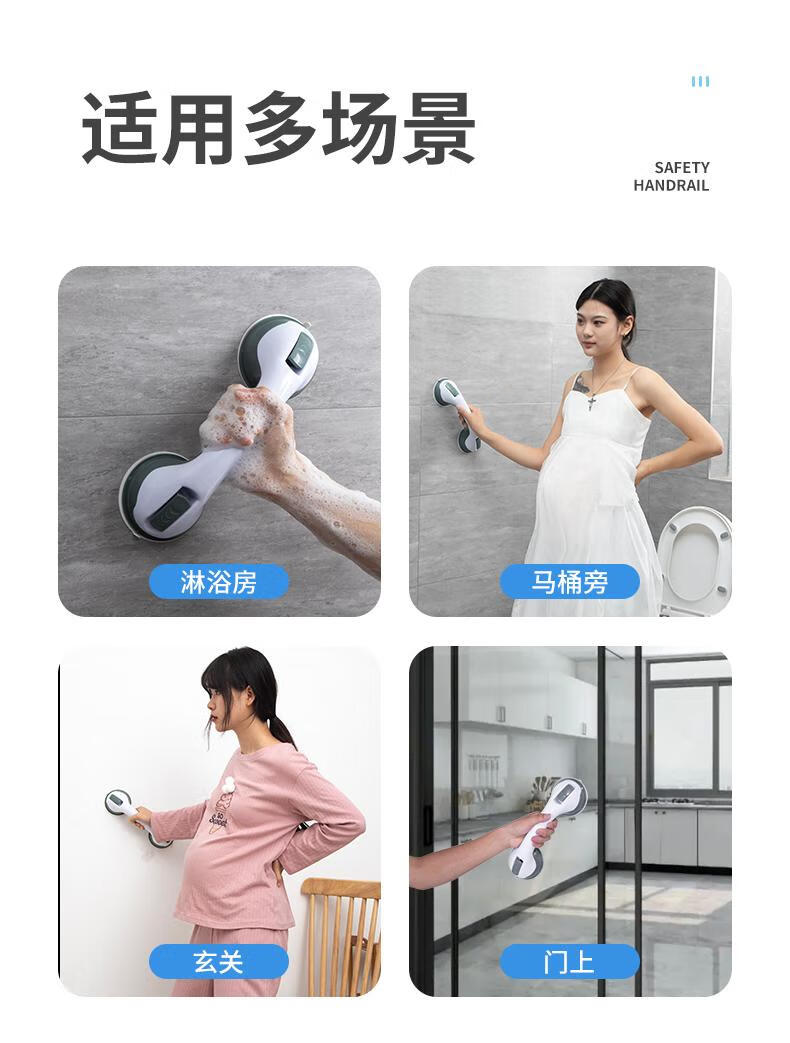 家用吸盘浴室洗澡扶手免打孔卫生间玻璃门把手老人防滑门拉手方便 【青蓝色】两个装 无规格