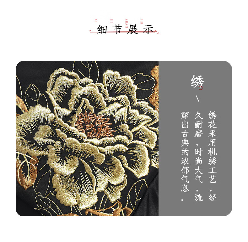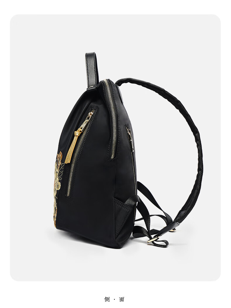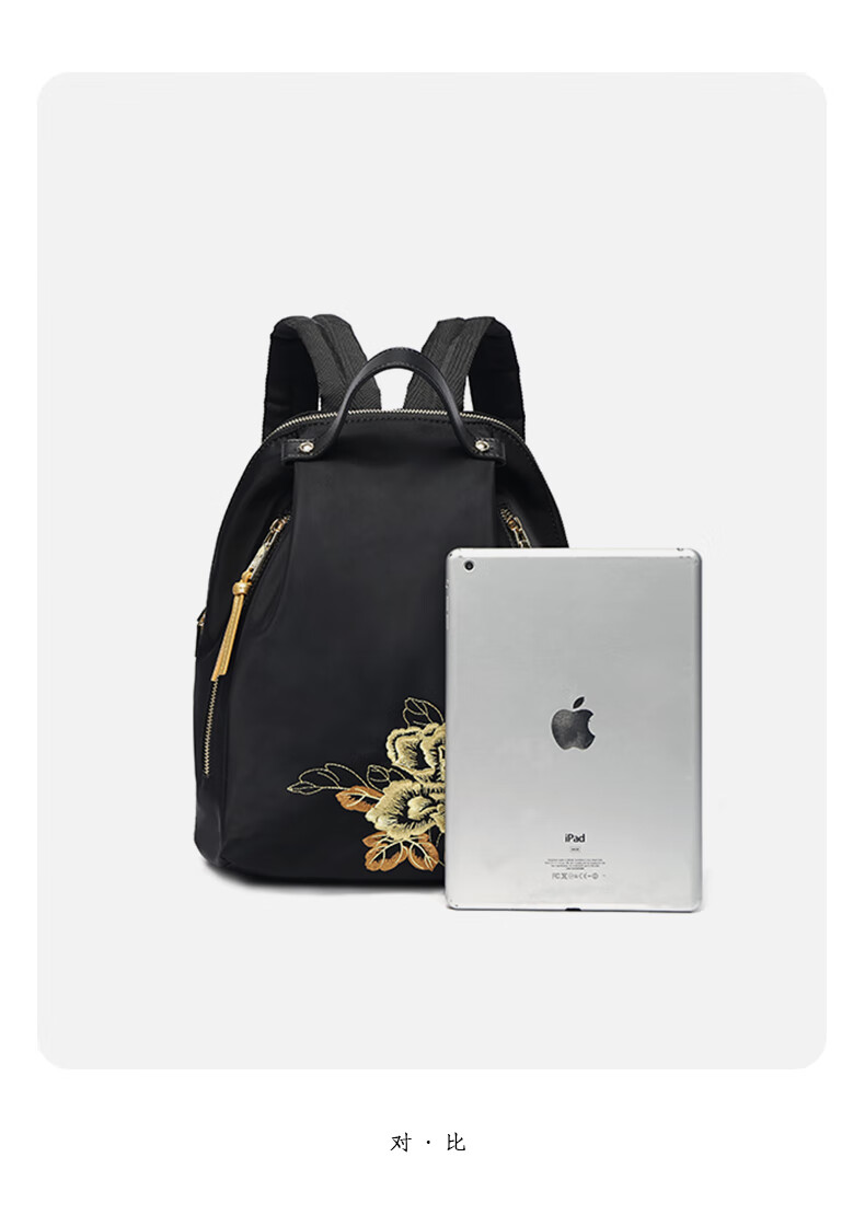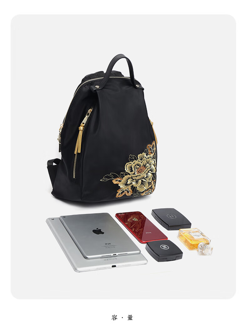 PmSix新中式牡丹绣花女包大容量双肩包中年妈妈包老年背包婆婆旅行布包 黑色-牡丹花刺绣-送礼品袋