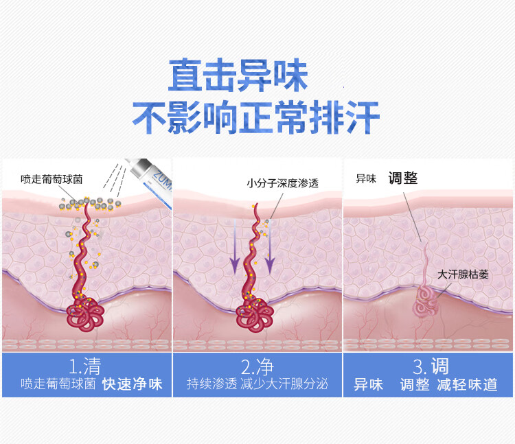 驻美堂汗臭喷剂腋下腋窝孤臭止汗露香体露去液臭狐臭祛男女士除学生喷雾 遗传重度60ml