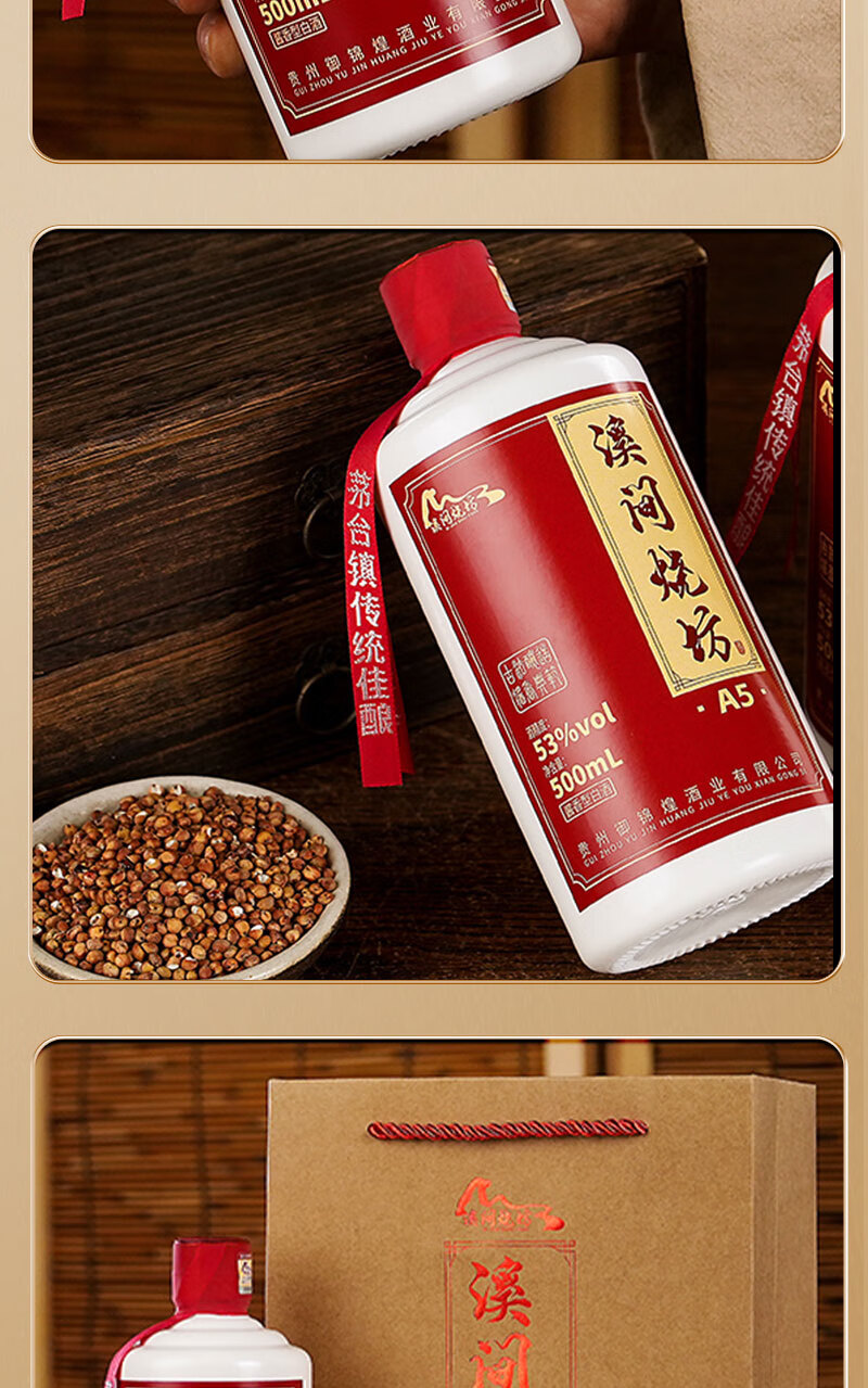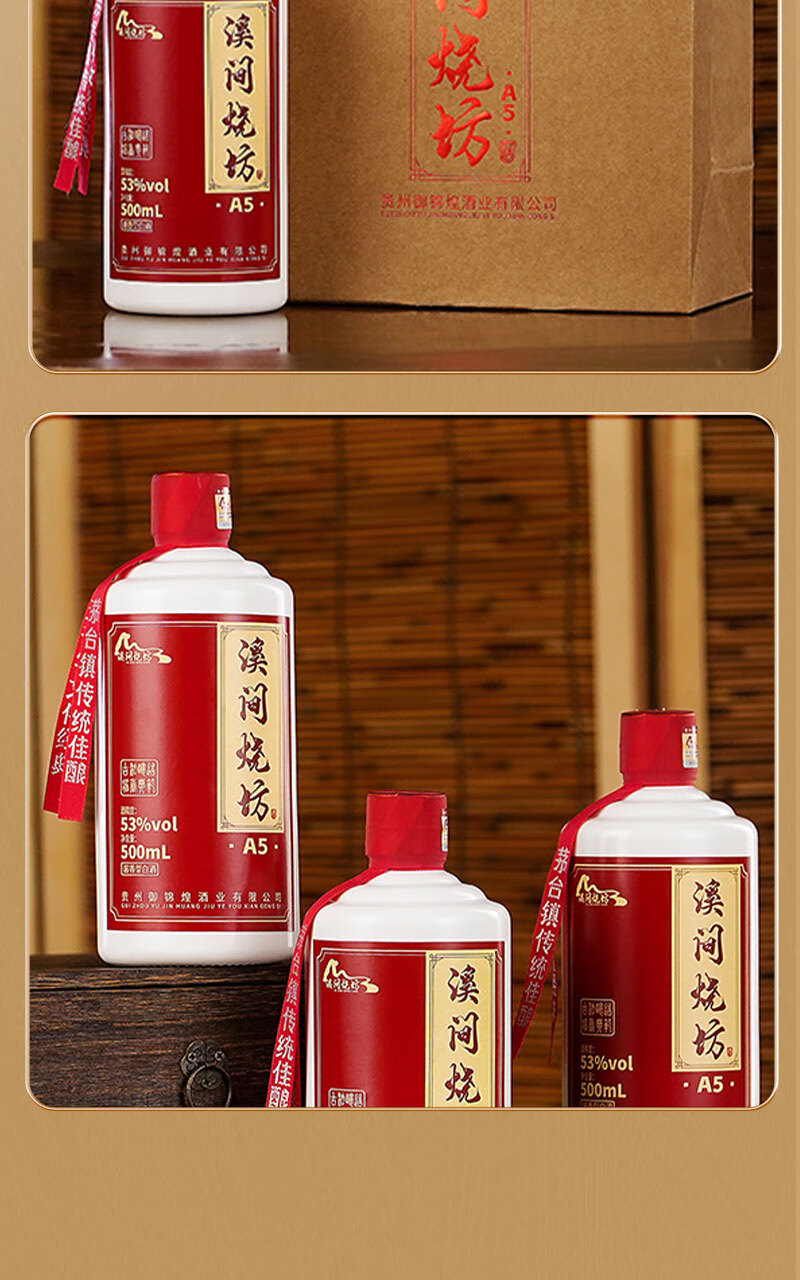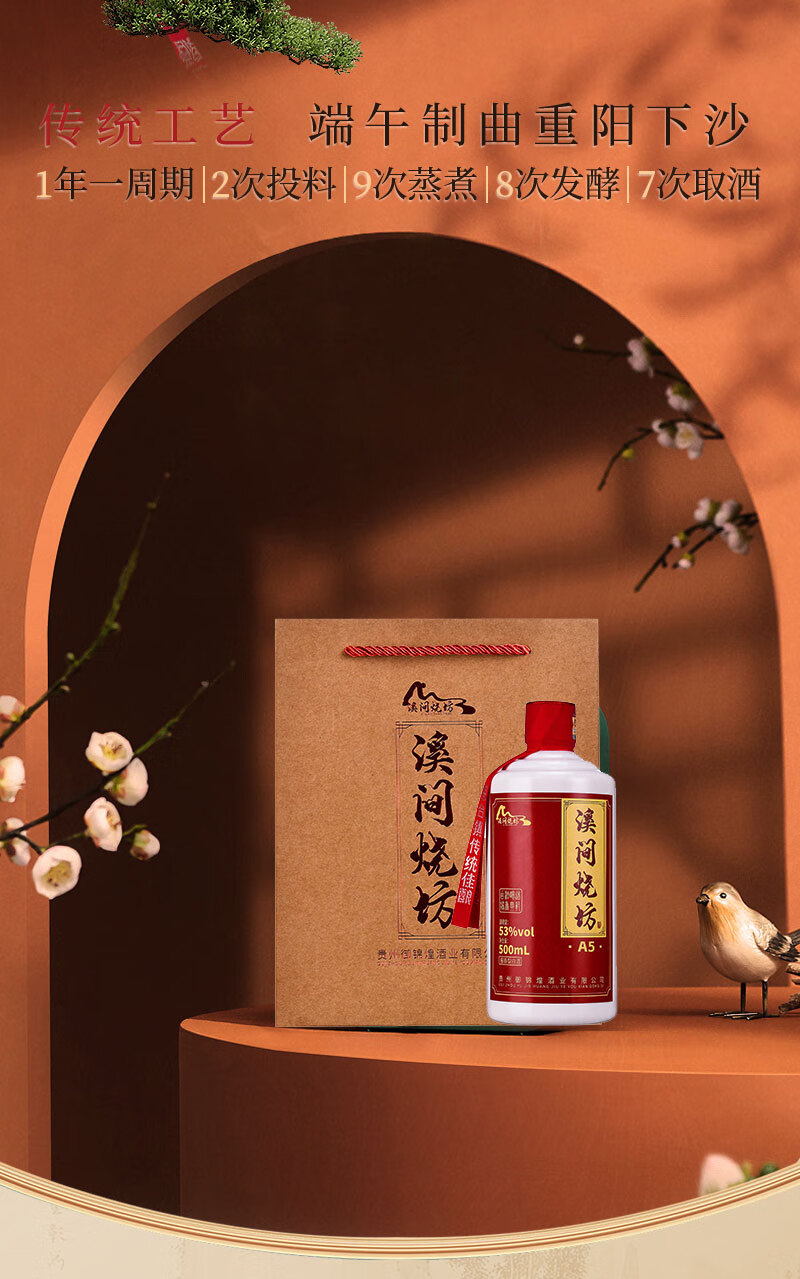 溪间烧坊(A5)茅台镇纯粮食大曲酱香型白酒自饮送礼宴请 53%vol 500mL 6瓶 【买三瓶送三瓶共6瓶】赠送3个手提袋
