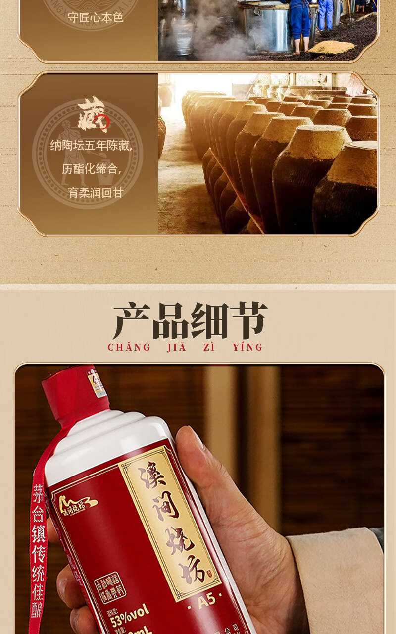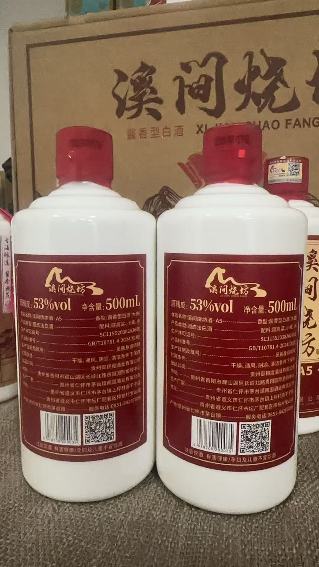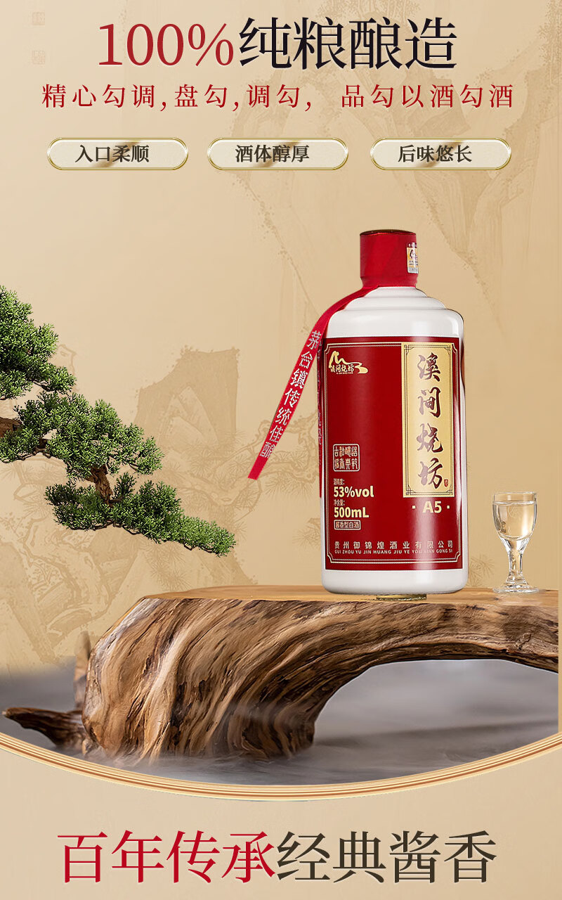 溪间烧坊(A5)茅台镇纯粮食大曲酱香型白酒自饮送礼宴请 53%vol 500mL 6瓶 【买三瓶送三瓶共6瓶】赠送3个手提袋