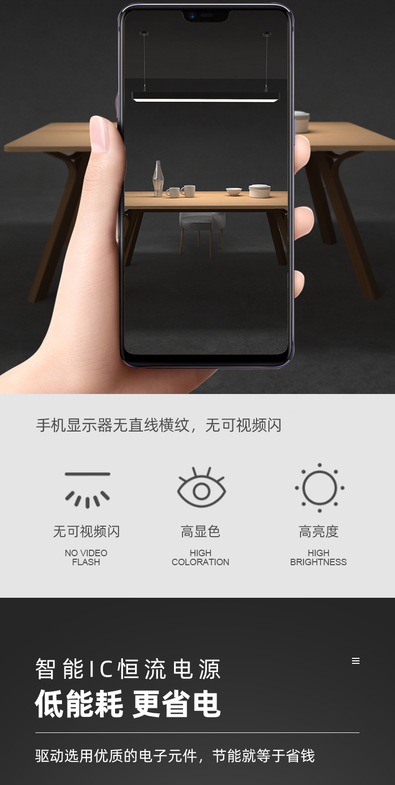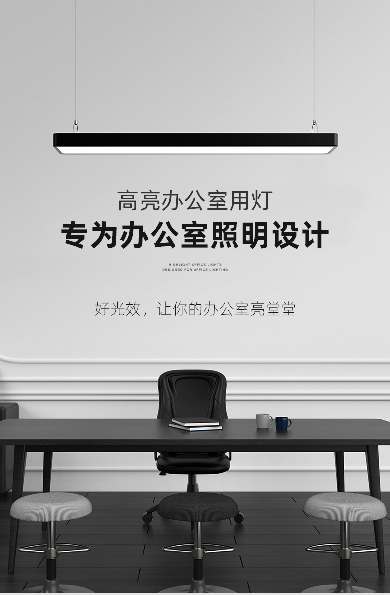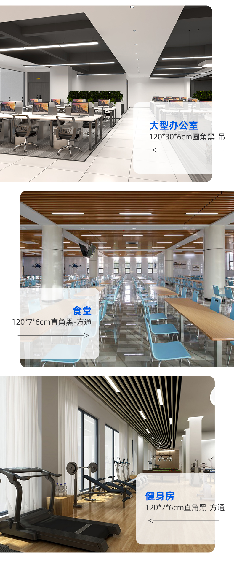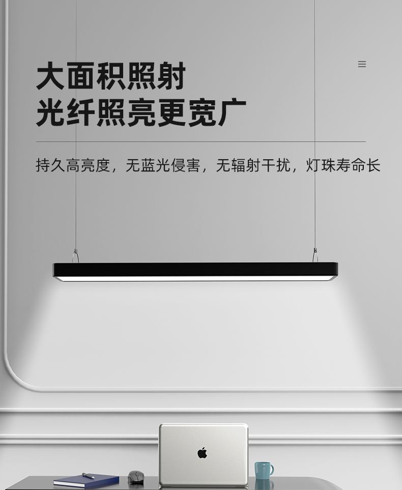 拉伯塔办公室吊灯吸顶两用照明led长条灯健身房餐厅创意现代方通吊线灯 白壳直角款120x7厘米24W