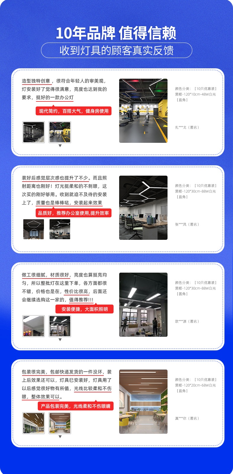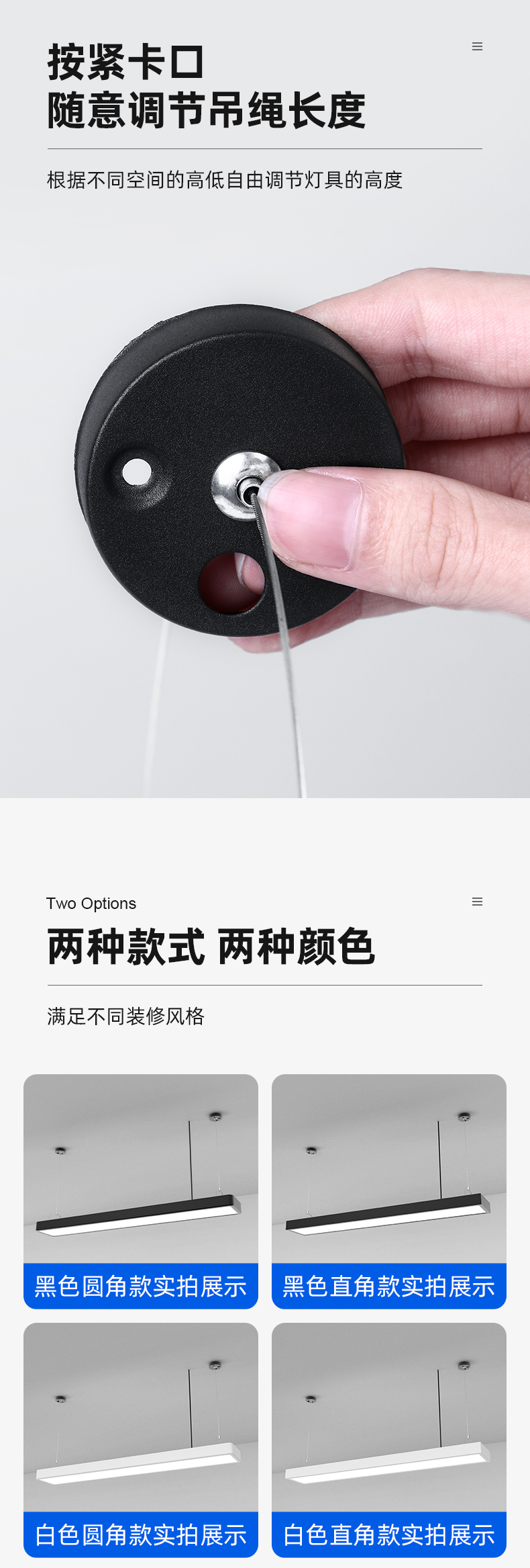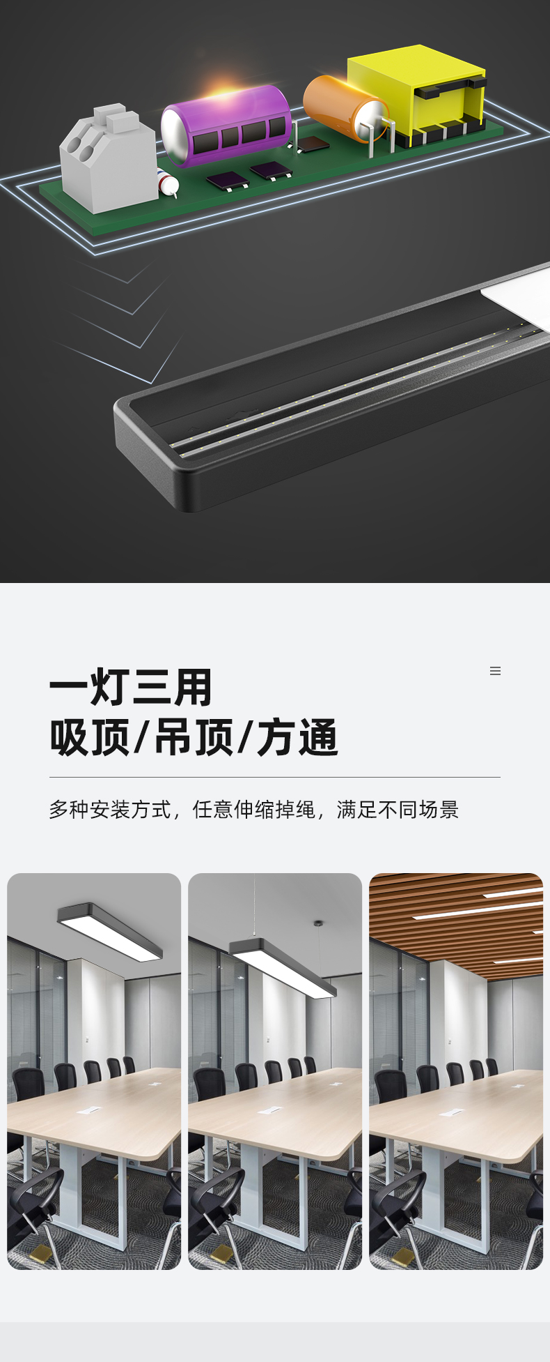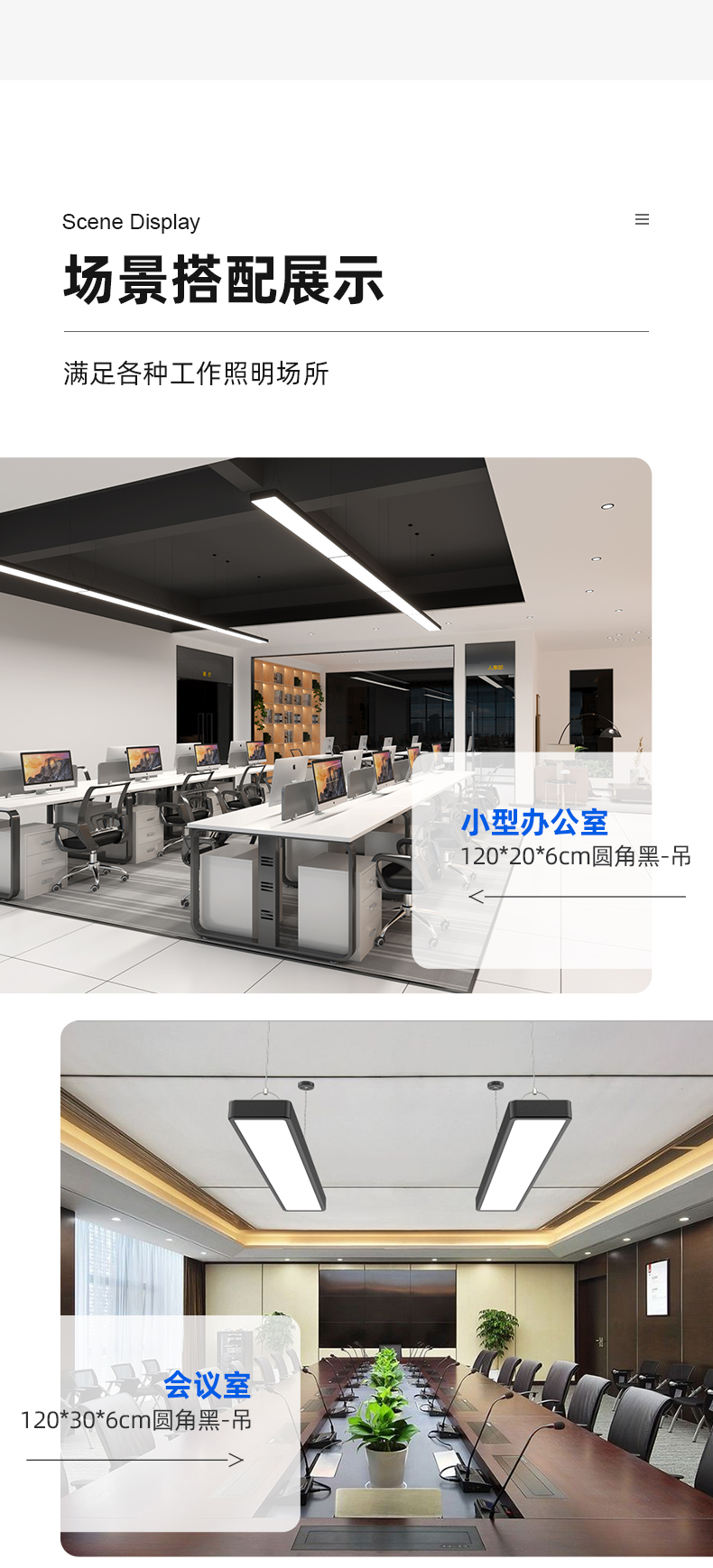 拉伯塔办公室吊灯吸顶两用照明led长条灯健身房餐厅创意现代方通吊线灯 白壳直角款120x7厘米24W