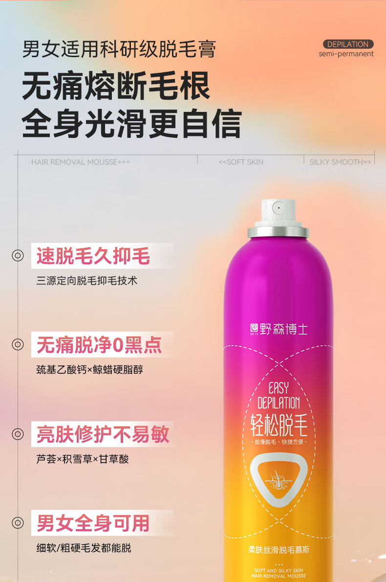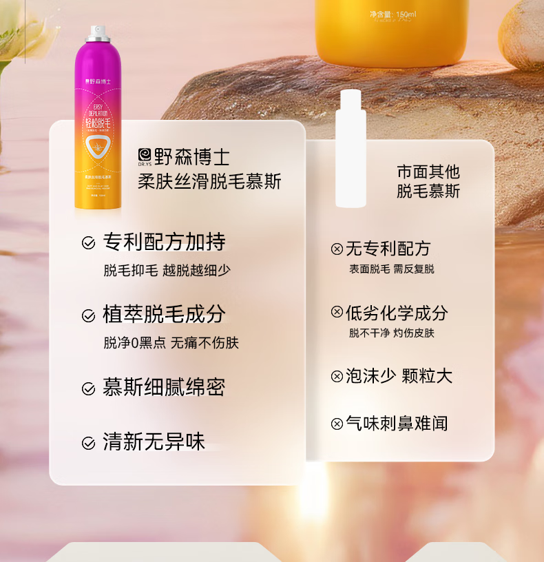 DR. YS 野森博士柔肤丝滑脱毛慕斯脱腋毛腿毛手毛全身可用温和不刺激轻松脱毛/瓶A 野森博士柔肤丝滑脱毛慕斯*1瓶