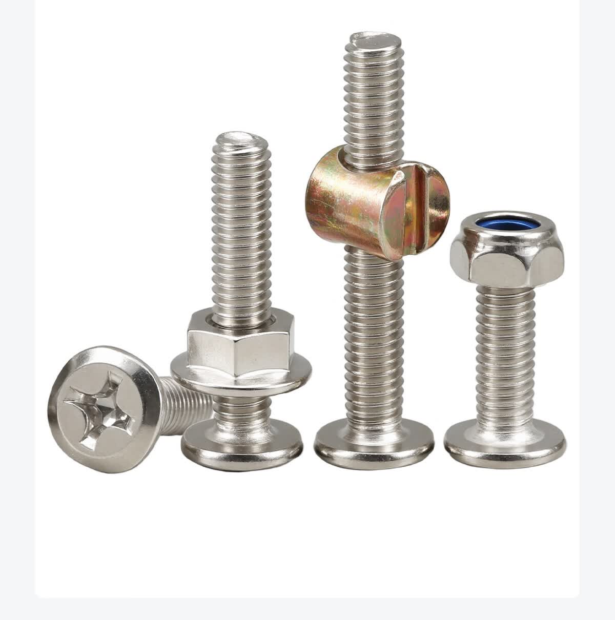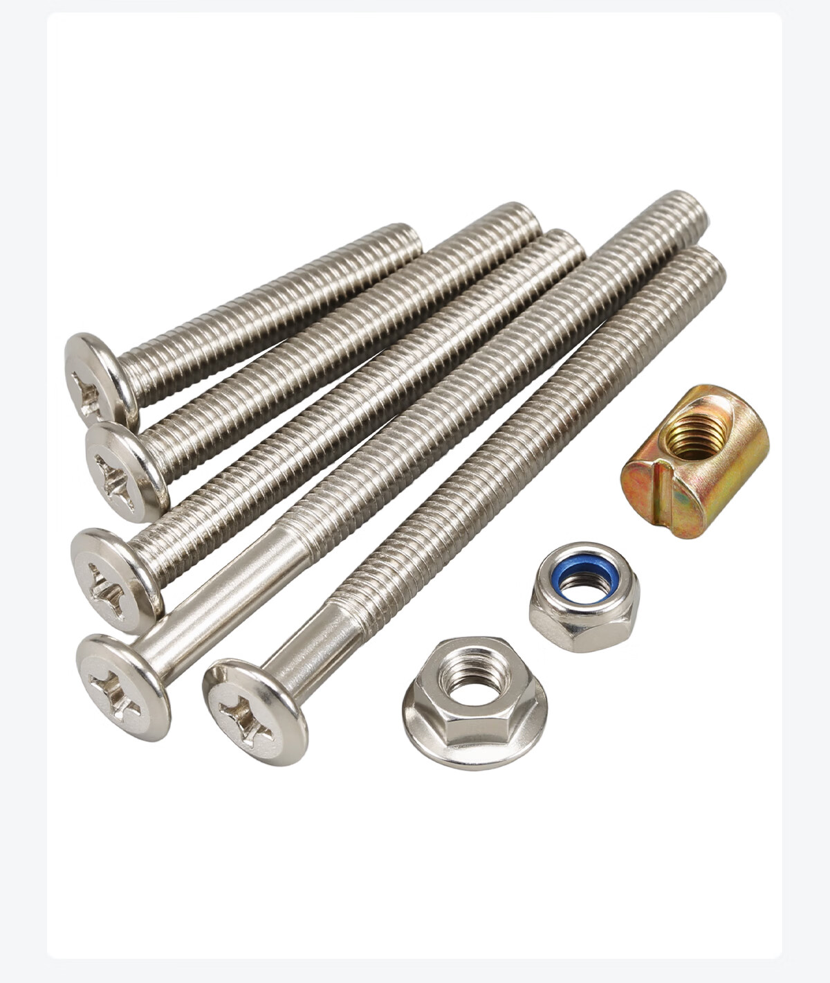 佰瑞特(bairuite)平头倒边十字螺钉配套镀镍夹板家具螺丝螺母螺钉螺栓大全套装M6 全牙M6*10配法兰螺母 M6(50套) 小包装