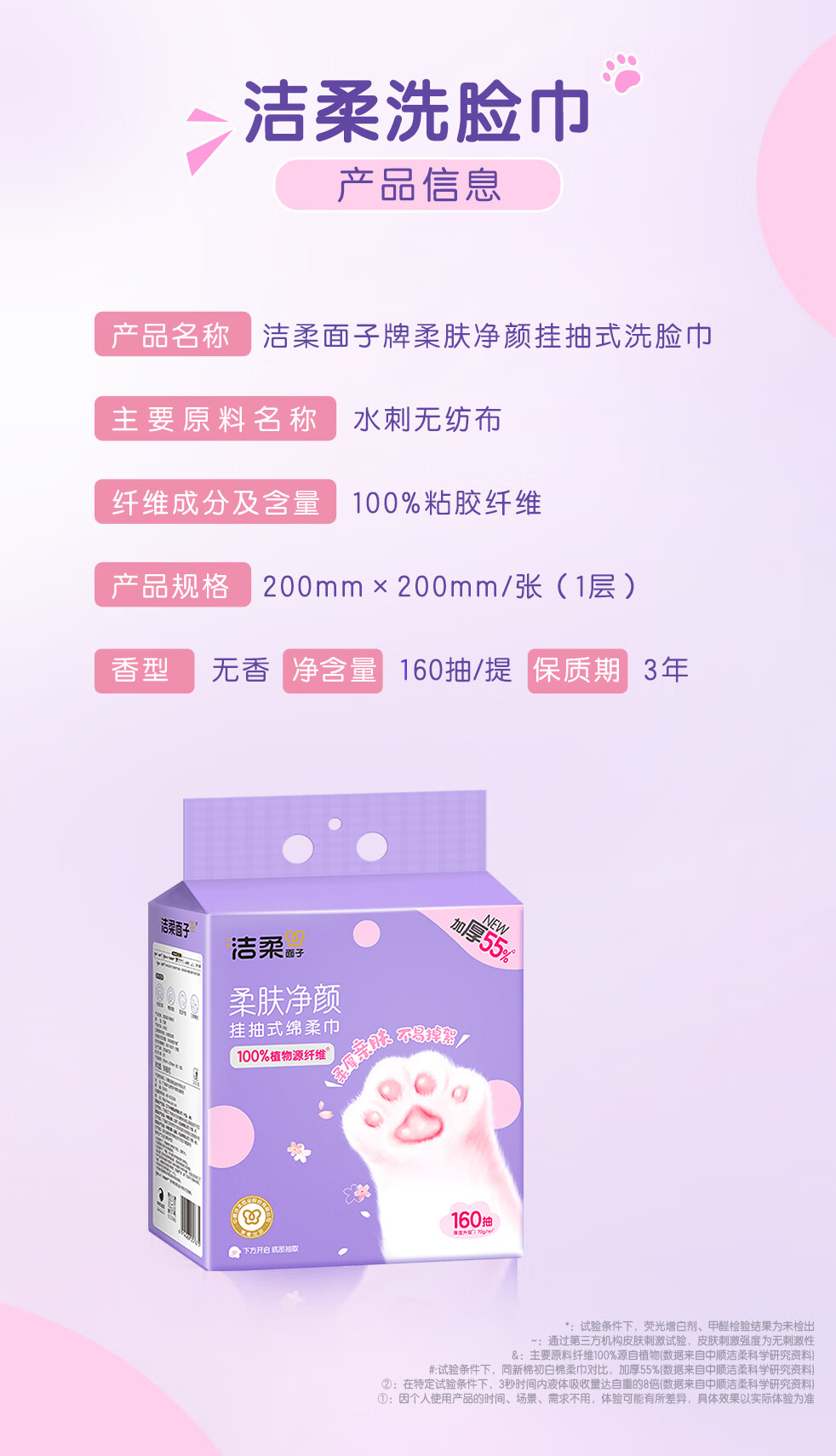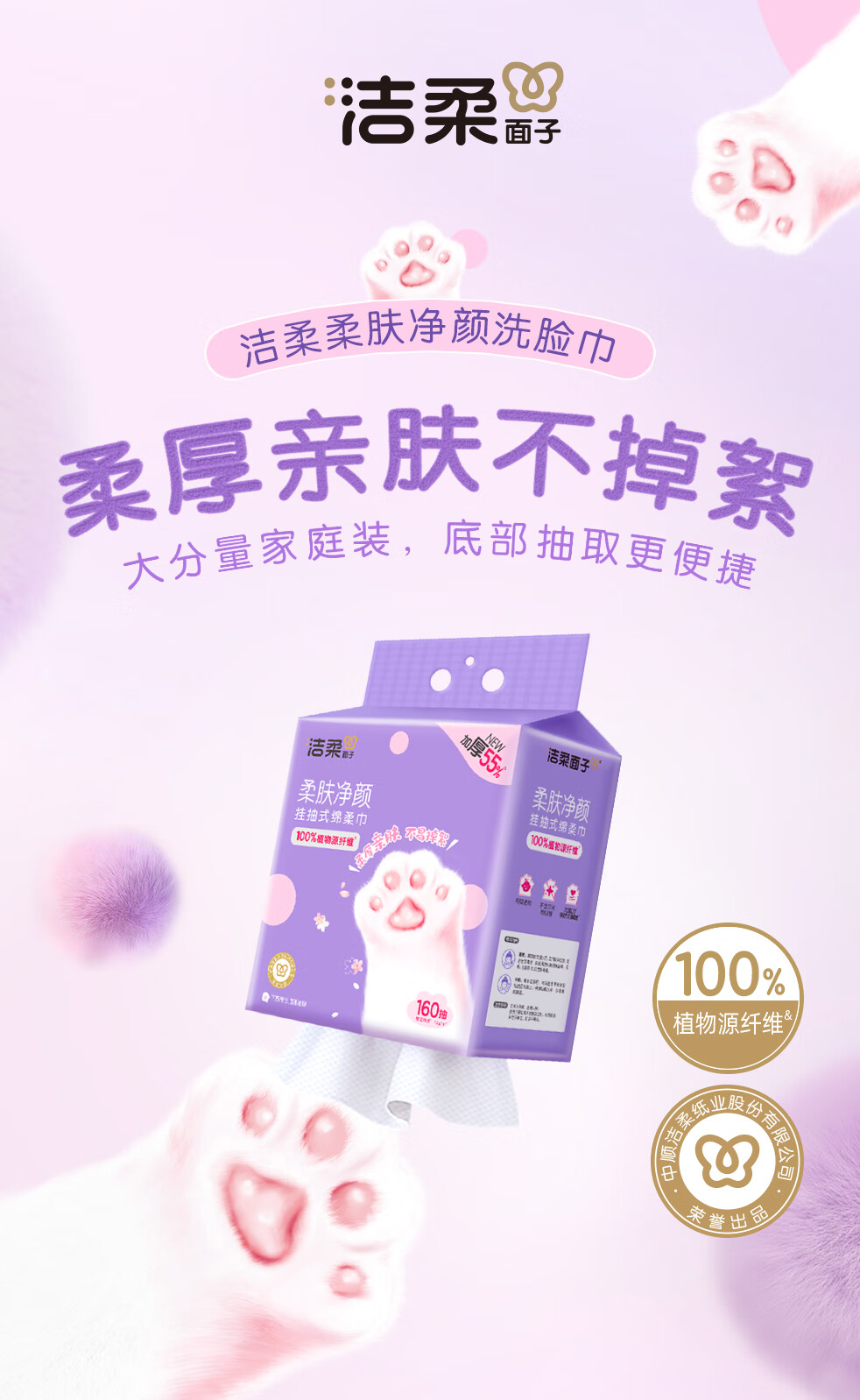 洁柔洗脸巾悬挂式160抽*2提加大加厚一次性绵柔巾家用宿舍擦脸巾XL码