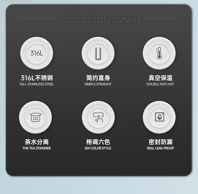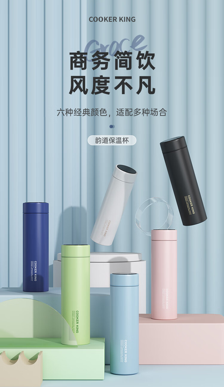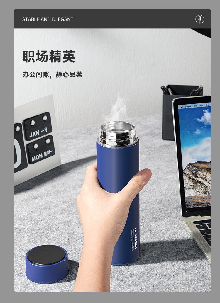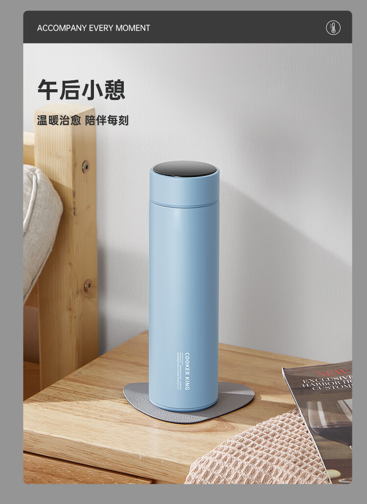 炊大皇保温杯 316L医用级不锈钢茶水分离商务便携保温杯 浅蓝色 490ml