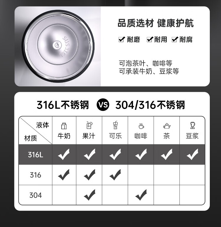 吨吨BOTTLED JOY马克杯不锈钢316带盖办公室咖啡杯保冰保温学生水杯