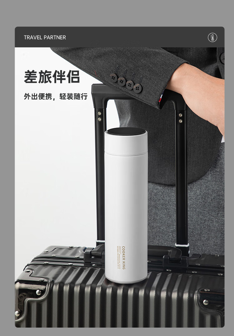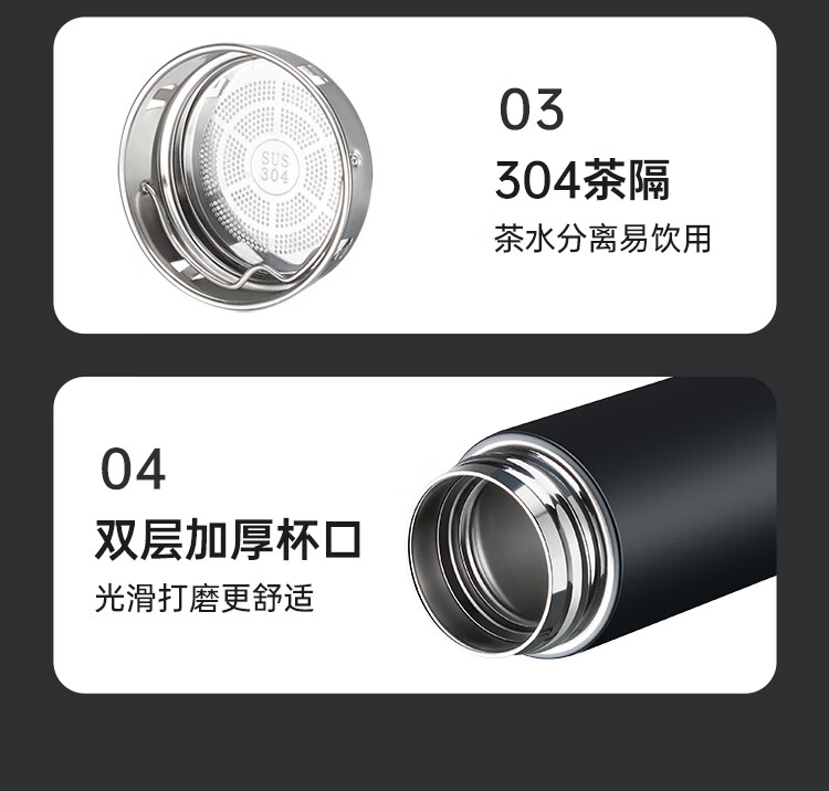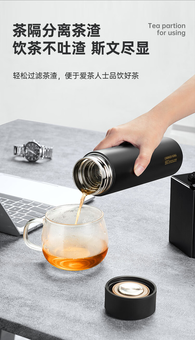 炊大皇保温杯 316L医用级不锈钢茶水分离商务便携保温杯 白色 490ml