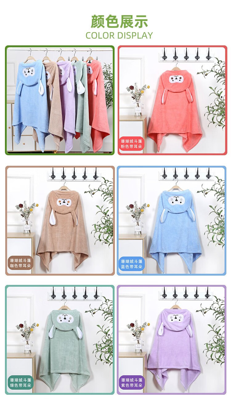 彩虹房子 儿童珊瑚绒婴儿宝宝速干连帽斗篷浴袍沙滩卡通带帽儿童浴巾ZR 儿童斗篷粉色70*140