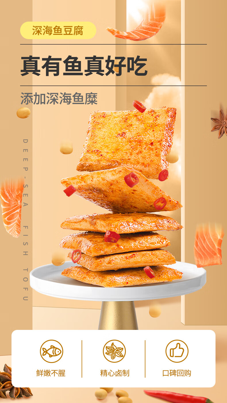 盐津铺子深海鱼豆腐约混合3种口味540g约60包零食独立包装即食豆腐干豆干