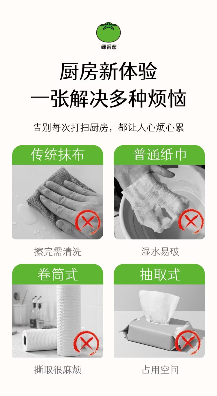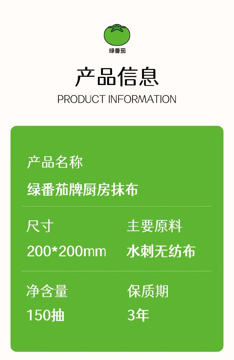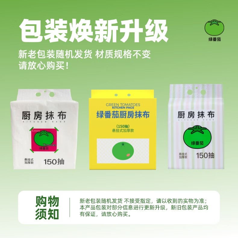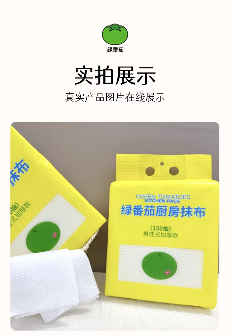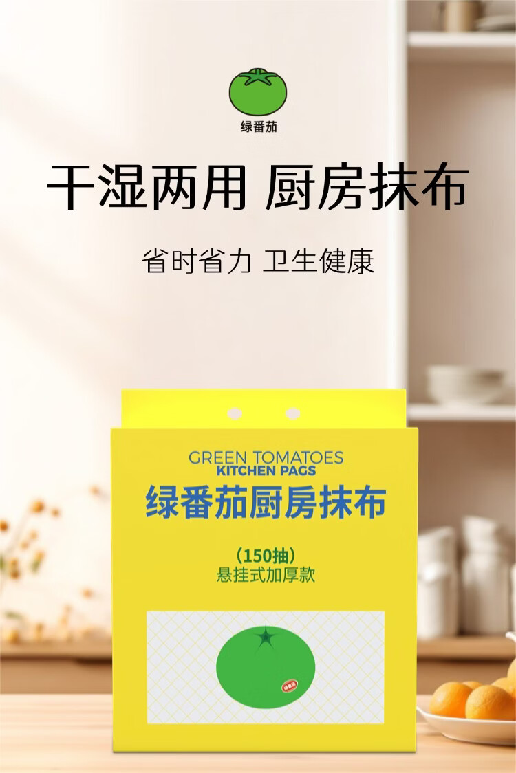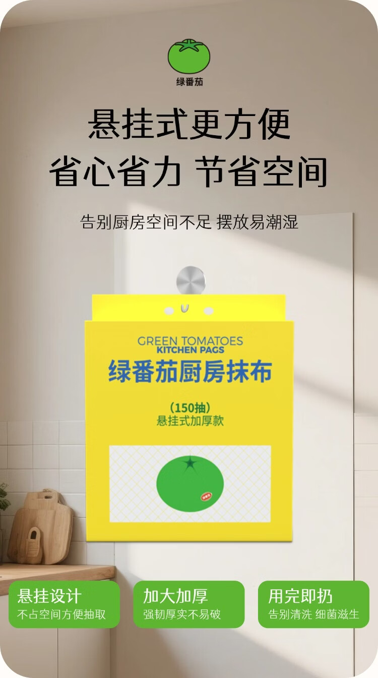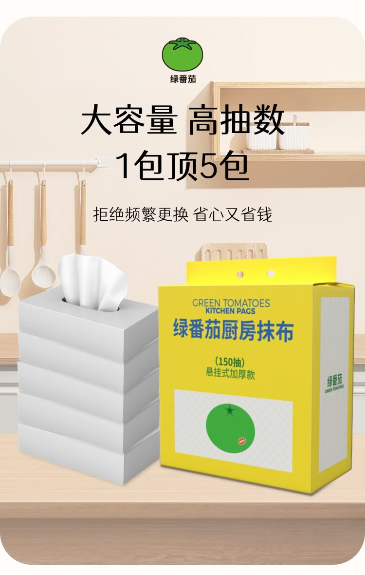 绿番茄厨房抹布150抽悬挂式柔韧加厚款吸水吸油干湿两用一擦即净 悬挂式加大加厚 1层 150抽*3包 囤货装