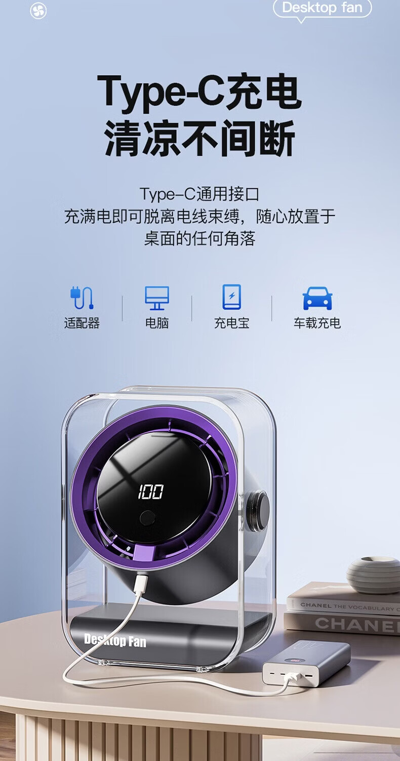 小风扇桌面电风扇宿舍风扇小型空气循环扇空调扇床上家用制冷静音办公桌面小风扇充电式便携长续航 F6立式风扇【充电款】