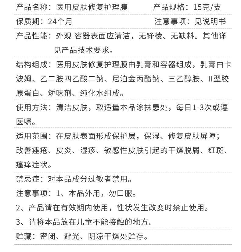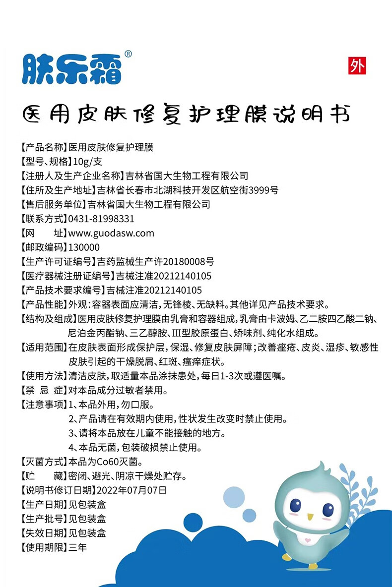 肤乐霜医用宝宝湿疹痤疮痱子口水疹奶癣婴儿神经性皮炎皮肤修复护理膜 15g