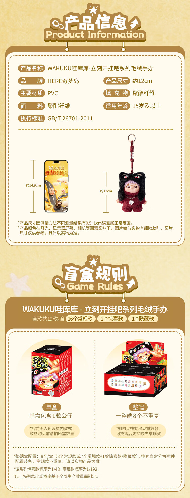 奇梦岛WAKUKU哇库库立刻开挂吧系列毛绒手办盲盒潮玩 3盒装 赠六六大顺骰子挂件 不支持7天无理由退换货
