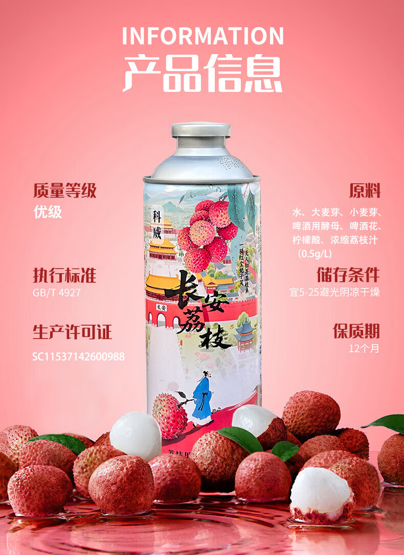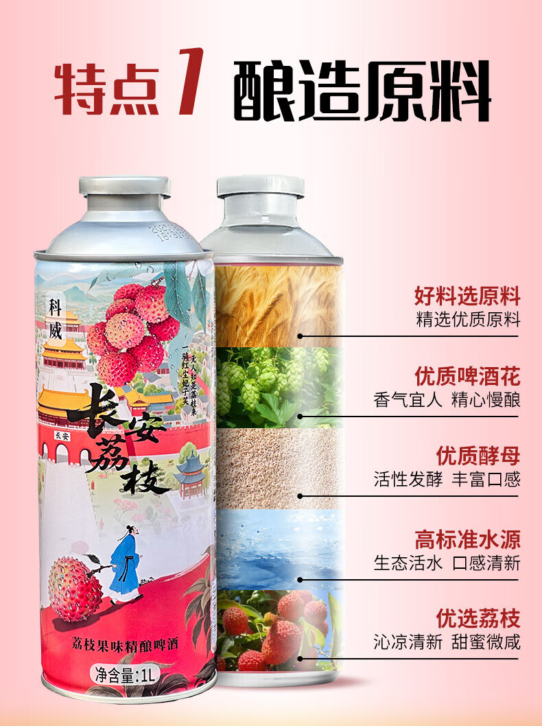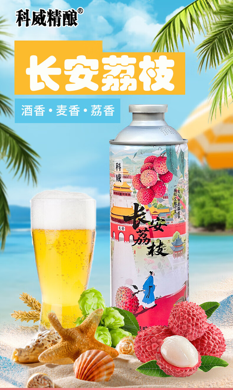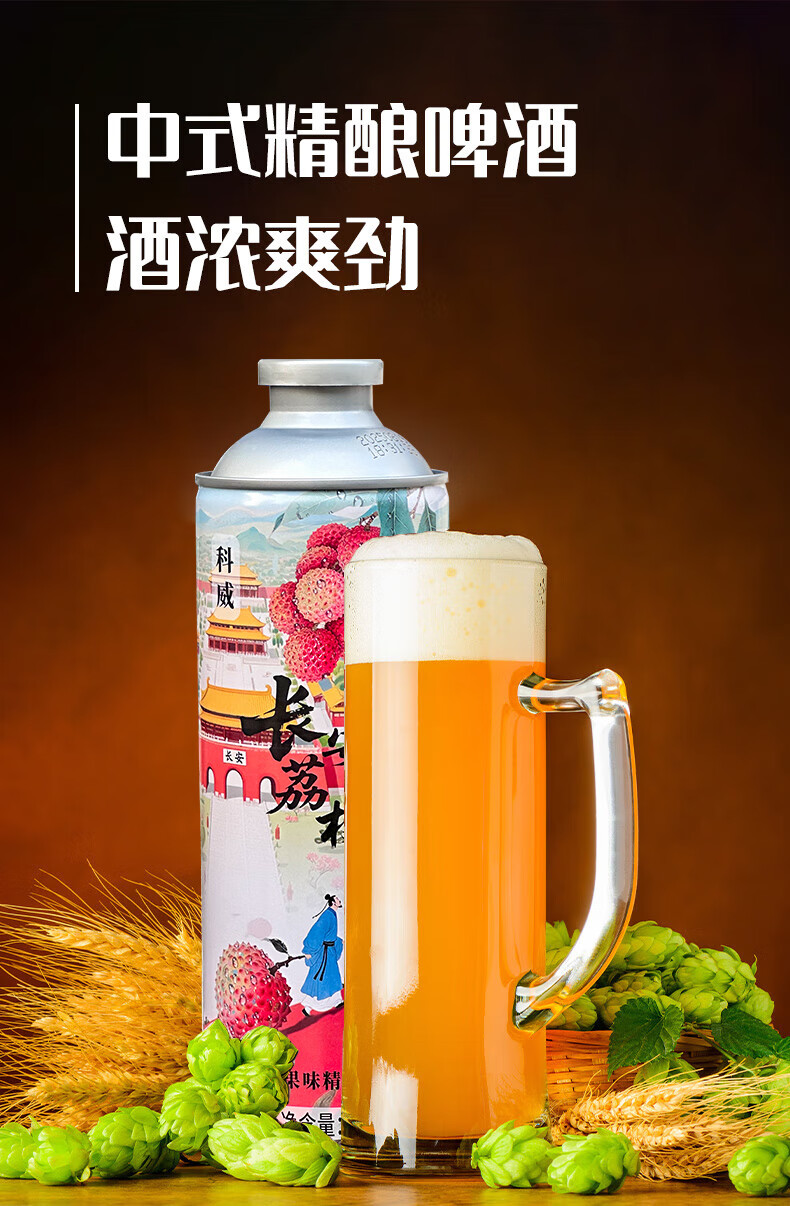 科威精酿长安荔枝啤酒10°P 中式精酿果味啤酒1L大罐 节日礼品啤酒 1000mL 2罐 双瓶装 尝鲜