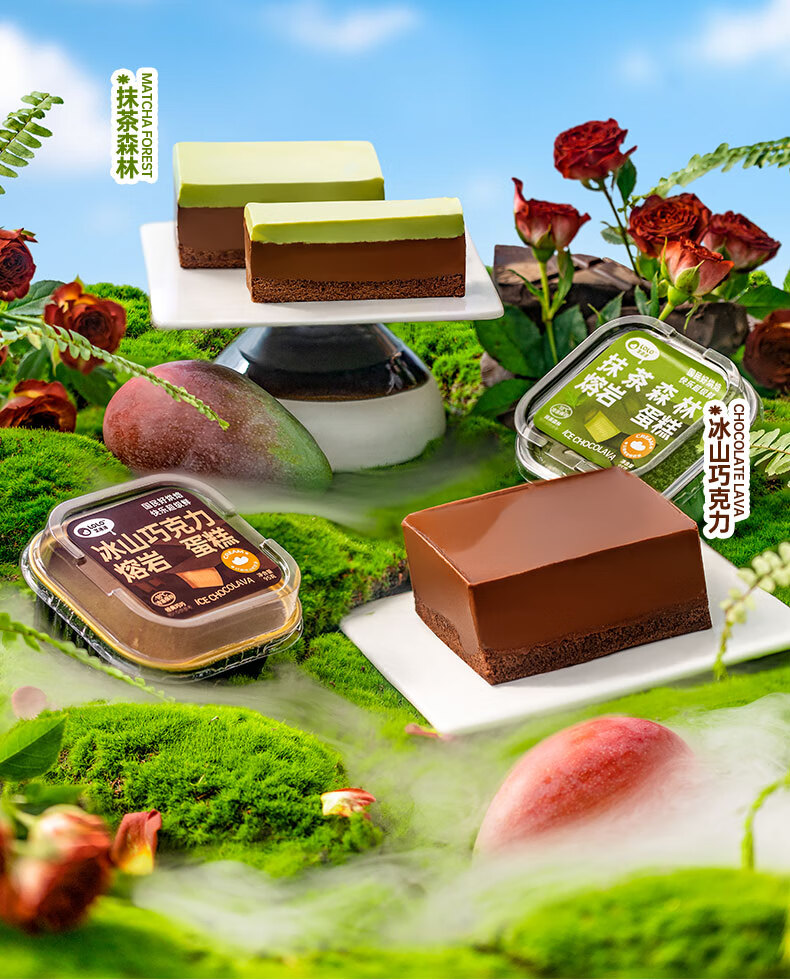 芝洛洛冰山巧克力熔岩蛋糕动物奶油下午茶糕点甜品零食95g*2盒 【熔岩巧克力蛋糕】95g*2盒