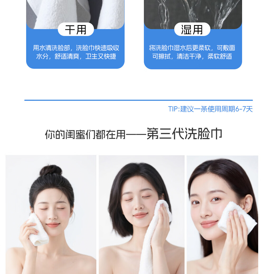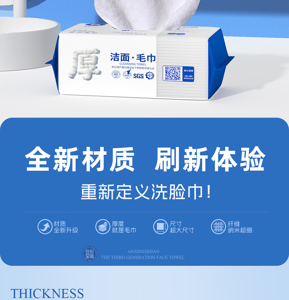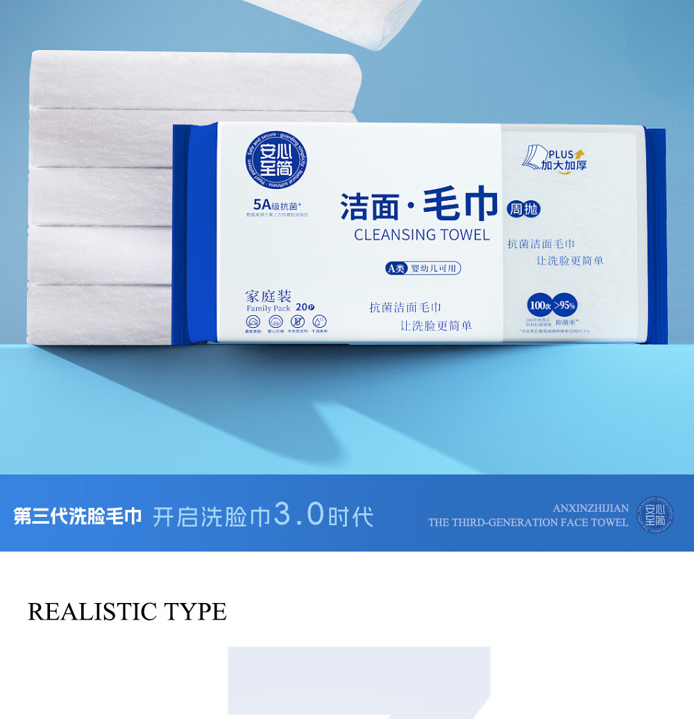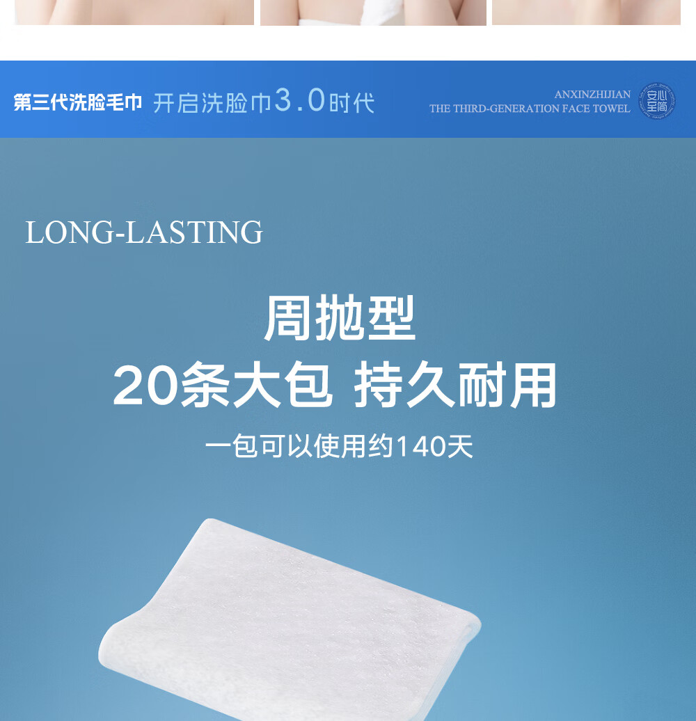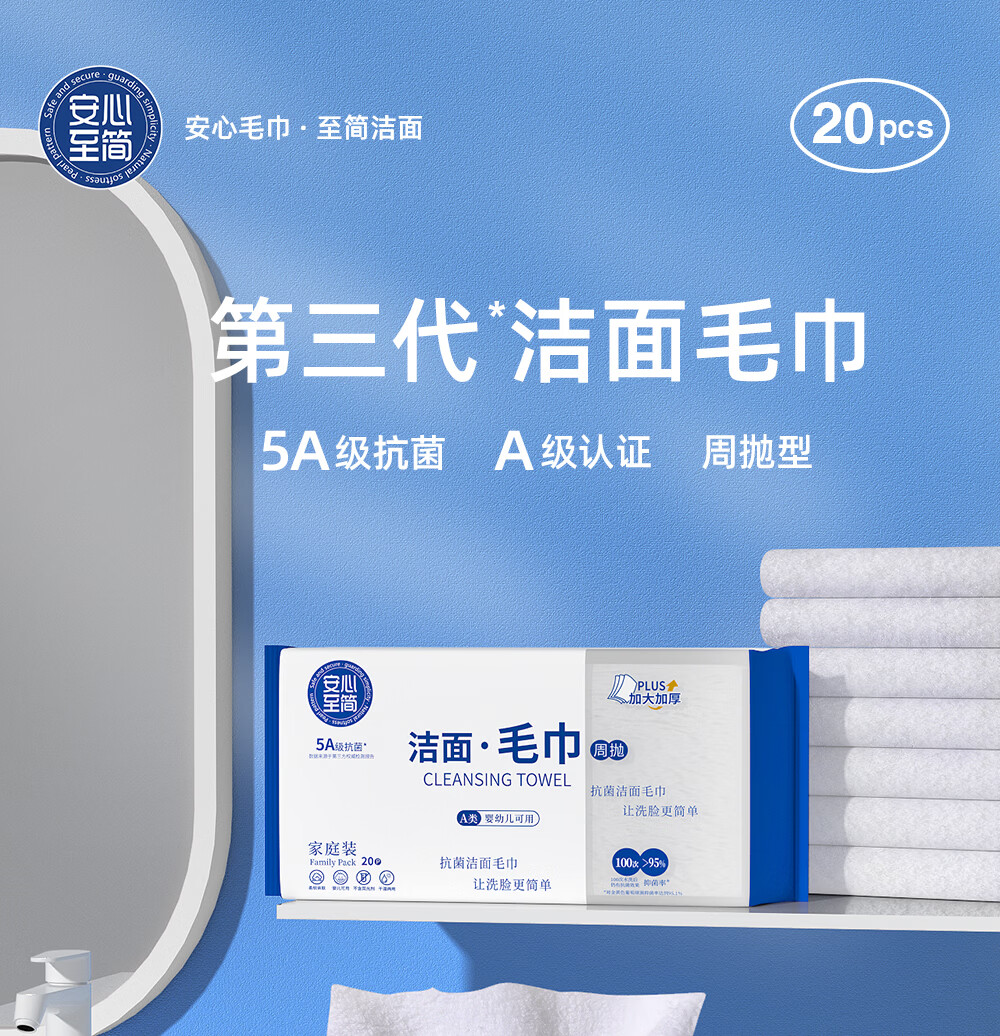 安心至简第三代洗脸巾周抛洁面纳米毛巾加厚吸水洗脸家用非一次性 1包20片抽可用140天 周抛洁面毛巾