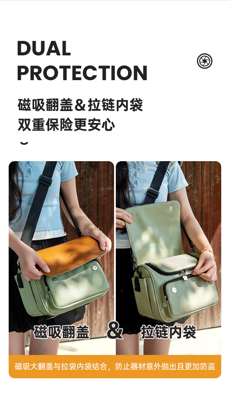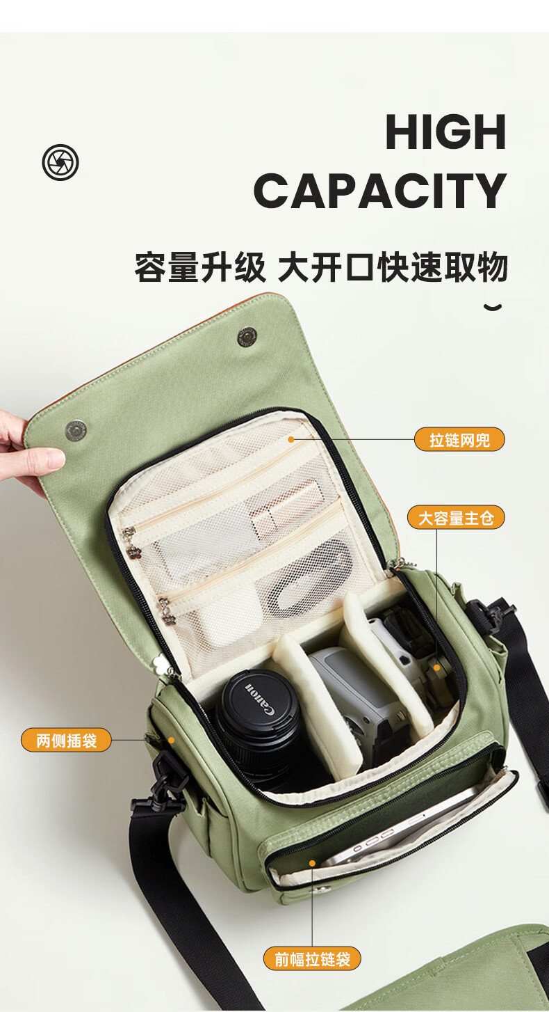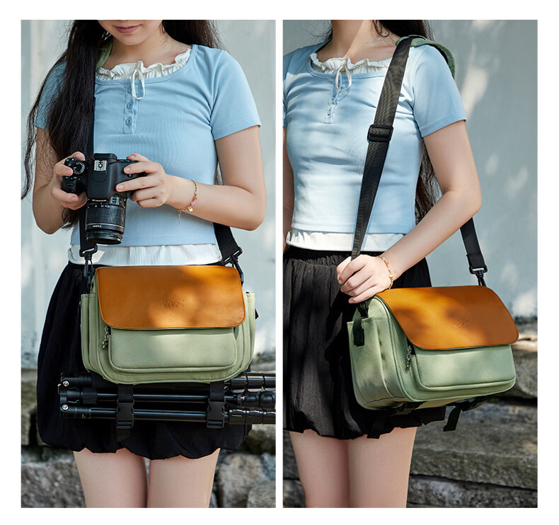 相伴一生相机包女斜挎单肩包摄影背包适用佳能r50索尼zve10保护包富士xs20镜头xt5收纳包r10尼康z30单反便 撞色拼接款 中号 【底部可挂三脚架】