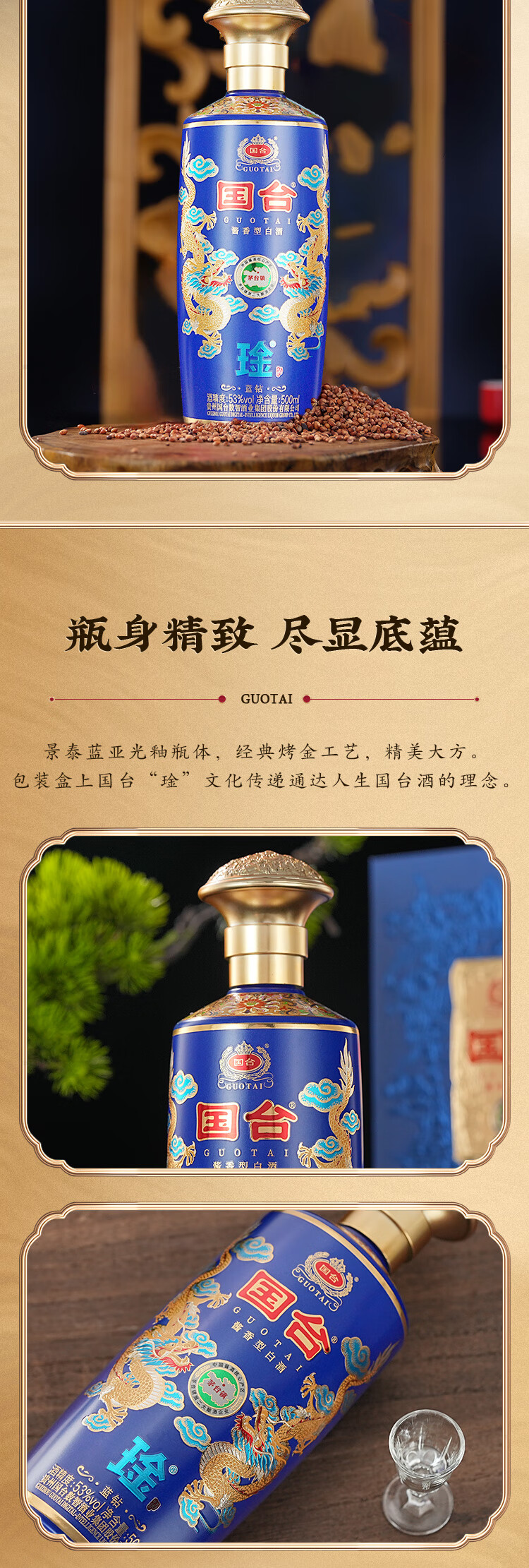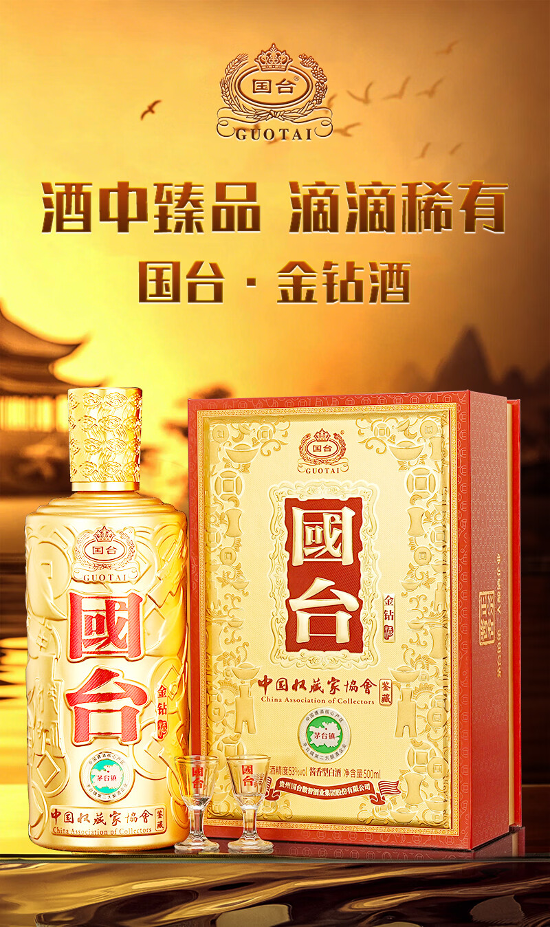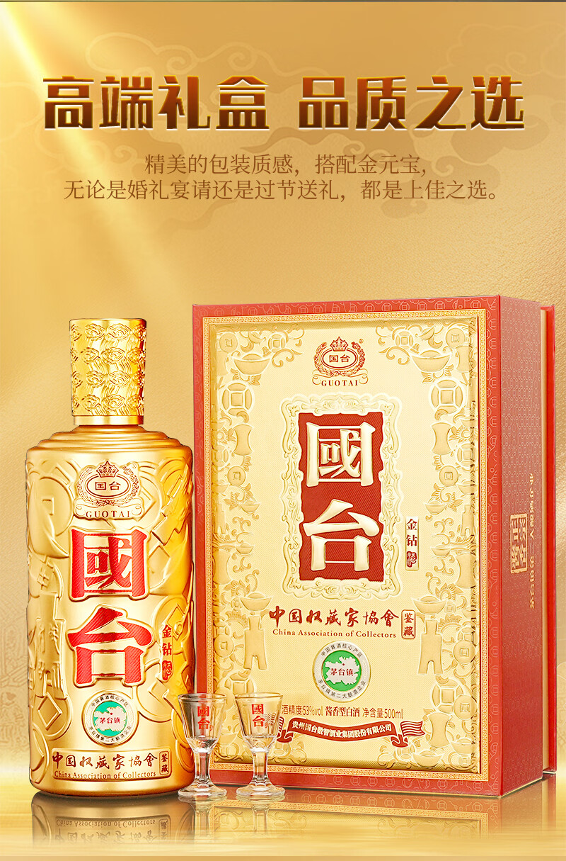 国台53度酱香型 礼盒装 送礼收藏自饮 53度 500mL 1瓶 琻蓝钻一瓶